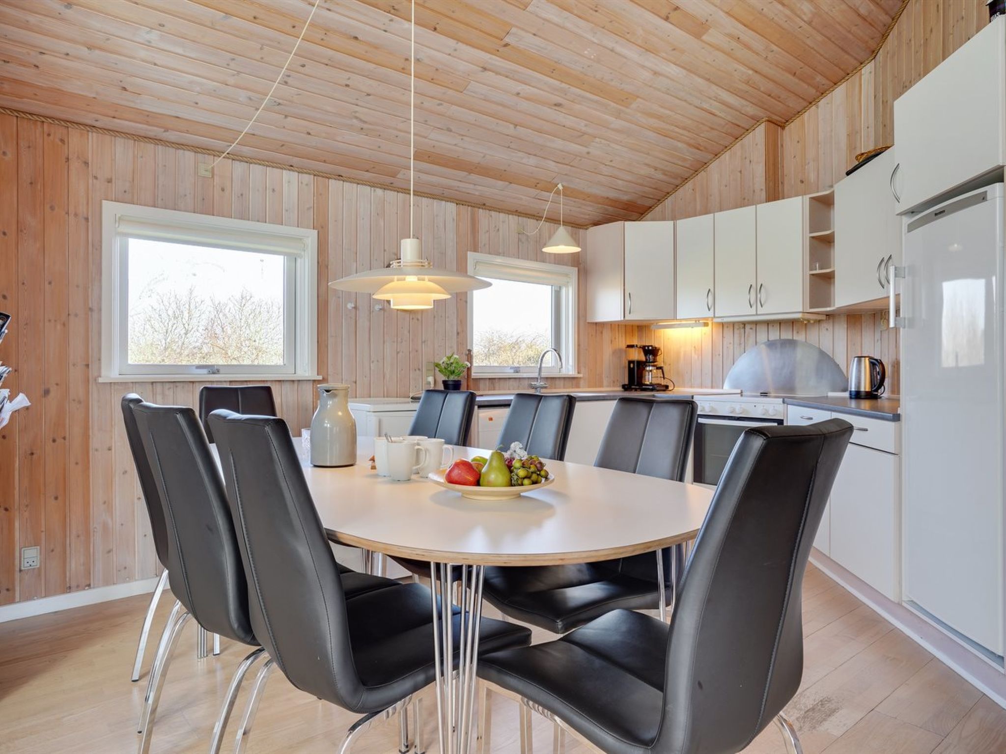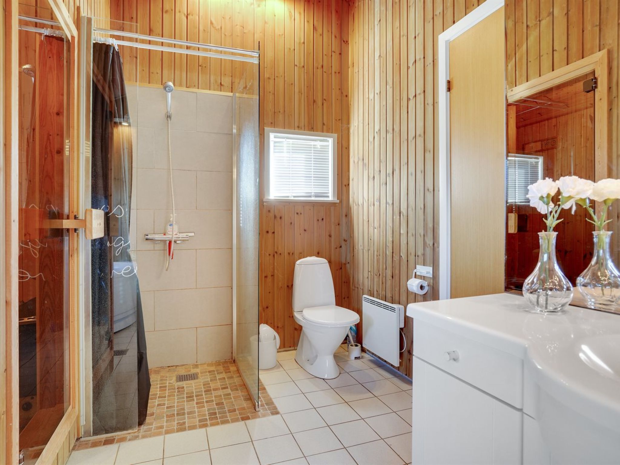 Single-family house, built in 1996. 400 m from the sea. For shared use: garden. Private: property 810 m2, well-kept garden (fenced). Terrace (51 m2), barbecue, children's playground (swing). In the house: sauna, table football, trampoline, washing machine. Parking at the house. Grocery 12 km. Golf course 7 km. The owner does not accept any youth groups.