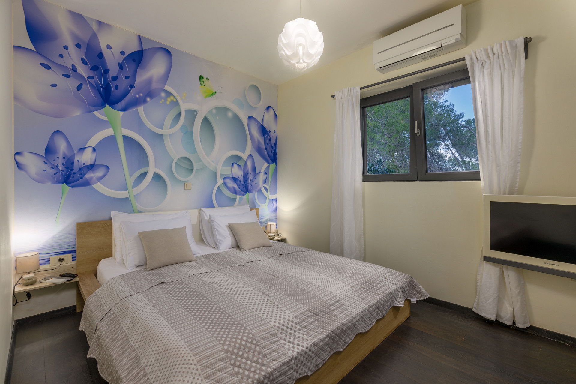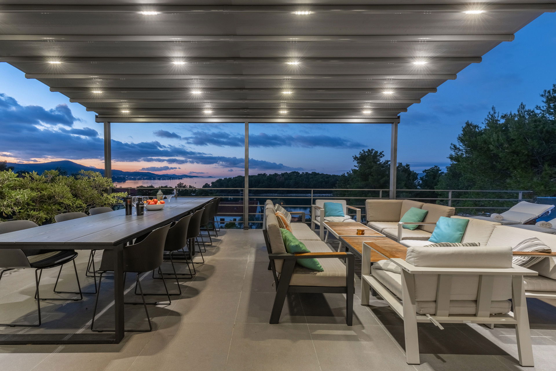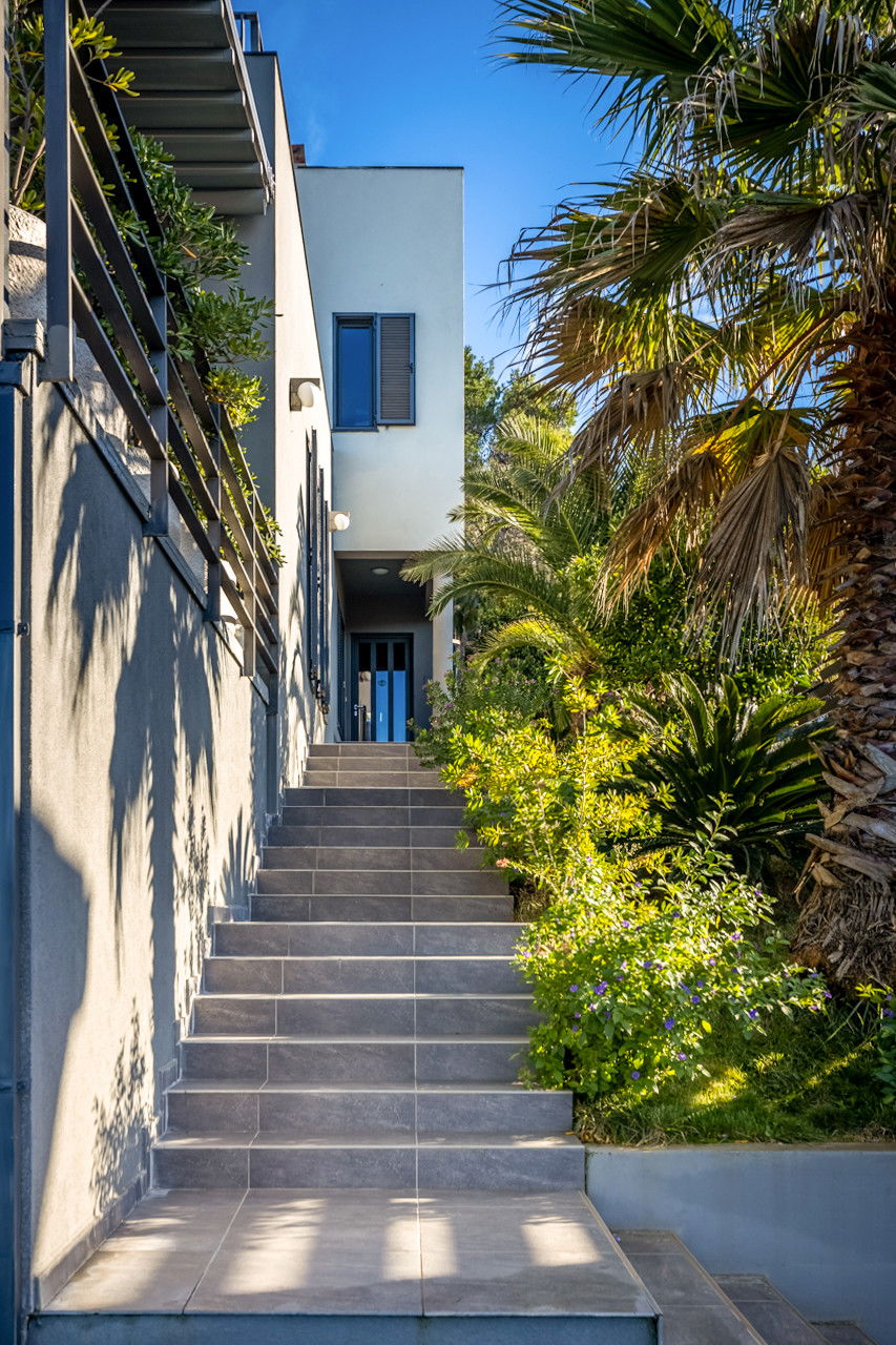 This villa, located only 70 meters from the sea, is ready to open its doors to a maximum of 12 people who have 396 m2 of living space at their disposal. Consisting of two parts, there are 3 bedrooms on the ground floor, while there are 3 more rooms on the floor. All 6 bedrooms have double beds, and the master bedroom has a sea view and its own en suite bathroom. There are 3 more bathrooms and one separate toilet. The villa is fully air-conditioned and has WiFi. As an additional feature, you can use a washing machine, dryer and iron.