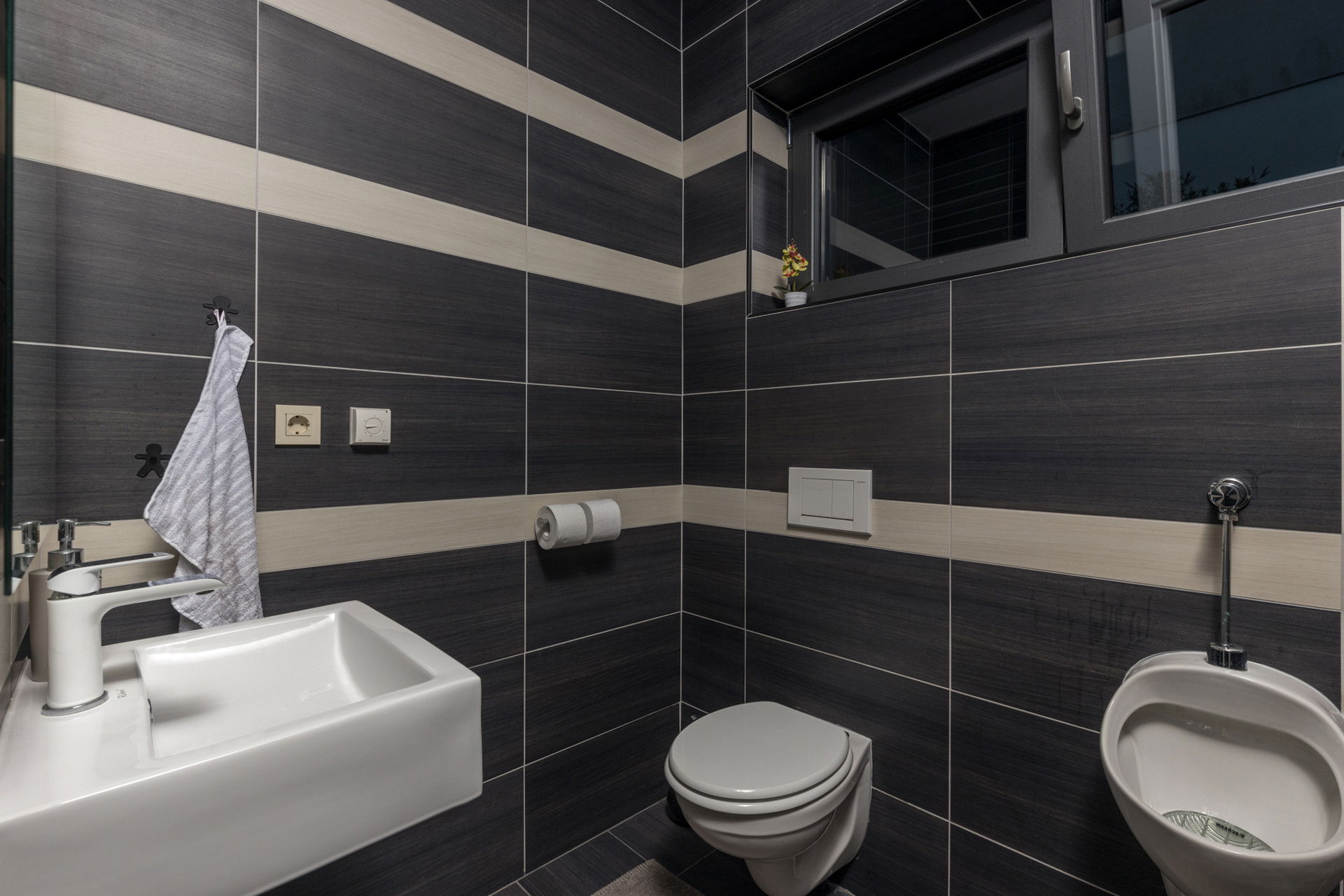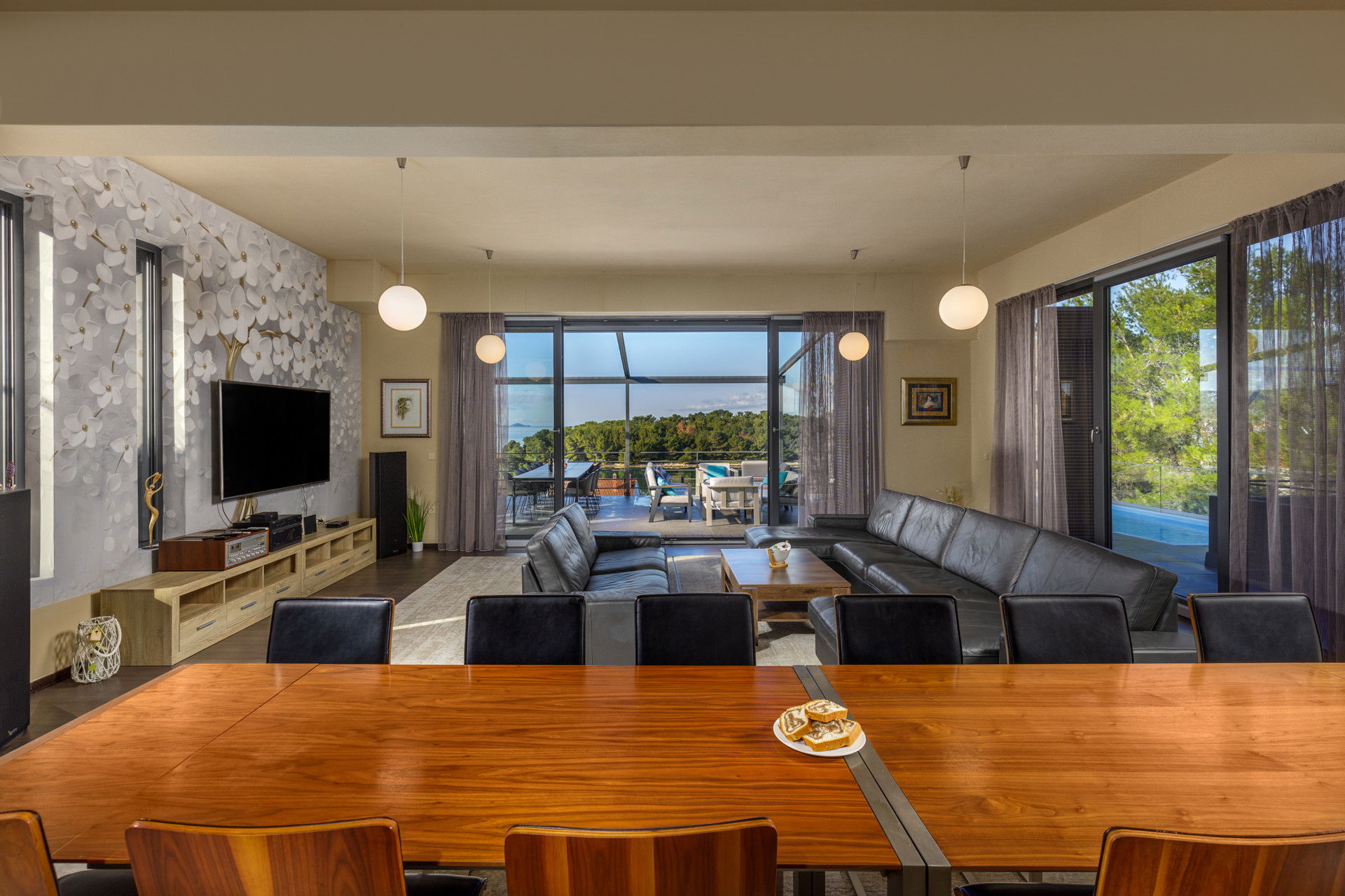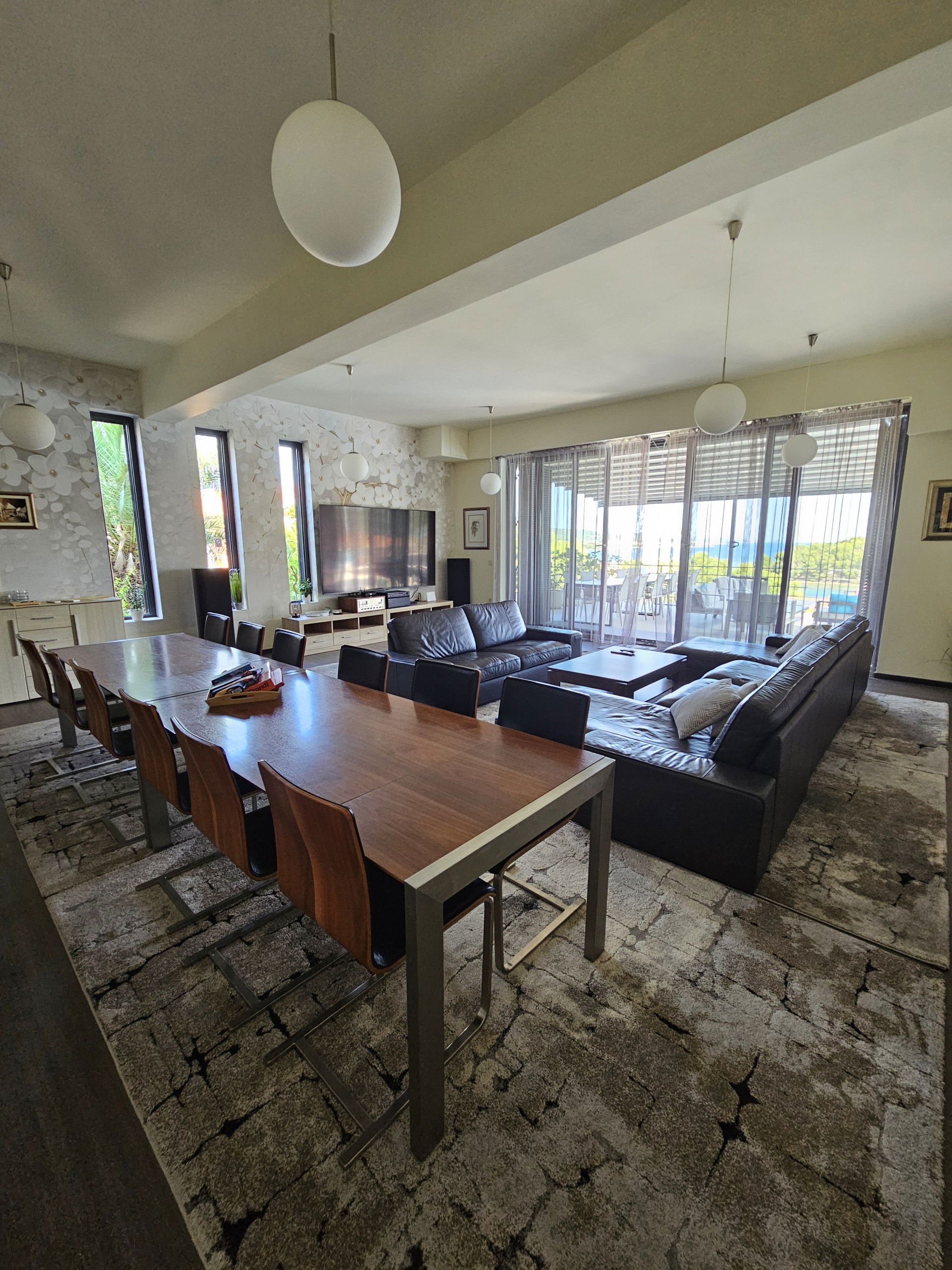 This villa, located only 70 meters from the sea, is ready to open its doors to a maximum of 12 people who have 396 m2 of living space at their disposal. Consisting of two parts, there are 3 bedrooms on the ground floor, while there are 3 more rooms on the floor. All 6 bedrooms have double beds, and the master bedroom has a sea view and its own en suite bathroom. There are 3 more bathrooms and one separate toilet. The villa is fully air-conditioned and has WiFi. As an additional feature, you can use a washing machine, dryer and iron.
