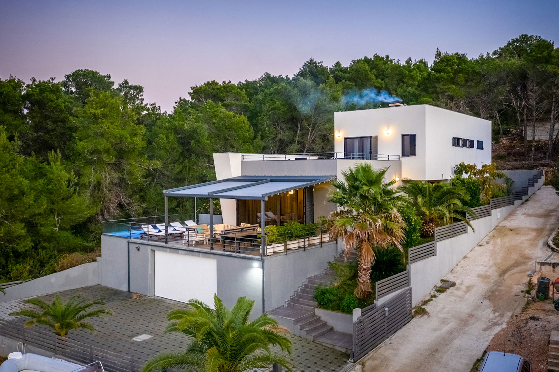The villa is fully fenced and offers 2 parking spaces in the garage and 4 more outdoor parking spaces.