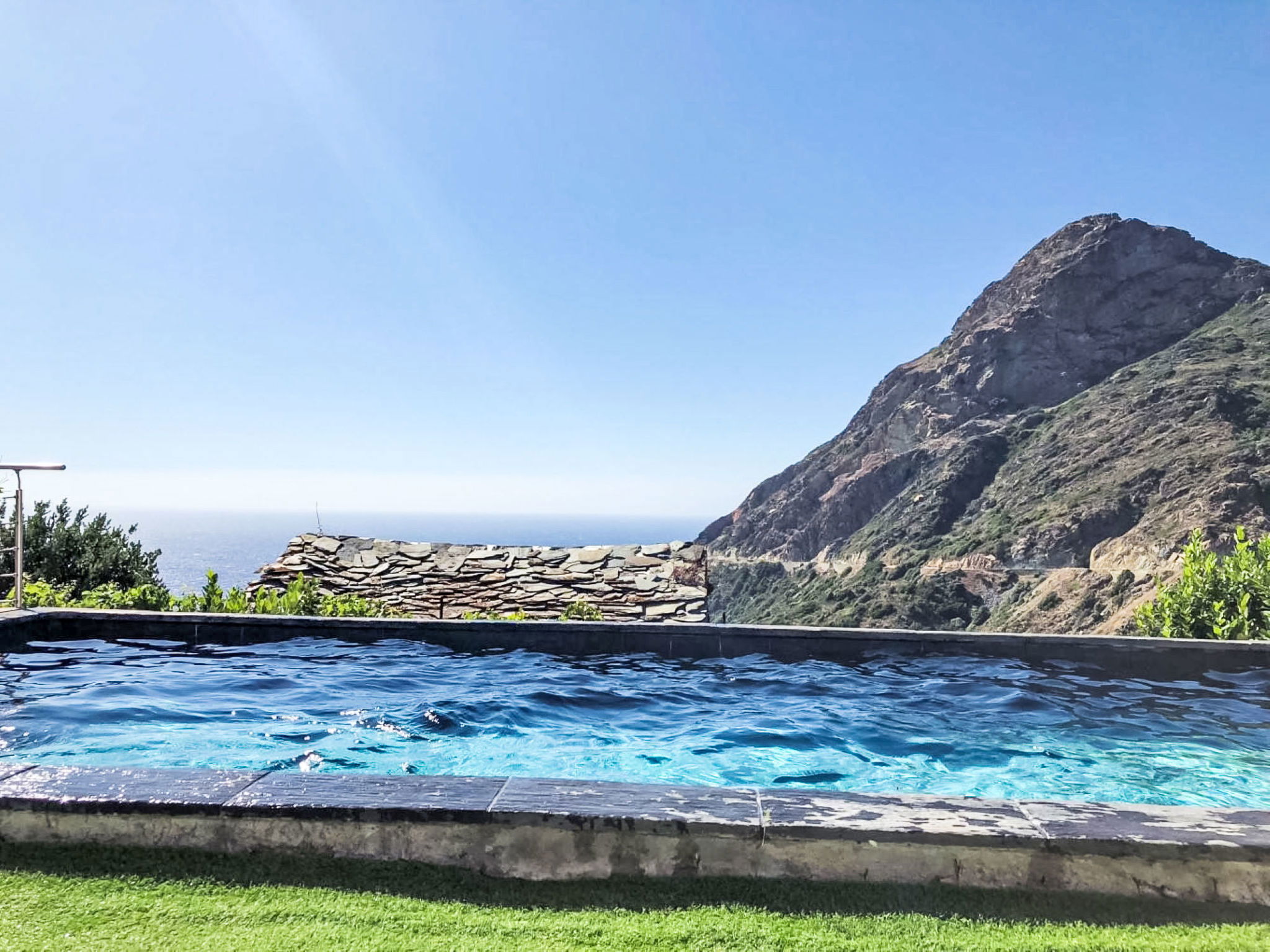 Minerviu: Terraced house "Casa Giuliani", 2 storeys. In the centre of Minerviu, in a quiet position, 5.5 km from the sea, 5.5 km from the beach. Private: property (fenced), swimming pool angular (9 x 4 m, depth 150 cm, seasonal availability: 01.May. - 30.Oct.). Outdoor shower, terrace, garden furniture, barbecue, public parking on the road. Grocery 5 km, restaurant 20 m, bakery 5 km, bus stop 38 km, shingle beach "Giottani" 5 km. Sports harbour 5 km. Nearby attractions: Cap Corse, Centuri 18 km, Nonza 19 km, Saint Florent 38 km. Hiking paths: Tour de Sénèque 10 km, Sentier des Douaniers 28 km. Please note: car recommended.