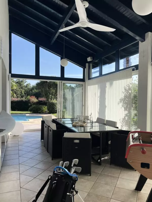 This peaceful villa, with no overlooked views, features a large 1050 m² wooded garden overlooking the Makila Golf Course. Ideal for family vacations, it is equipped with everything you need for a successful stay, including a plancha grill and a fire pit. The kitchen is also fully equipped, allowing you to cook just like at home. A spacious 27 m² veranda, with a large table for 10 guests and a table football, offers moments of conviviality.