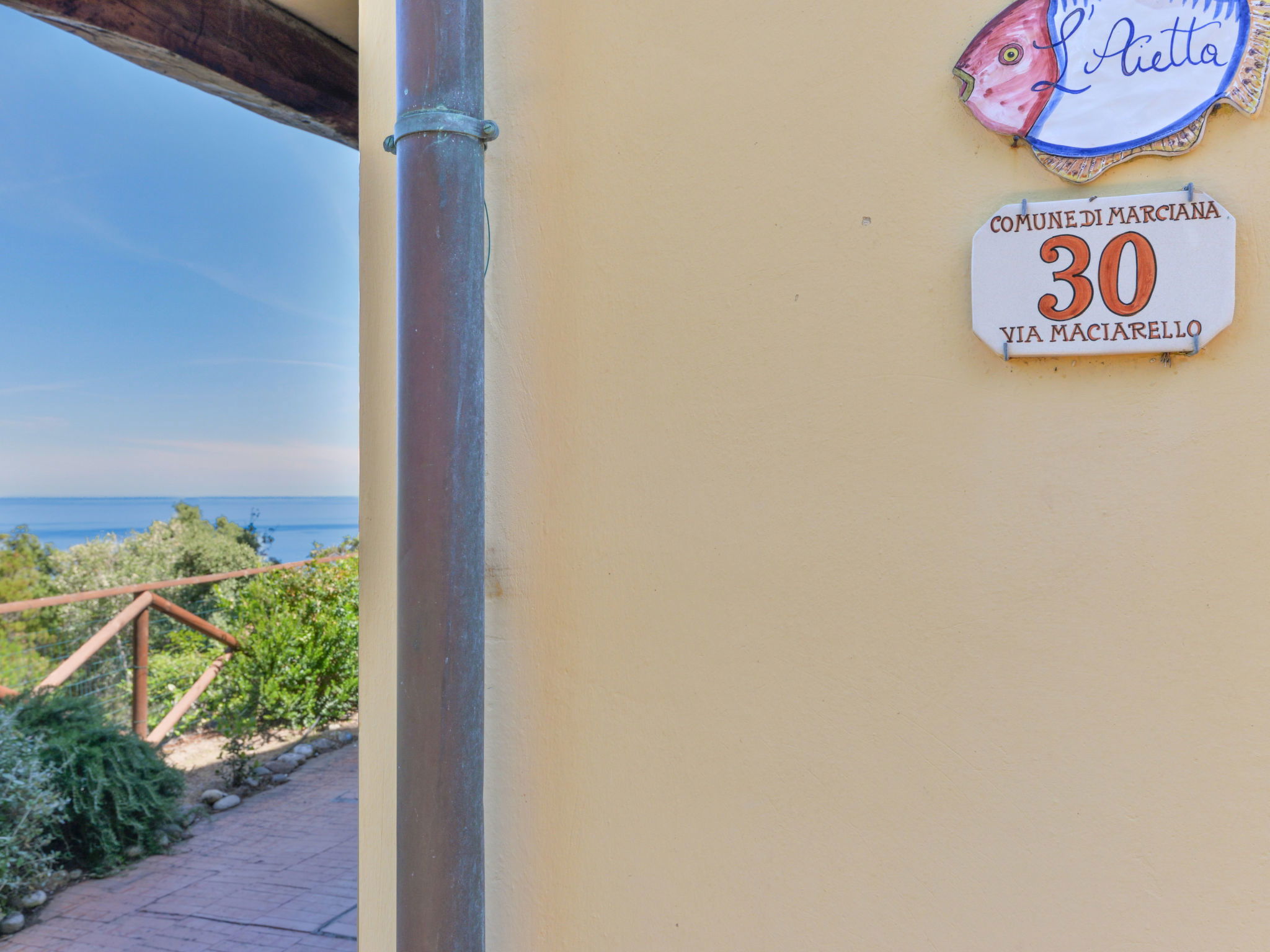 2-family house, 2 storeys. In the district of Maciarello 5 km from the centre of Sant'Andrea, 4.5 km from the centre of Marciana, in a quiet, sunny position on top of a hill, 300 m from the sea, 1.5 km from the beach, in the countryside. Private: natural garden, swimming pool (above ground) (2 x 1 m, seasonal availability: 15.May. - 30.Sep.). Outdoor shower, terrace, garden furniture. In the house: washing machine. Parking at 50 m. Grocery 2 km, supermarket 10 km, restaurant 6 km, bakery 2 km, bus stop "Randoccio" 2 km, ferry "Portoferraio" 27 km, sandy beach "Sant'Andrea" 6 km, shingle beach 1 km. Golf course 37 km, walking paths from the house 10 m. Nearby attractions: Marciana Marina 10 km, Spiaggia di Chiessi 11 km, Fetovaia 15 km, Pomonte / Spiaggia del Relitto 13 km. Hiking paths: Via dell'Essenza 10 m, Monte Capanne 7 km. Situata in una piccola borgata di case, è la più avanzata verso il mare, con completa privacy. L'abitazione è situata nel cuore della sentieristica dell'Isola: si può arrivare alla spiaggia del Cotoncello e di Sant'Andrea tramite trekking.