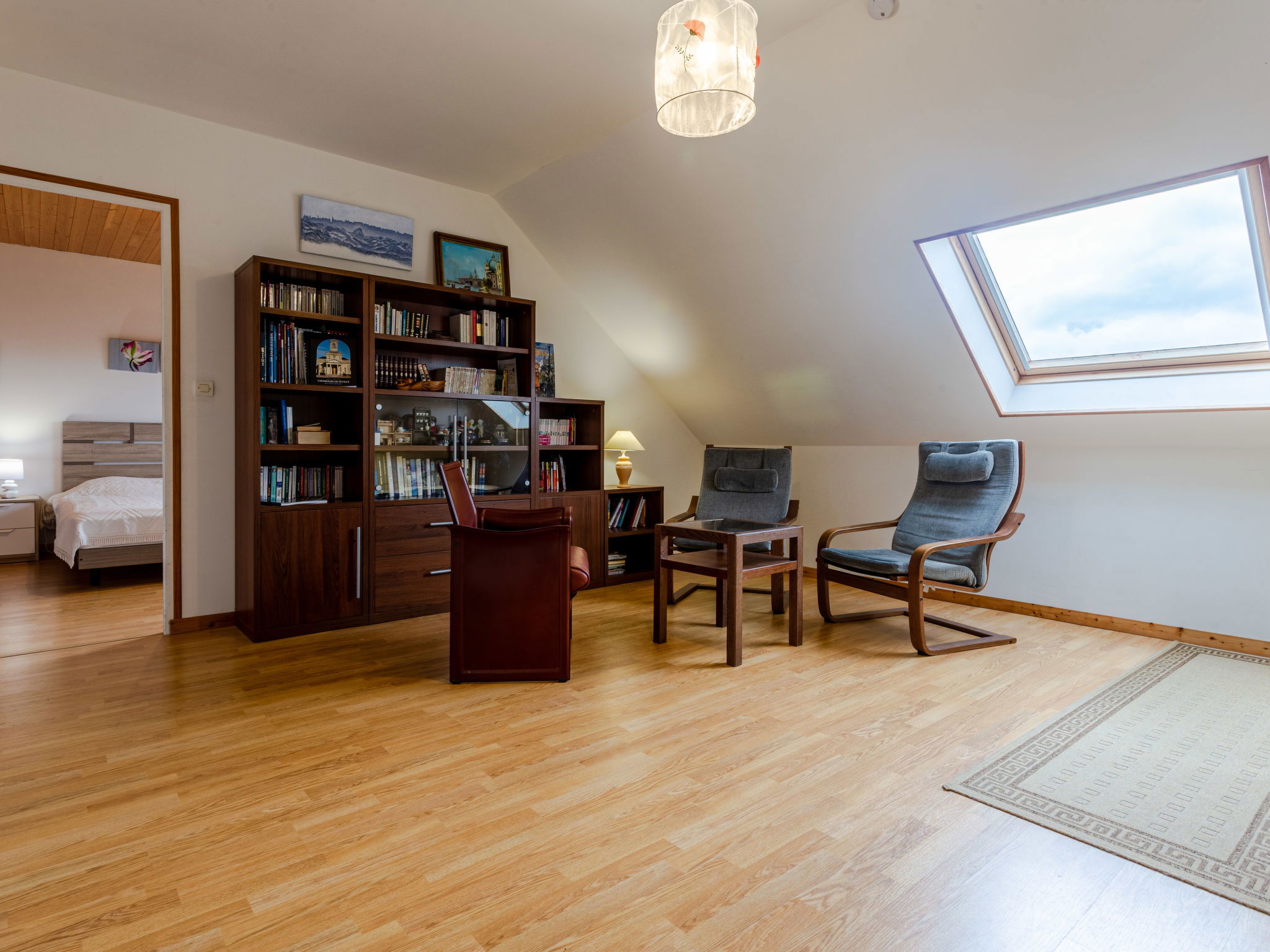 "La Jolie Vague", 4-room house 110 m2 on 2 levels. Bright, beautiful and cosy furnishings: living/dining room with dining table and satellite TV. Exit to the terrace. 1 room with 1 french bed (1 x 160 cm, length 200 cm). Exit to the terrace. Open kitchen (1 hot plate, oven, dishwasher, 3 gas rings, toaster, kettle, microwave, electric coffee machine) with dining table. Shower, sep. WC. Upper floor: 2 rooms with sloping ceilings, each room with 1 french bed (160 cm, length 200 cm). 1 room with 1 bed (90 cm, length 200 cm), 1 french bed (160 cm, length 200 cm). Open small gallery with sloping ceilings. Shower. Electric heating. Parquet floors. Terrace. Terrace furniture, barbecue, deck chairs (4), box-room. Beautiful view of the sea and the countryside. Facilities: washing machine, iron, children's high chair, baby cot. Internet (WiFi, free). Please note: non-smoking house. Maximum 1 pet/ dog allowed. Smoke alarm. When there are less than the maximum number of guests staying at the property, not all of the bedrooms will be available for use. Instead of an enclosed bedroom, some sleeping areas are located in an open-plan area (gallery, alcove, etc.).