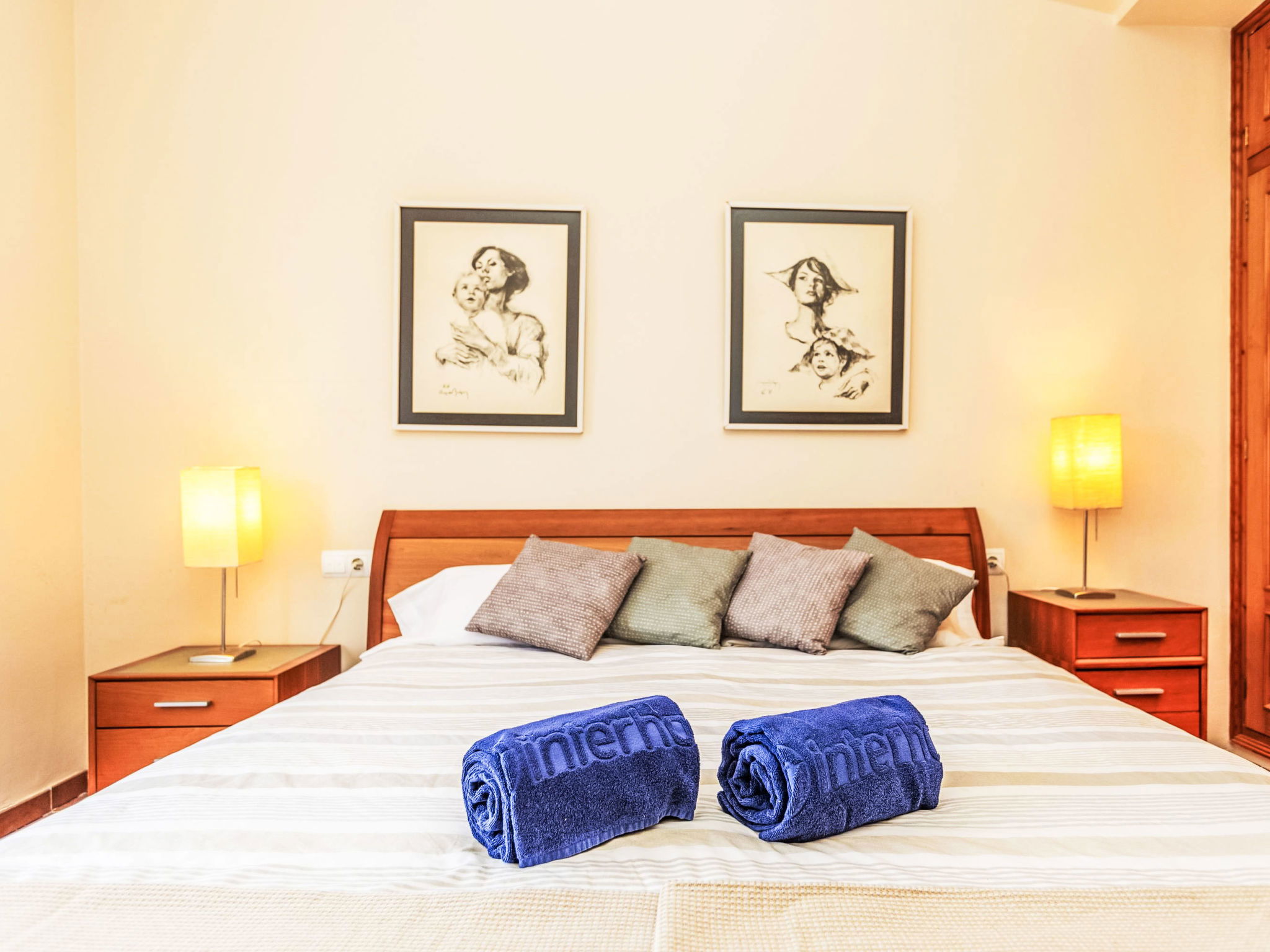 "Xarmada Cecilia", 4-room terraced house 110 m2 on 3 levels. Practical and comfortable furnishings: entrance hall with separate WC. Upper floor: living/dining room with open-hearth fireplace (only for decoration), dining table and digital TV. Exit to the terrace. Kitchen (4 hot plates, oven, dishwasher, microwave, electric coffee machine). Exit to the patio. 2nd upper floor: 1 room with 1 french bed (160 cm, length 190 cm), bath/bidet/WC. Exit to the terrace. 1 room with 1 french bed (180 cm, length 205 cm). Exit to the terrace. 1 room with 1 x 2 bunk beds (80 cm, length 195 cm), 1 pull-out bed (1 pers.). Bath/WC. (4). Marvellous panoramic view of the sea and the countryside. Facilities: washing machine, iron, children's high chair, baby cot, hair dryer. Internet (WiFi, free). Parking space n exterior. Maximum 2 pets/ dogs allowed. Smart tv. HUTG-014591 // Reg. Nr.: ESFCTU00001701400048455500000000000000HUTG-014591-459