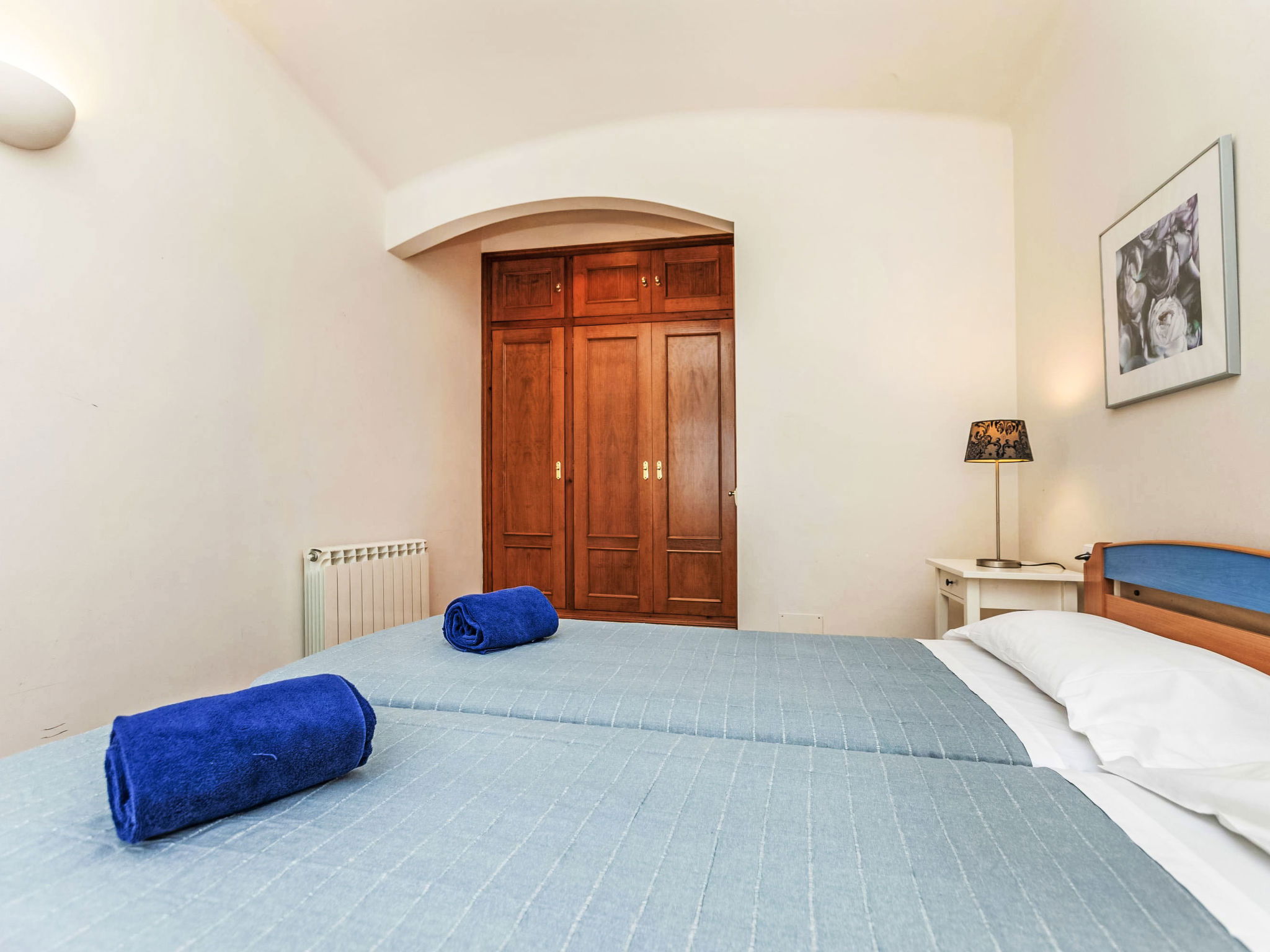 "Xarmada Marco", 4-room terraced house 105 m2 on 3 levels. Practical and comfortable furnishings: living/dining room with open-hearth fireplace, dining table and satellite TV. Exit to the patio. Kitchen (4 hot plates, oven, dishwasher, microwave, electric coffee machine) with dining table. Sep. WC. Upper floor: 1 room with 1 french bed (1 x 160 cm, length 200 cm), shower/bidet/WC. Exit to the terrace. 1 room with 2 double beds (2 x 80 cm, length 190 cm). Exit to the terrace. 1 room with 2 beds (80 cm, length 190 cm). Shower/WC. Marvellous panoramic view of the sea, the countryside and the resort. Facilities: washing machine, iron, children's high chair, baby cot, hair dryer. Internet (WiFi, free). Maximum 2 pets/ dogs allowed. Smart Tv. HUTG-020403