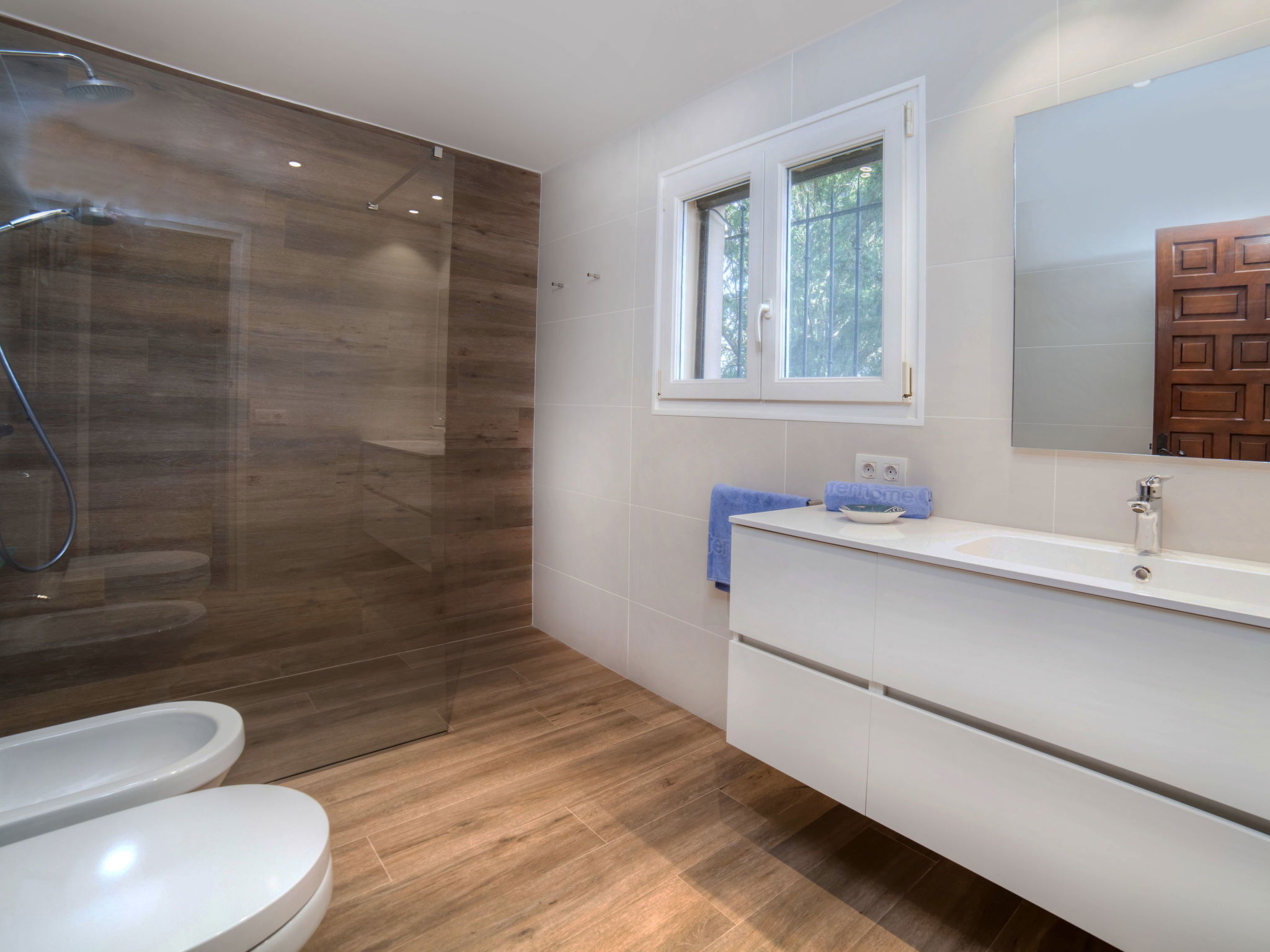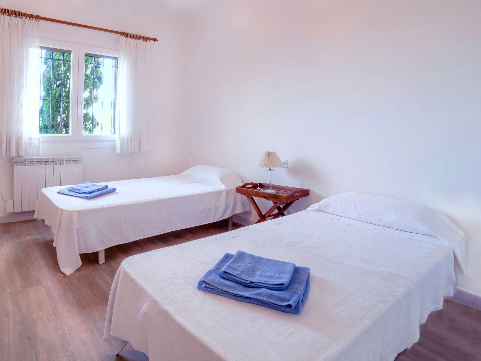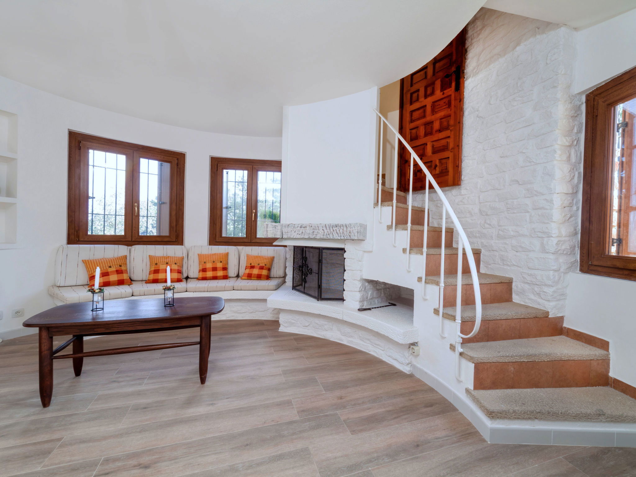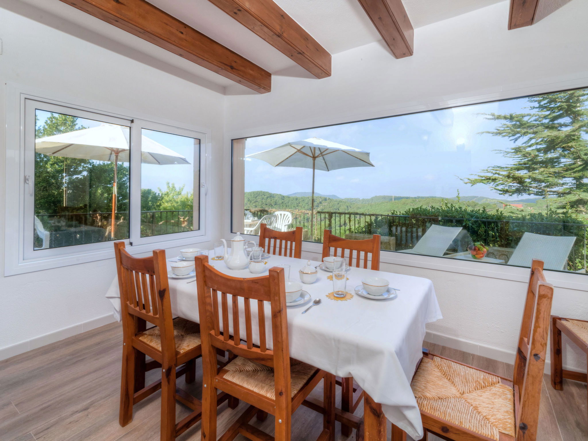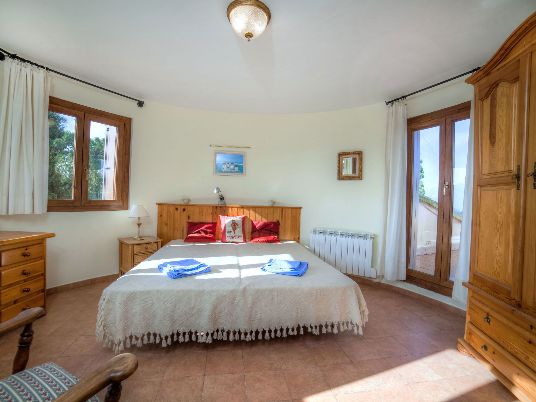 "Hercaris", 5-room house 120 m2 on 2 levels. Practical and comfortable furnishings: entrance hall 18 m2. Living room 25 m2 with separate WC, digital TV and fan. Exit to the garden, to the terrace. Dining room 11 m2 with panoramic window with fan. Exit to the garden, to the terrace. 1 room 10 m2 with 2 beds (80 cm, length 180 cm), fan. 1 room 11 m2, without wardrobe with 2 beds (80 cm, length 190 cm), fan. Kitchen (oven, dishwasher, 4 ceramic glass hob hotplates, toaster, kettle, microwave, freezer, electric coffee machine). Exit to the garden, to the terrace. Shower/WC. Boiler (100 litres). No heating option. On the lower ground floor: (exterior staircase), 1 room with 1 french bed (135 cm, length 190 cm), shower/WC and fan. Exit to the garden. Upper floor: (spiral staircase), 1 room 19 m2 with 1 french bed (160 cm, length 190 cm), fan. Exit to the terrace. Large terrace 42 m2. Terrace furniture, deck chairs (2). Beautiful panoramic view of the mountains, the countryside and the town. Facilities: washing machine, iron, baby cot for up to 2 year olds, hair dryer. Internet (WiFi, free). Please note: suitable for families. Maximum 2 pets/ dogs allowed. TV only ES. No internal connecting door between the floors. HUTG-029424 // Reg. Nr.: ESFCTU00001701400016419800000000000000000HUTG-0294248