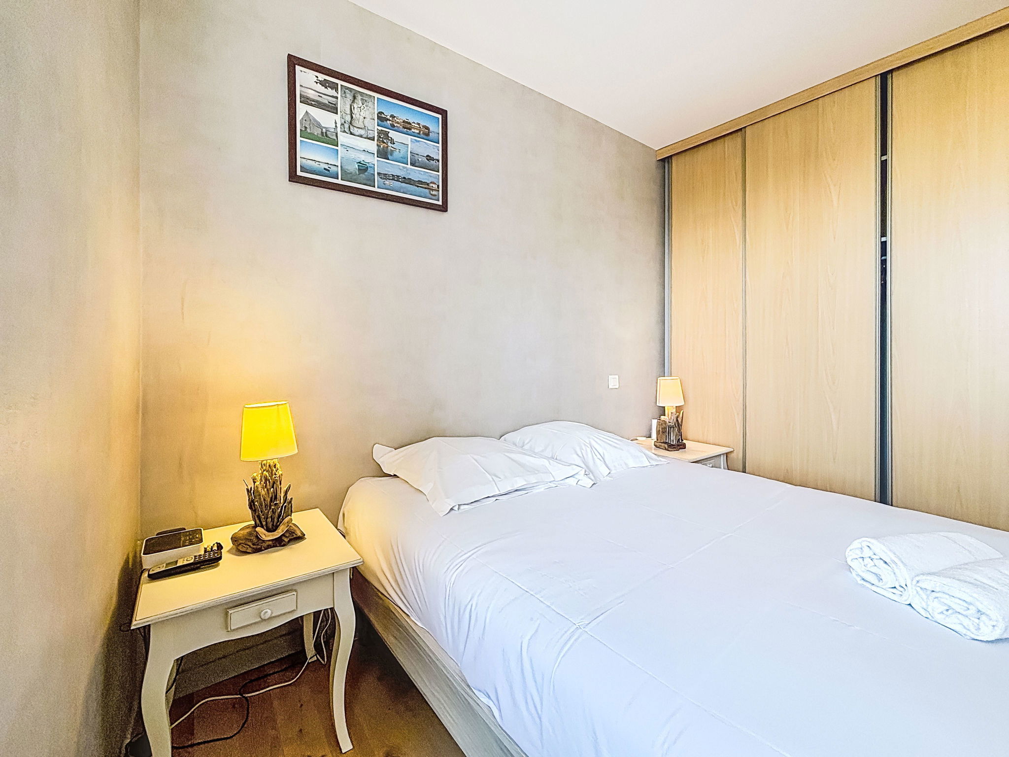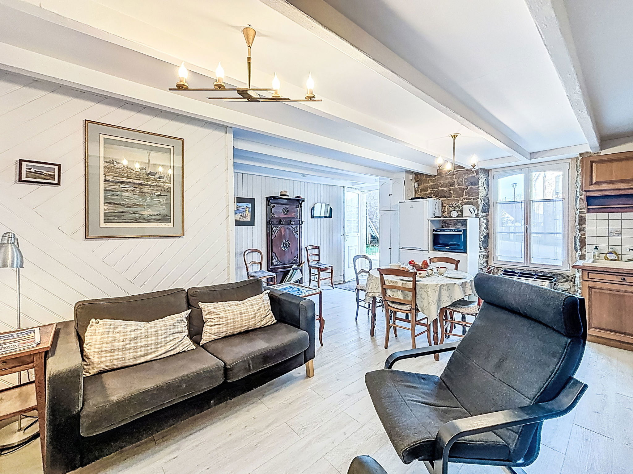Saint-Cado: Terraced house "Maison de Saint-Cado". 150 m from the sea, 400 m from the beach. Supermarket 1 km, restaurant, bar, café 300 m, bus stop "Belz centre" 2 km, sandy beach "Plage de Saint-Cado" 400 m. Nearby attractions: Ria d'Etel, Plage de Kerhillio 6 km, Carnac et les Alignements 12 km, Presqu'île de Quiberon 22 km, Vannes 33 km, Belle-Ile en mer.