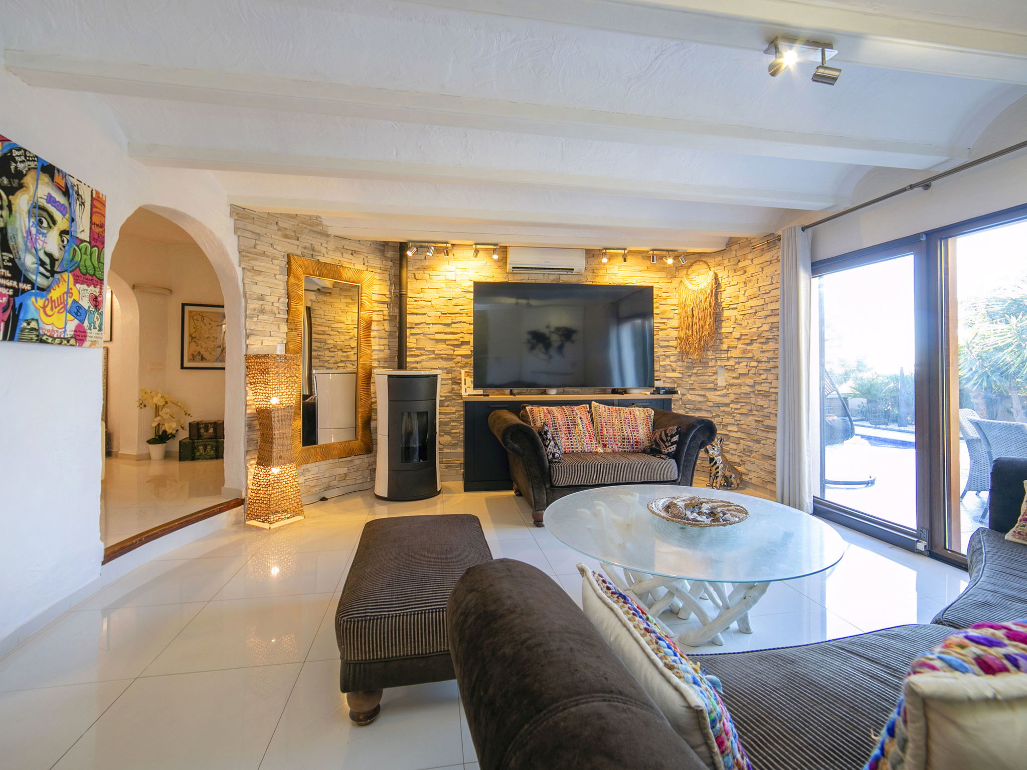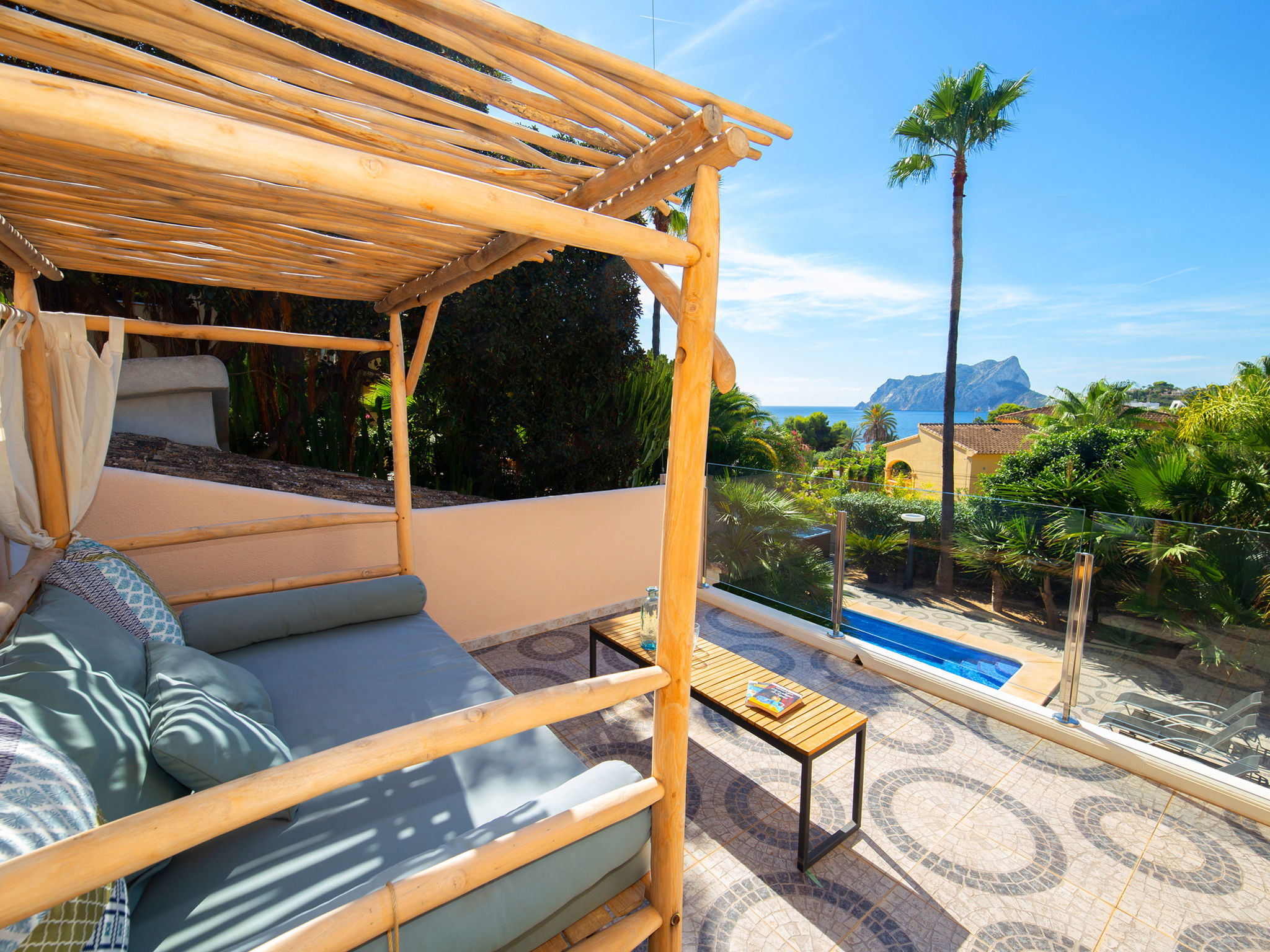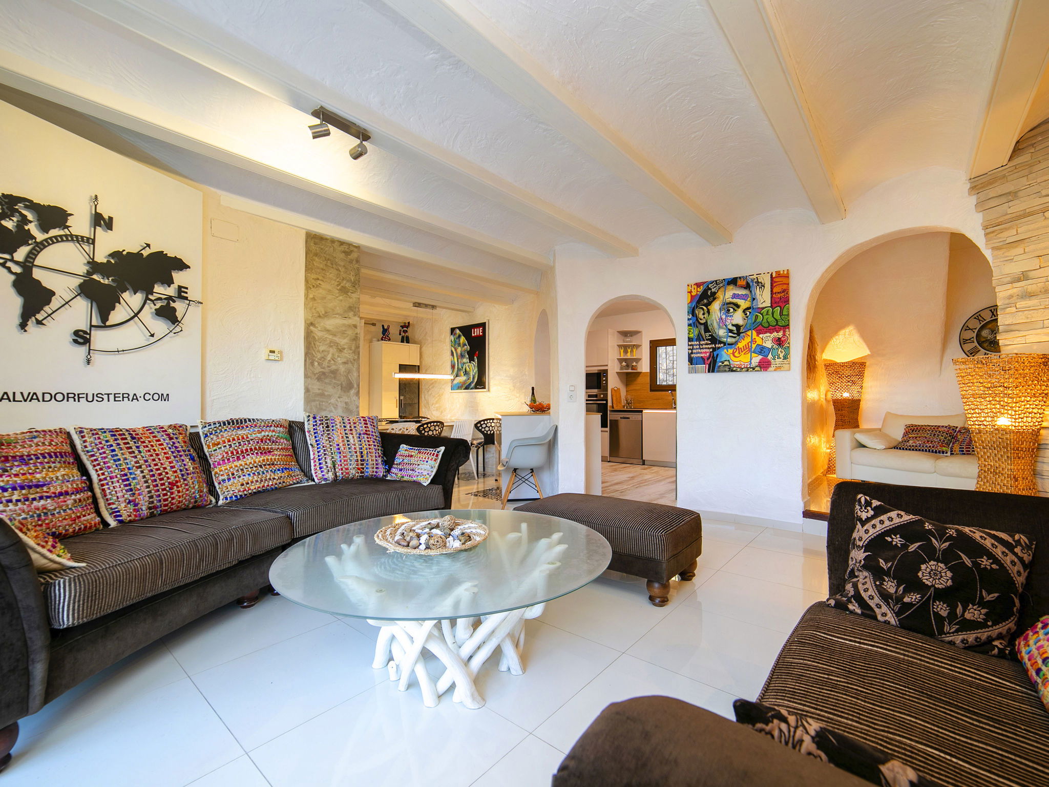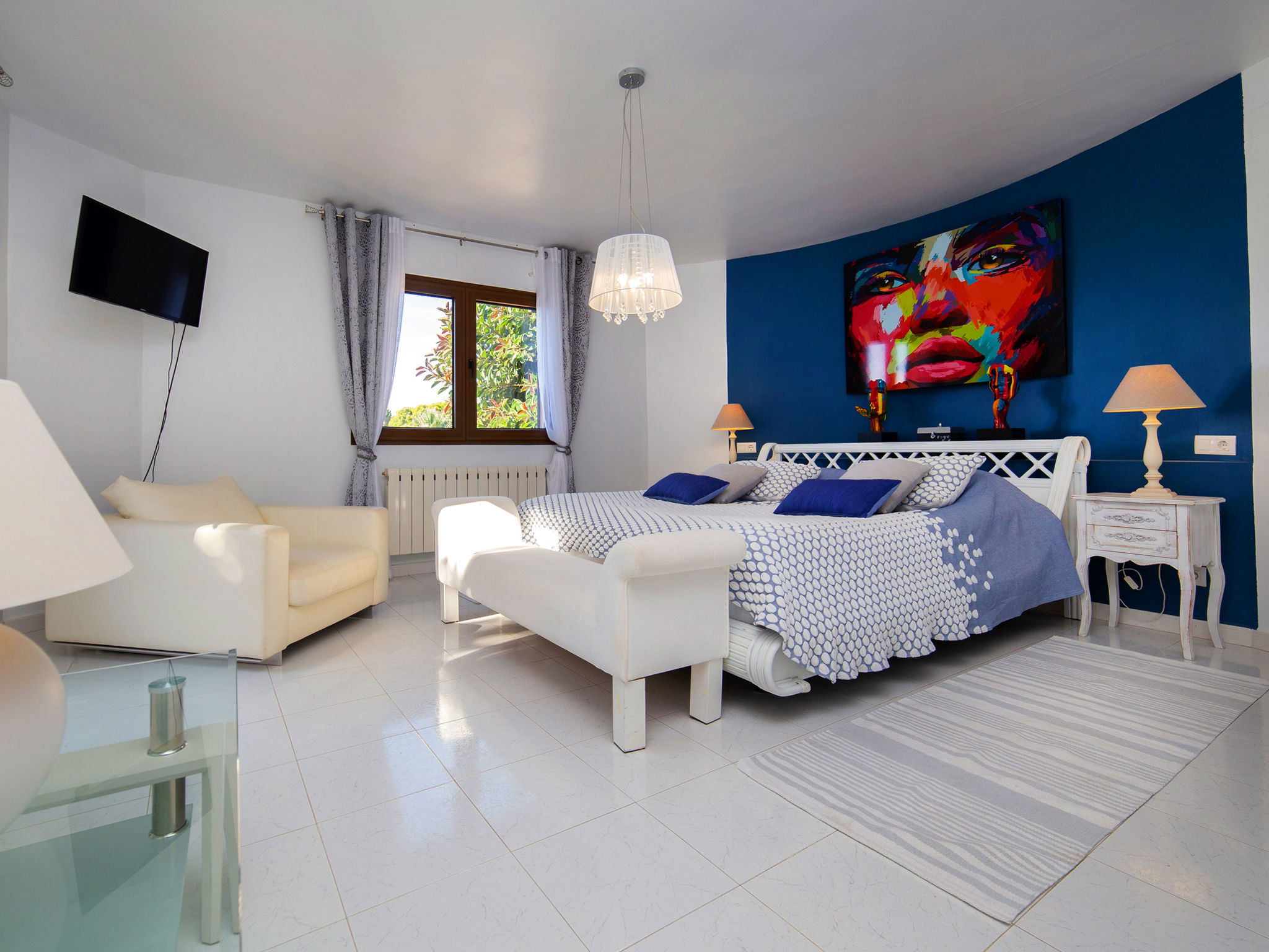 Beautiful, comfortable villa "El Salvador", 2 storeys. 7 km from the centre of Moraira, 7 km from the centre of Calpe, in a secluded, quiet position residential area (villas), traffic calmed area, 250 m from the sea, 250 m from the beach. Private: property (fenced), beautiful, well-kept garden, swimming pool (8 x 4 m, seasonal availability: 01.Jan. - 31.Dec.). Outdoor shower, hot tub, pool house with fridge and cooking stove, terrace, barbecue. Grocery, supermarket 750 m, restaurant, bar, café 650 m, bus stop 600 m, sandy beach "Playa la Fustera" 650 m. Sports harbour 2 km, golf course (9 hole) 6 km. Nearby attractions: Aqualandia, Mundomar, Terra Mítica, Terra Natura, Benidorm Palace (Benidorm), Les Fonts de l'Algar, Castillo de Guadalest. The owner does not accept any youth groups.