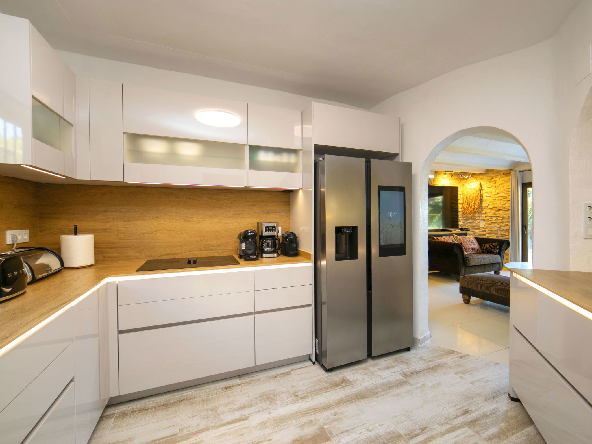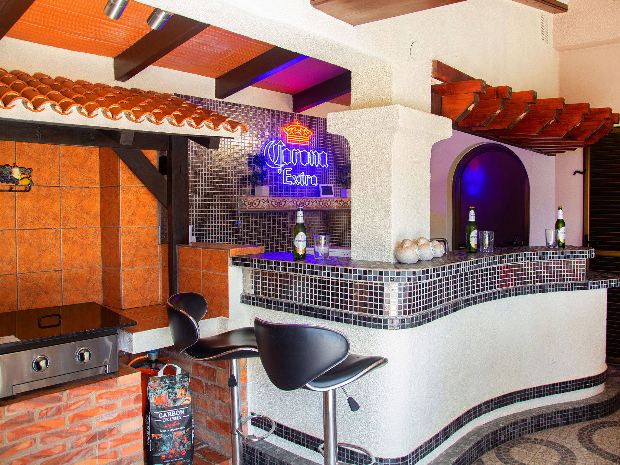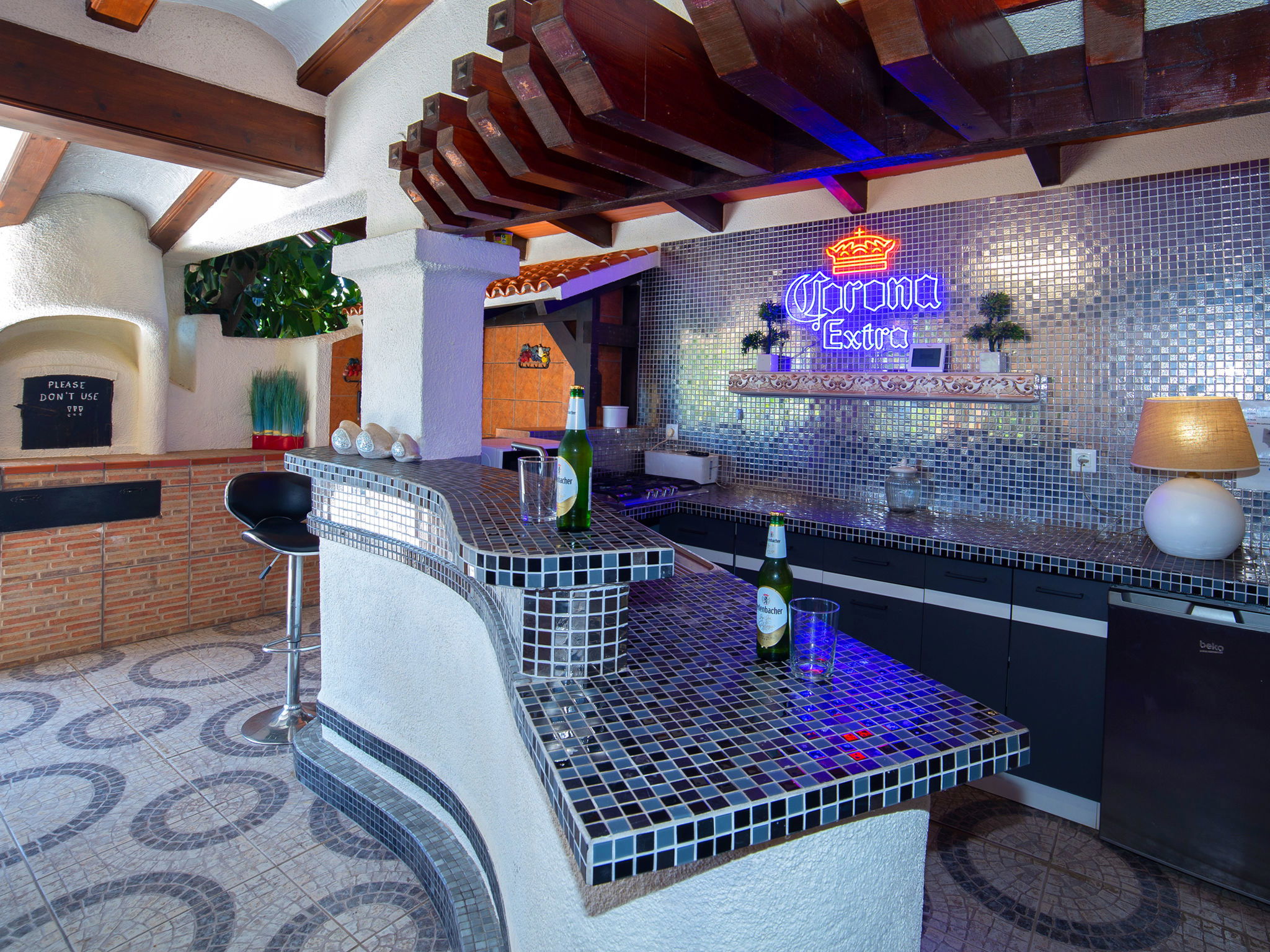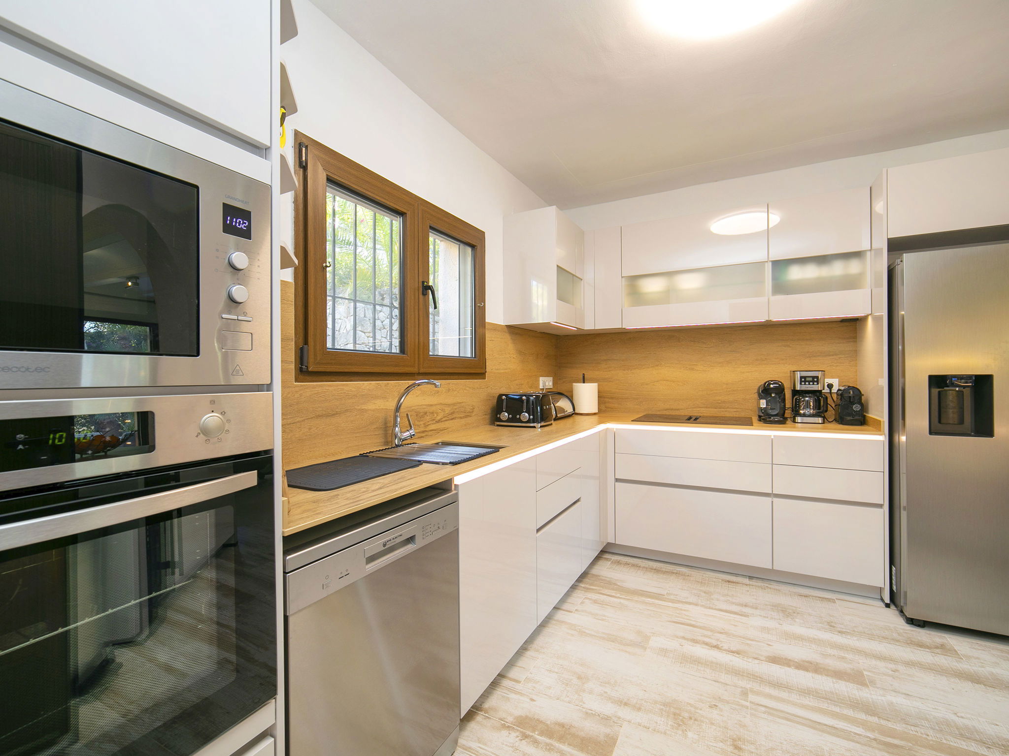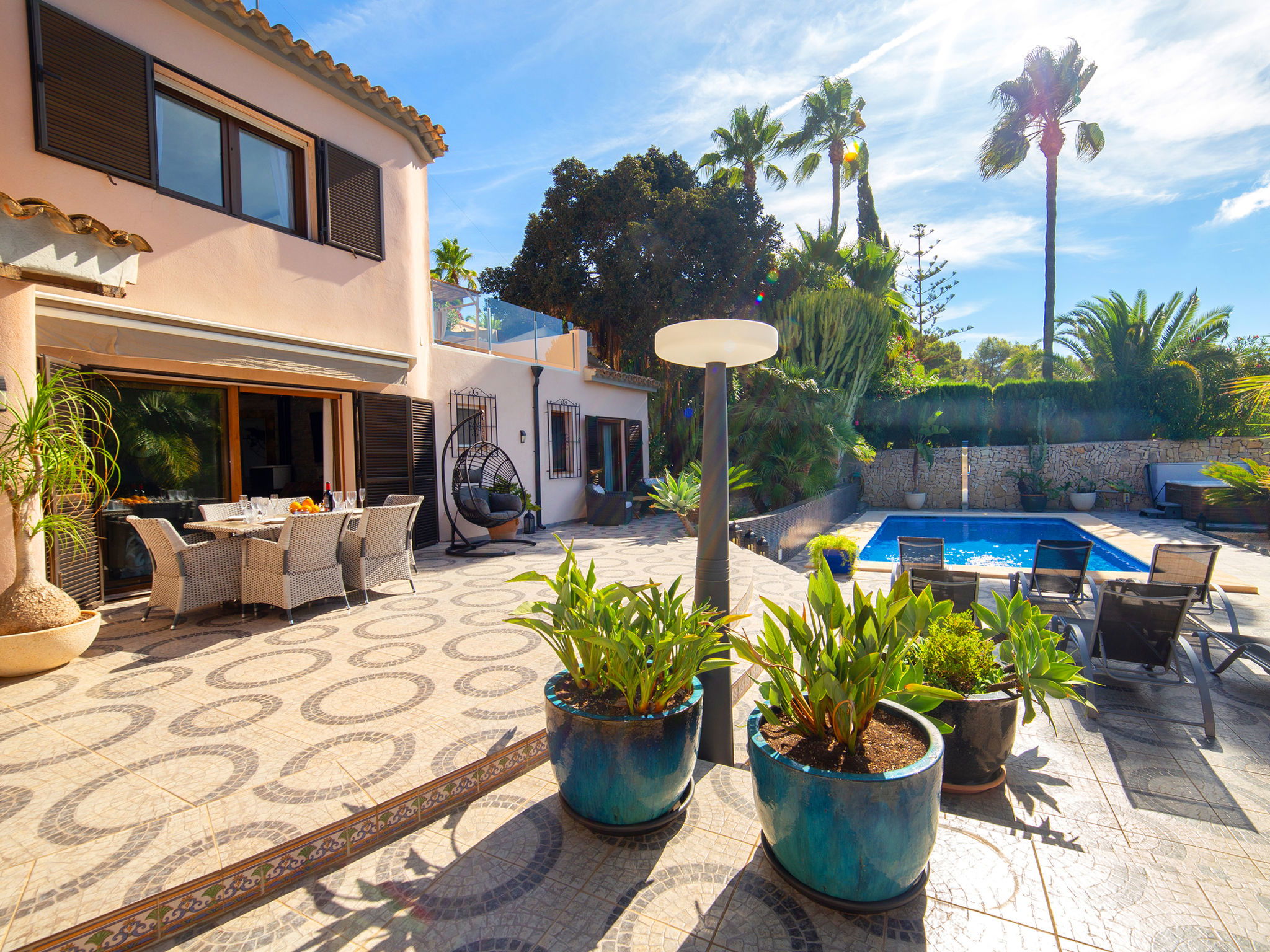 Beautiful, comfortable villa "El Salvador", 2 storeys. 7 km from the centre of Moraira, 7 km from the centre of Calpe, in a secluded, quiet position residential area (villas), traffic calmed area, 250 m from the sea, 250 m from the beach. Private: property (fenced), beautiful, well-kept garden, swimming pool (8 x 4 m, seasonal availability: 01.Jan. - 31.Dec.). Outdoor shower, hot tub, pool house with fridge and cooking stove, terrace, barbecue. Grocery, supermarket 750 m, restaurant, bar, café 650 m, bus stop 600 m, sandy beach "Playa la Fustera" 650 m. Sports harbour 2 km, golf course (9 hole) 6 km. Nearby attractions: Aqualandia, Mundomar, Terra Mítica, Terra Natura, Benidorm Palace (Benidorm), Les Fonts de l'Algar, Castillo de Guadalest. The owner does not accept any youth groups.