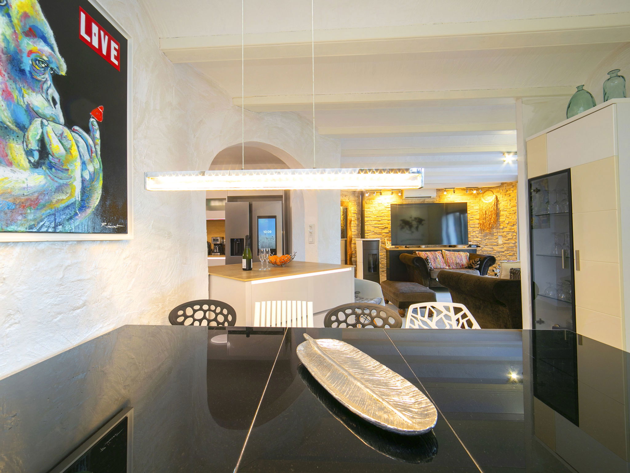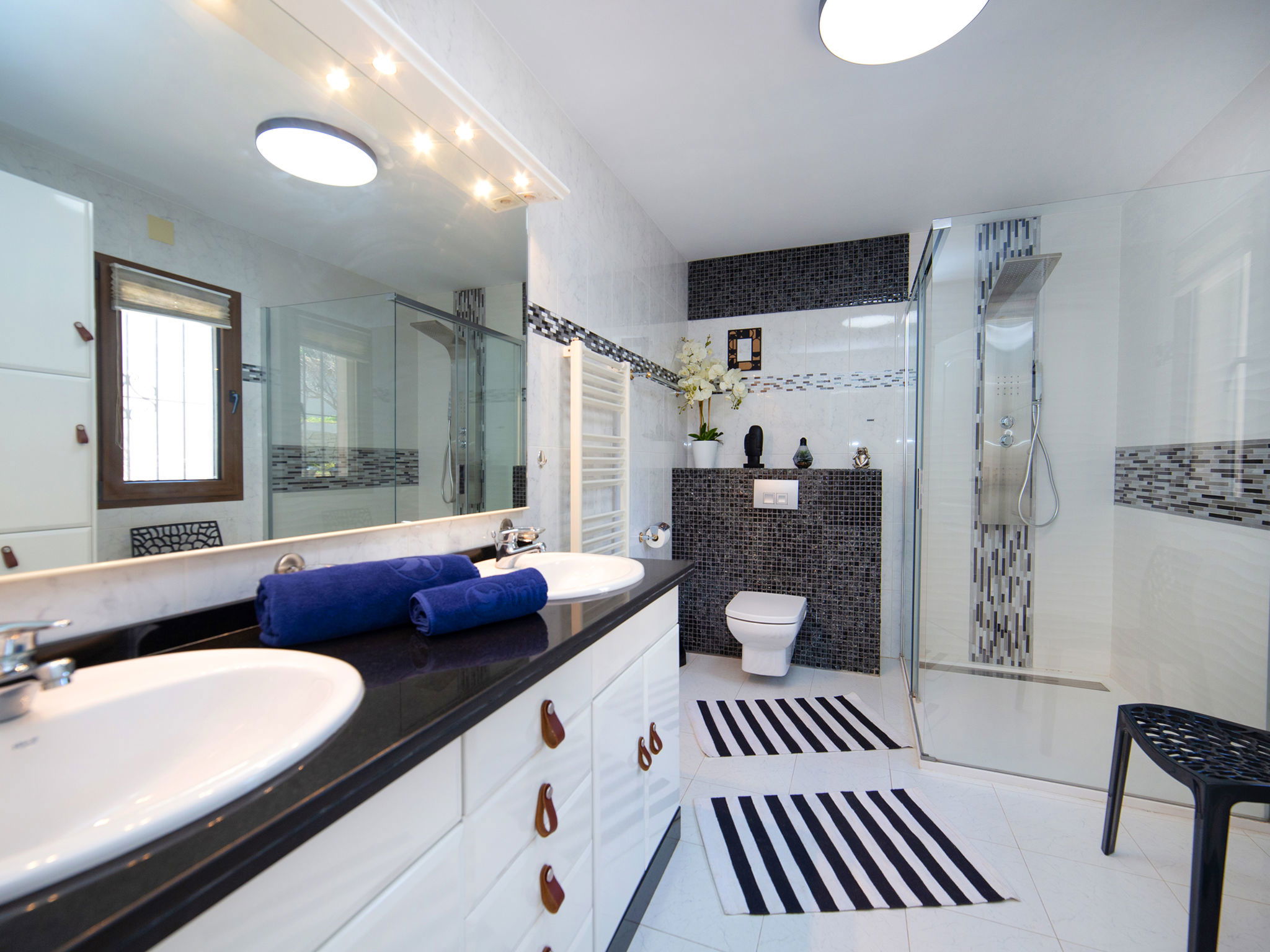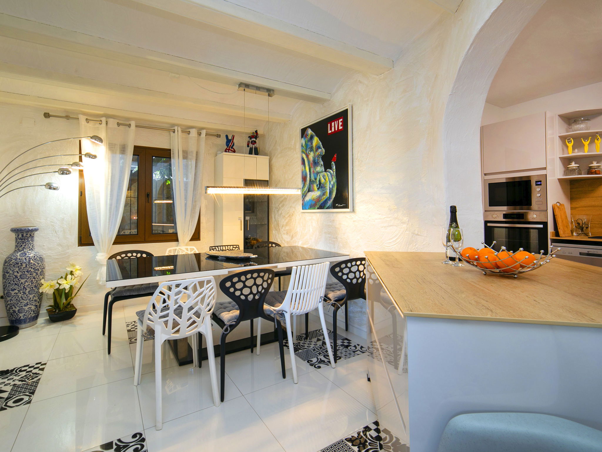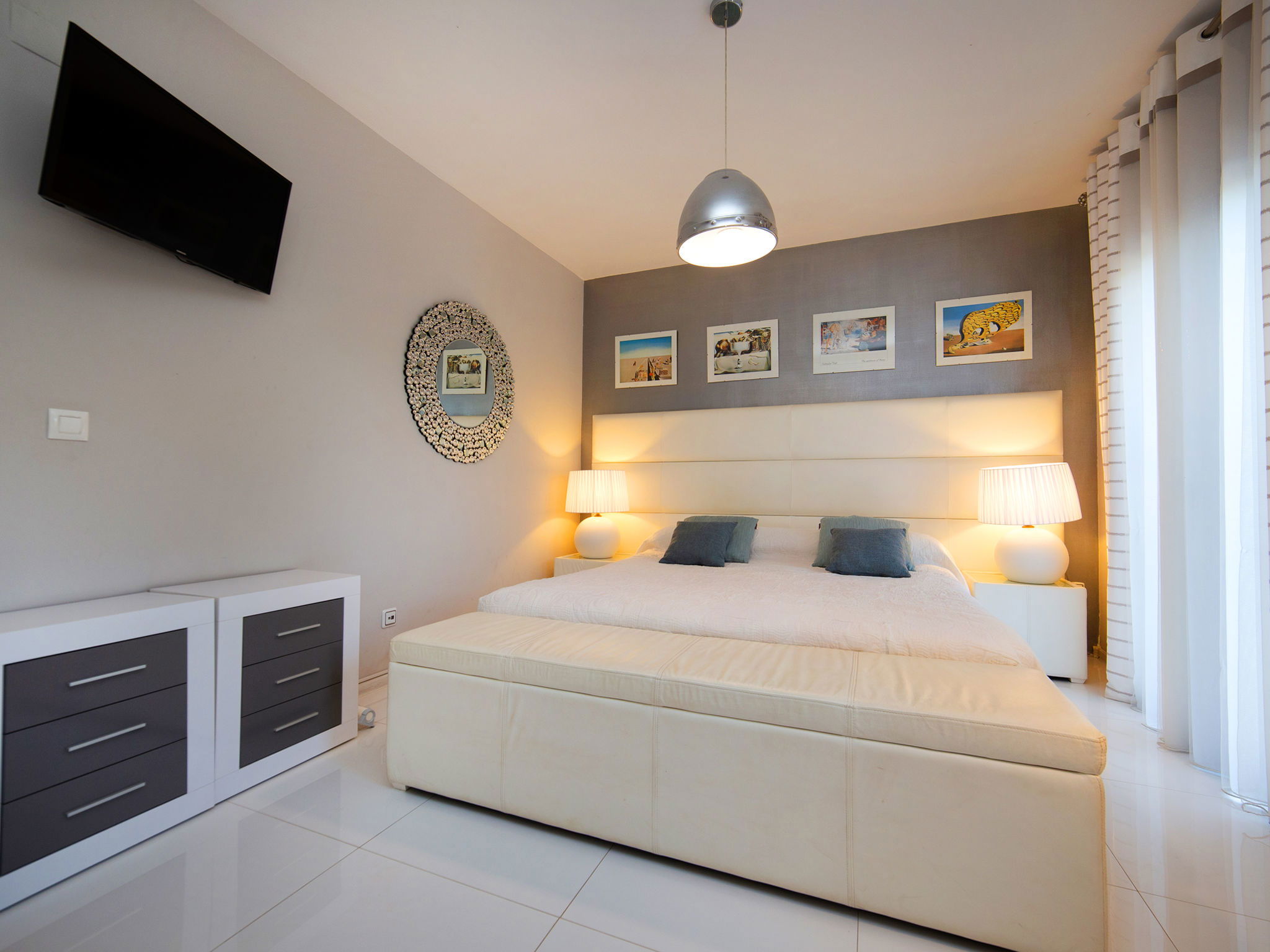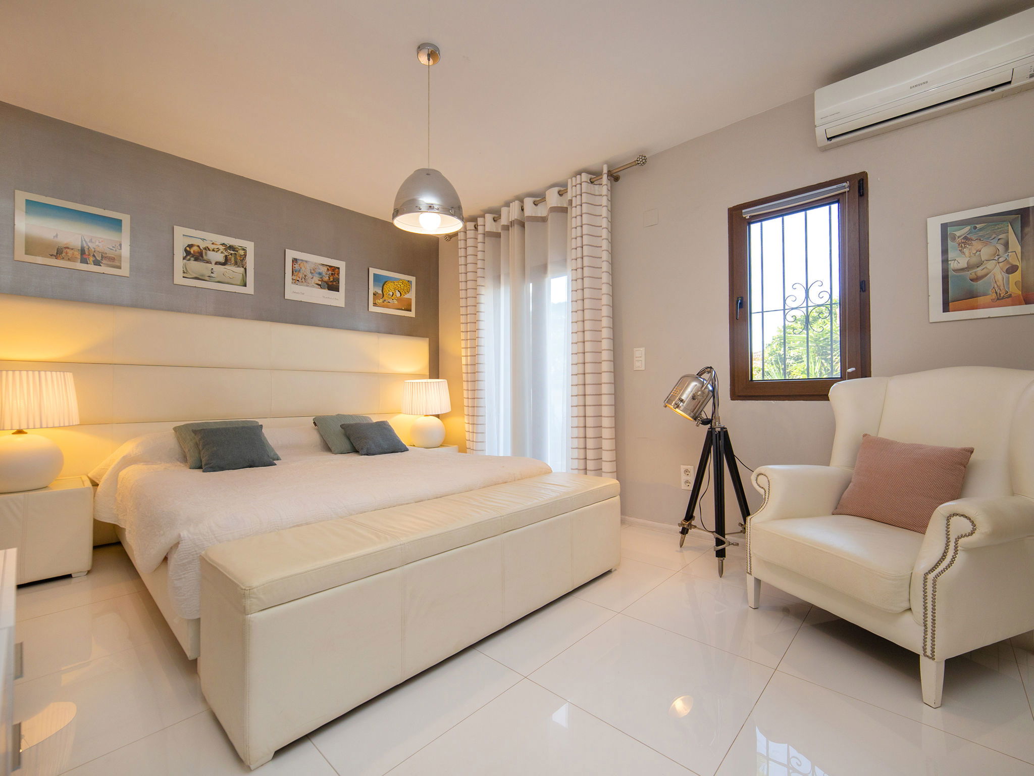 "El Salvador", 5-room villa 301 m2 on 2 levels. Object suitable for 6 adults + 2 children. Spacious and bright, comfortable and beautiful furnishings: open living/dining room with satellite TV, air conditioning and forced-air heating. Exit to the terrace. 1 room with 1 french bed (1 x 180 cm, length 200 cm), shower/WC, satellite TV, air conditioning and forced-air heating. Exit to the terrace. 1 room with 1 french bed (180 cm, length 200 cm), shower/WC, satellite TV, digital TV, air conditioning and forced-air heating. Exit to the terrace. Kitchen (oven, dishwasher, 4 ceramic glass hob hotplates, toaster, kettle, microwave, freezer, electric coffee machine). Upper floor: 1 room with Dressing room with 1 french bed (1 x 180 cm, length 200 cm), satellite TV, air conditioning and forced-air heating. Exit to the terrace. 1 room with 1 sofabed (140 cm, length 190 cm), air conditioning and forced-air heating. Shower/WC, double hand-basin. Terrace furniture, barbecue (portable), deck chairs, sitting area. Beautiful view of the sea. Facilities: washing machine, dryer, mosquito net, children's high chair, baby cot for up to 2 year olds, hair dryer. Internet (WiFi, free). Garage. Please note: suitable for families. Non-smoking house. 1 small pet/ dog allowed. Gas plancha. VT-502709-A // Reg. Nr.: ESFCTU00000302900011436100000000000000000VT-502709-A8
