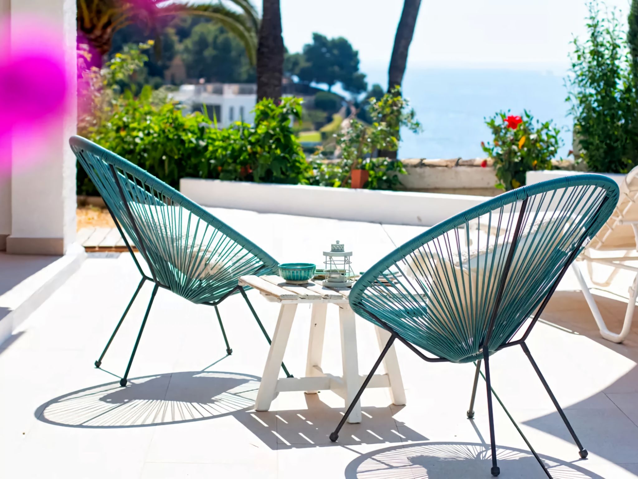 "Cala Advocat", 4-room villa 110 m2, on the upper floor. Spacious and bright, comfortable and beautiful furnishings: on the lower ground floor: shower/WC. Upper floor: (exterior staircase) living/dining room with digital TV, air conditioning and forced-air heating. 2 rooms, each room with 1 french bed (1 x 160 cm, length 200 cm), fan. 1 room with 2 beds (90 cm, length 200 cm). Open kitchen in the entrance (oven, dishwasher, 3 ceramic glass hob hotplates, toaster, kettle, microwave, electric coffee machine). Exit to the terrace. Shower/WC. Large terrace. Terrace furniture, barbecue. Beautiful view of the sea and the resort. Facilities: washing machine, iron, children's high chair, baby cot for up to 2 year olds, hair dryer. Internet (WiFi, free). Parking. Please note: suitable for families. Non-smoking house. 1 small pet/ dog allowed. VT-502530-A // Reg. Nr.: ESFCTU00000302900003449200000000000000000VT-502530-A4