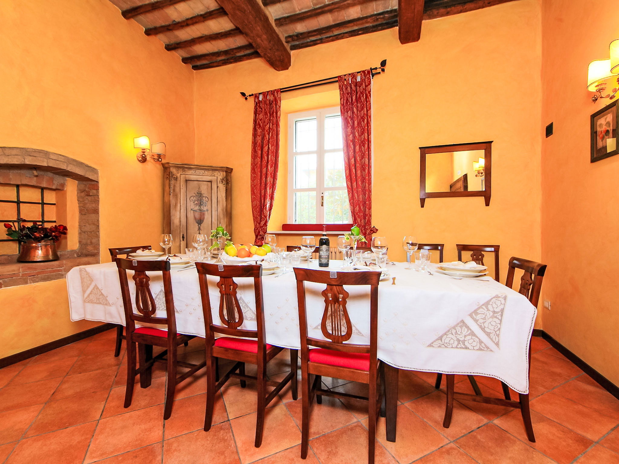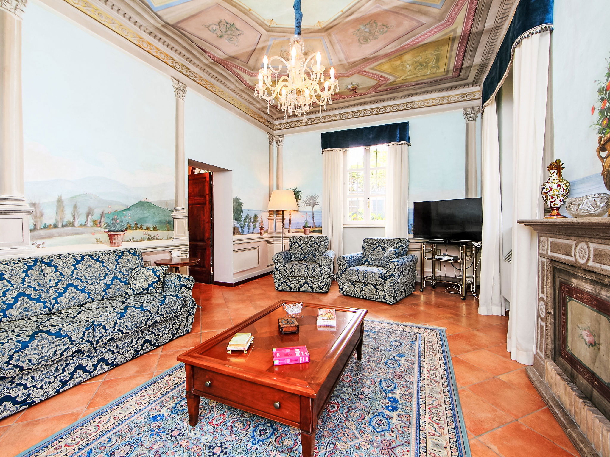 10-room villa 300 m2 on 3 levels, on the ground floor. Antique and luxurious furnishings: entrance hall. Living room with open-hearth fireplace, satellite TV and flat screen. Dining room with dining table. Lounge with open-hearth fireplace. Kitchen 18 m2 (5 hot plates, oven, dishwasher, toaster, microwave, freezer, electric coffee machine). Shower/bidet/WC. Upper floor: 2 double bedrooms, each room with shower/bidet/WC and air conditioning. 1 double bedroom with air conditioning. 1 double bedroom with air conditioning. Exit to the terrace. Shower/bidet/WC. Gas heating. Heating available only from 15.04. to 15.10. 2nd upper floor: small living room, ceiling height 140 - 218 cm. 1 double bedroom with sloping ceilings, ceiling height 140 - 218 cm with shower/bidet/WC. 1 room with sloping ceilings, ceiling height 140 - 218 cm with 2 beds. Garden. Terrace furniture. Facilities: washing machine, mosquito net. Internet (WiFi). Maximum 1 pet/ dog allowed. IT054003C25U030295