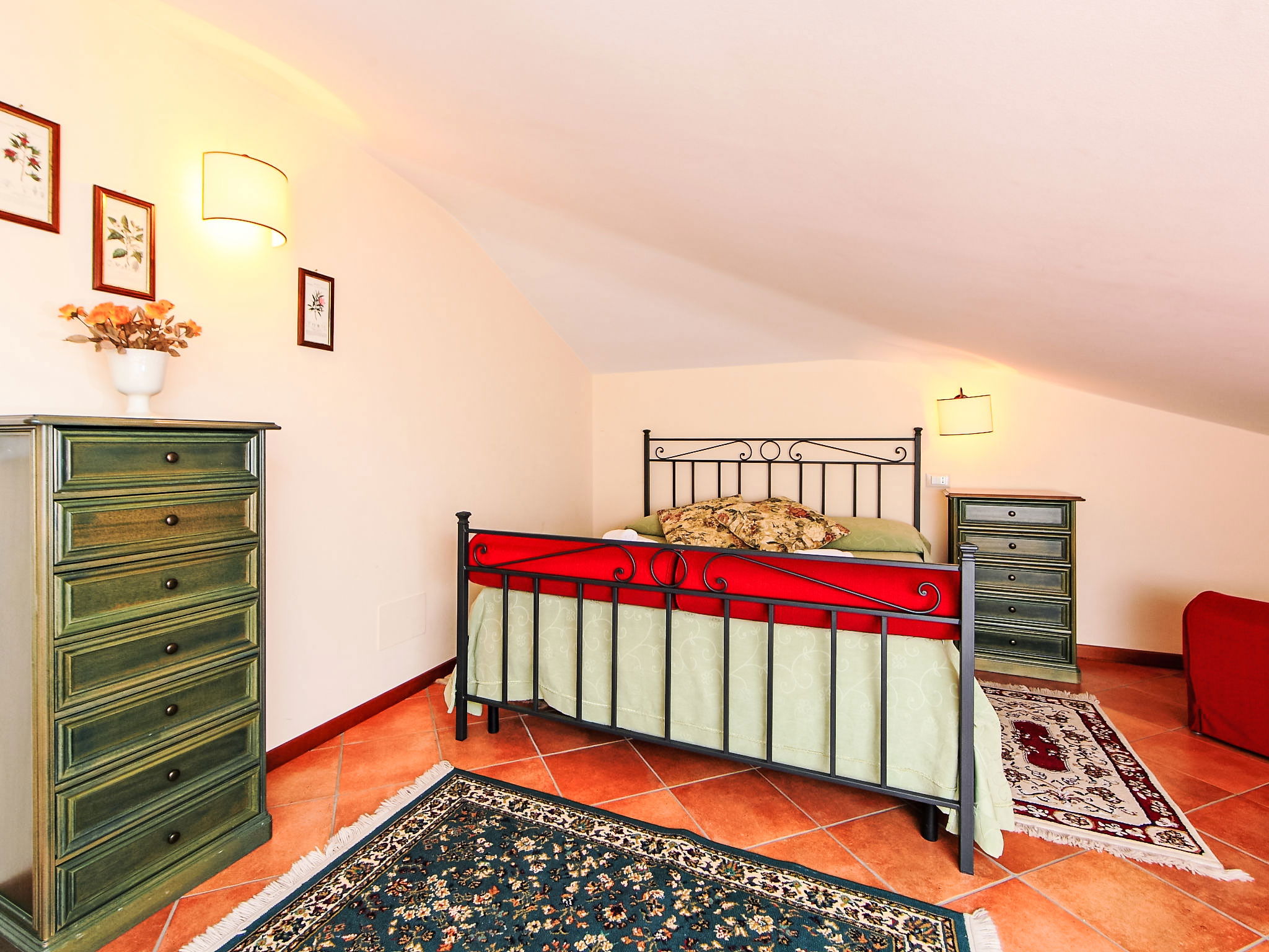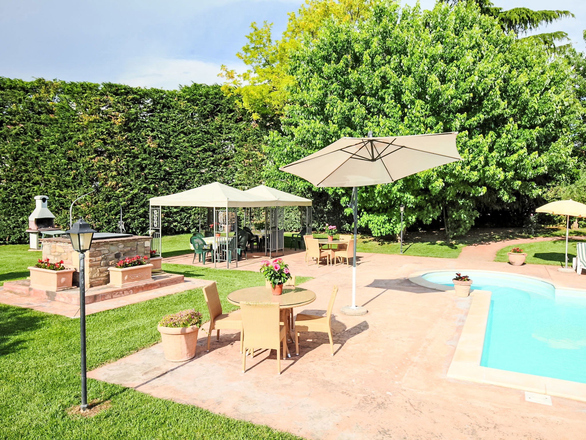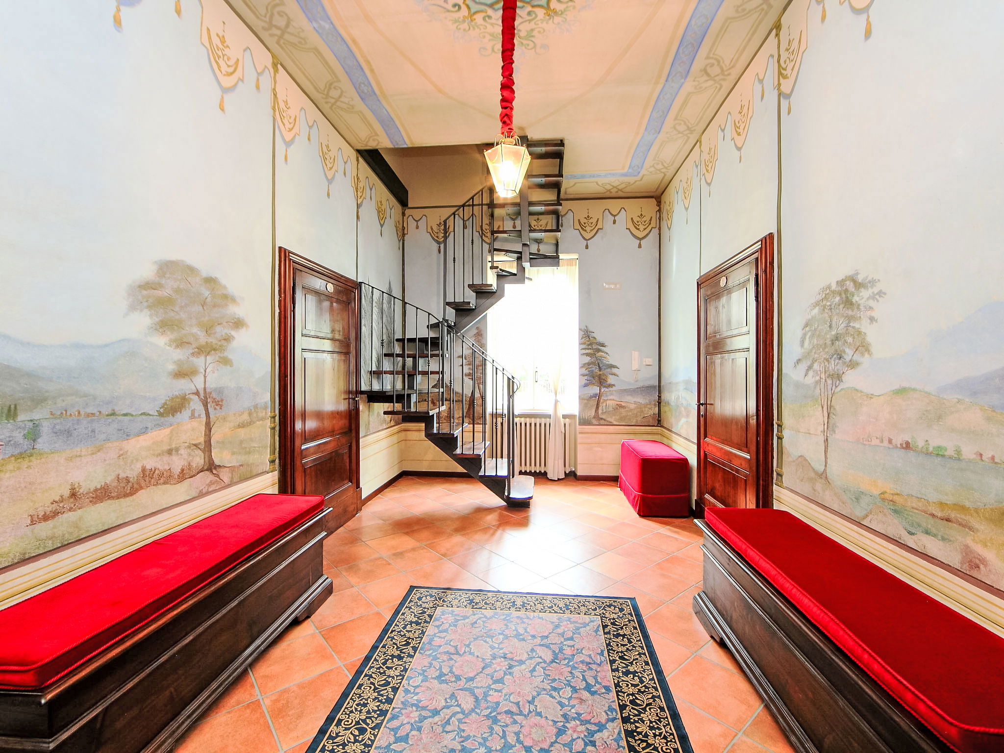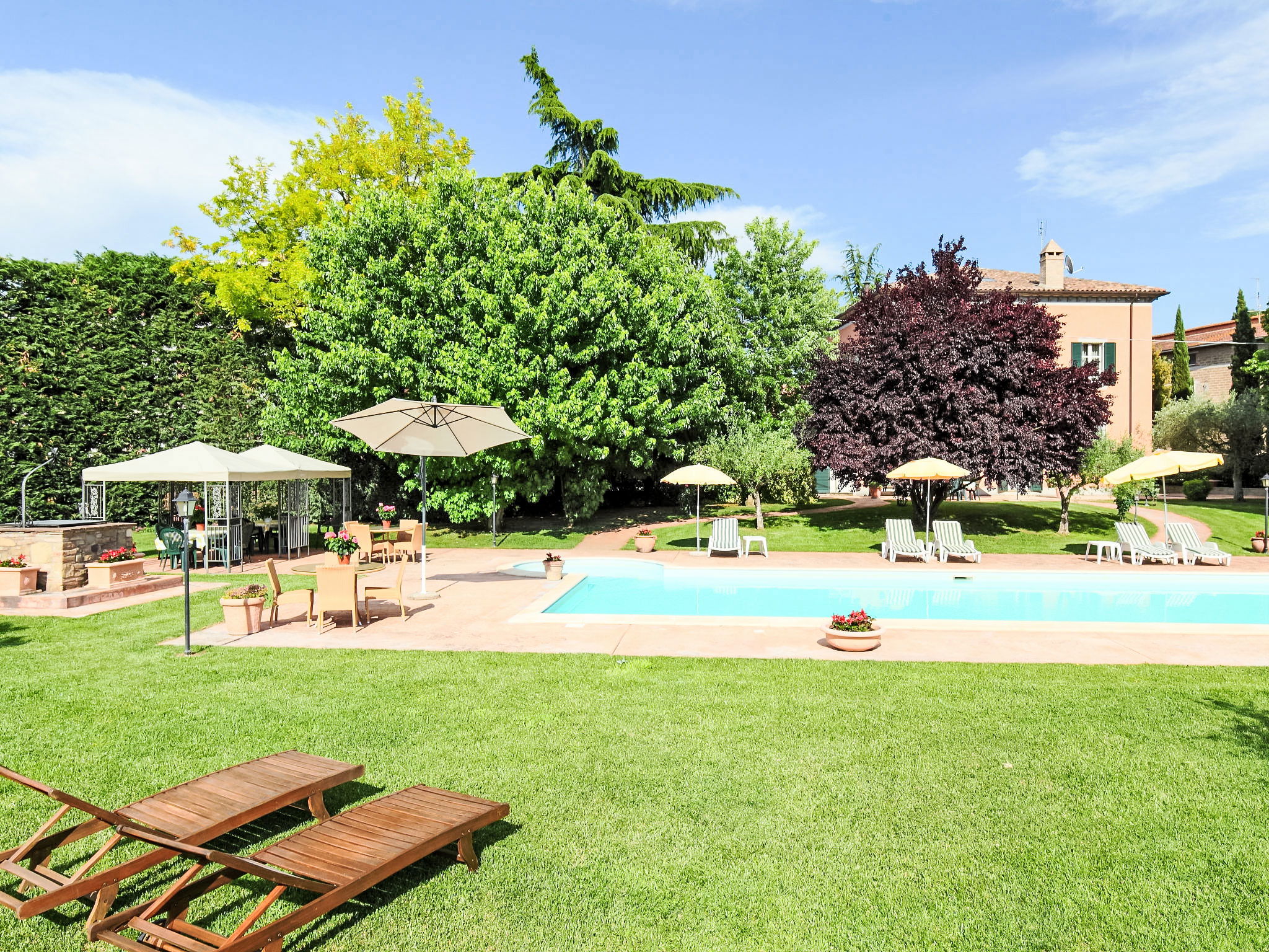 This villa was built around 1850 by a baron of the Perugia aristocracy, relative of the Pope Pio IX. The villa has been recently renovated with absolute care for the original frescos and period furniture. The property is closeby the main road of the village. Florence and Rome 150 km, Todi 30 Km. Spoleto 40 km. Perugia airport 15 km. Villa "Paolotti", built in 1870. In a hamlet 3 km from the centre of Bettona, 18 km from the centre of Perugia, in a sunny position, on a main road. Private: garden (fenced), swimming pool (14 x 6 m, depth 145 cm, seasonal availability: 25.May. - 30.Sep.). Pergola, garden furniture, barbecue. In the house: washing machine. Available: bicycles (4) (extra). Parking on the premises. Grocery 100 m, supermarket 1 km, restaurant 1 km. Riding stable 3 km. Nearby attractions: Assisi 15 km. The owner does not accept any youth groups.