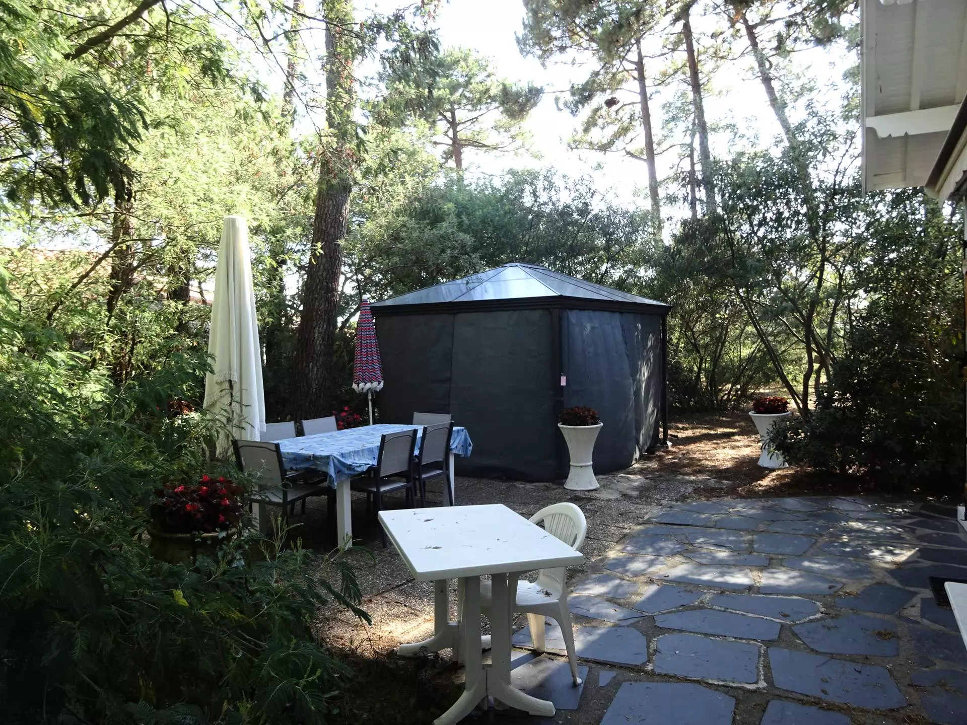 In a quiet area of the resort, 1km from the beach and shops, old villa with a surface area of 90m2 for 8 people, located on a fenced and wooded plot of 1060m2. Garden furniture and barbecue.