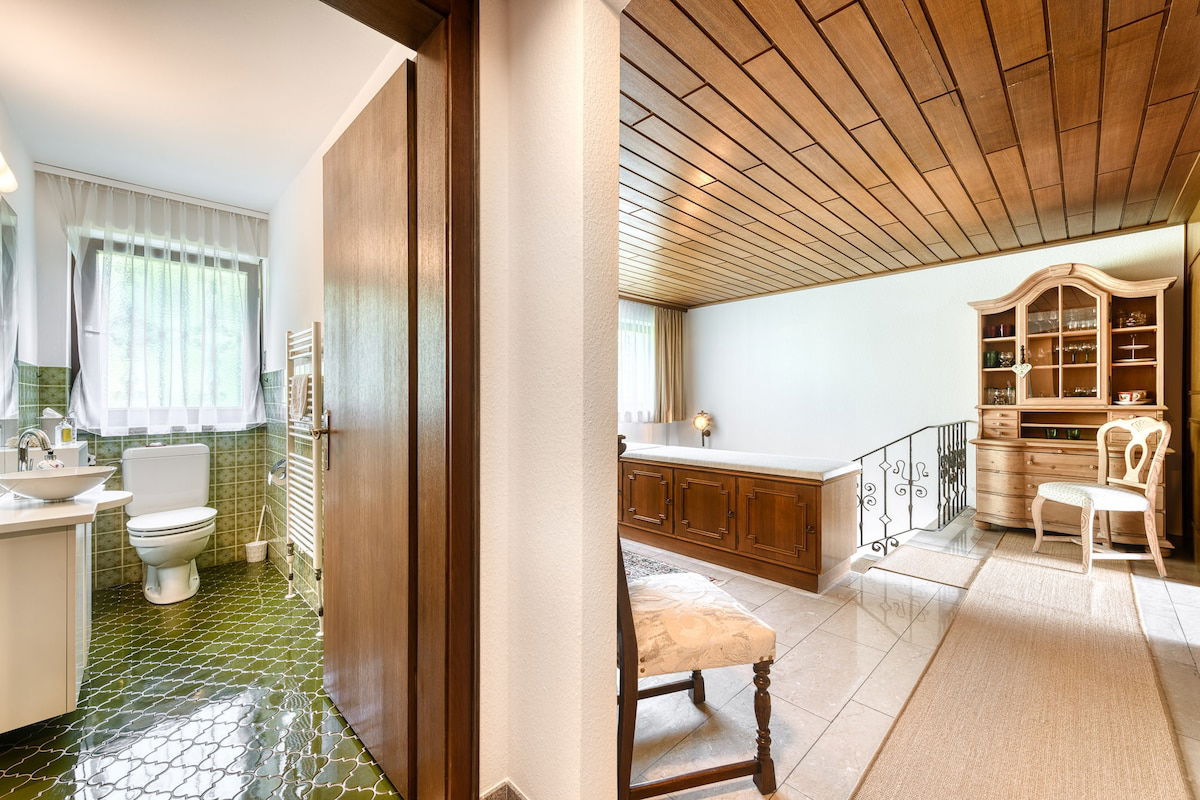 Two bathrooms, one on the ground floor and one upstairs, are available for guests. There is also a guest toilet on the upper floor.