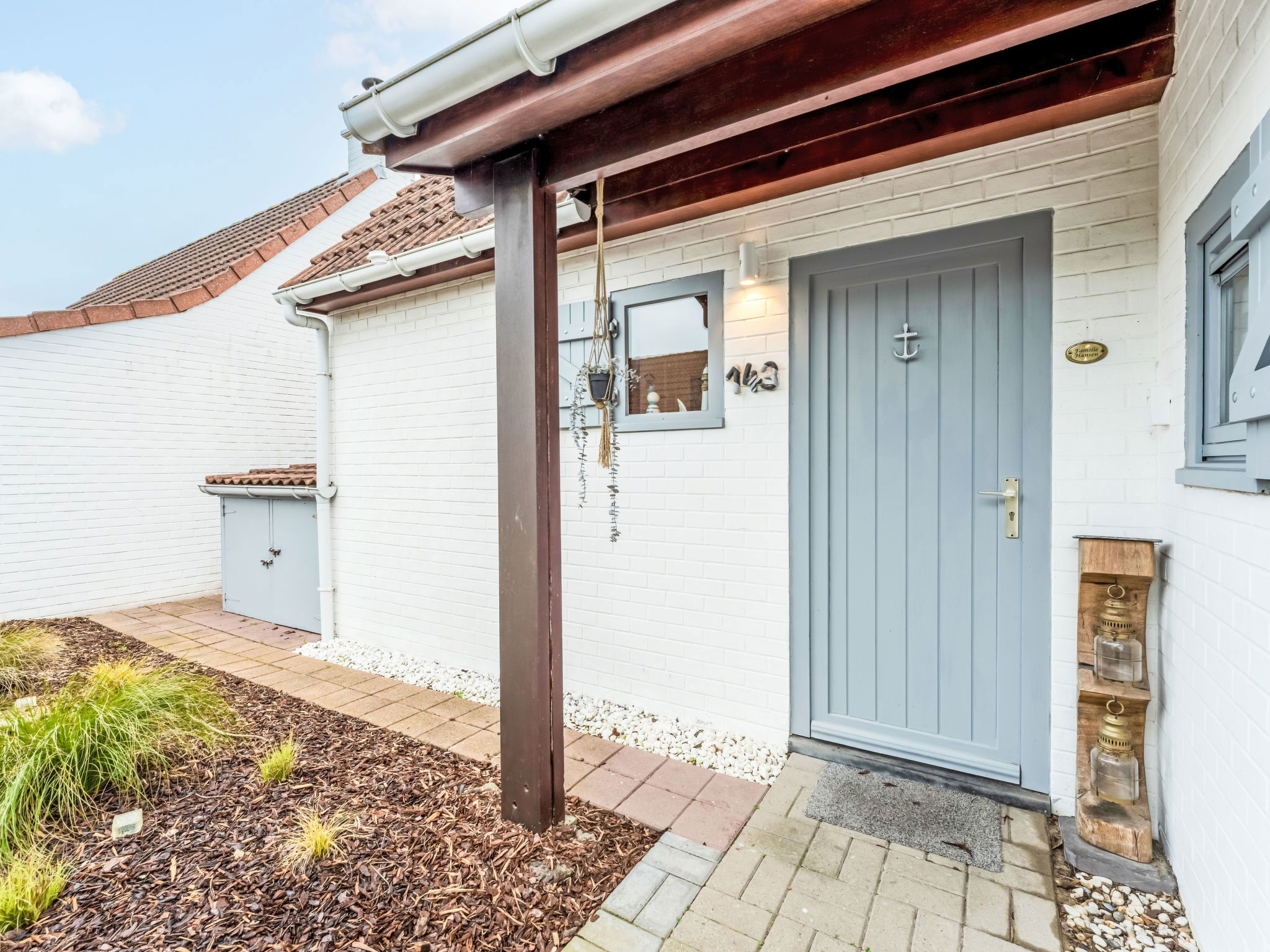 "Strandhuis with parking", 4-room bungalow 100 m2 on 2 levels. Comfortable and cosy furnishings: entrance hall with separate WC. Open living/dining room with dining table, digital TV and international TV channels. Exit to the garden. 1 double bedroom with 1 double bed (160 cm, length 200 cm). 1 double bedroom with 1 double bed (140 cm, length 200 cm). Open kitchen (dishwasher, 4 ceramic glass hob hotplates, toaster, kettle, electric coffee machine, combination microwave). Shower. Heating. Upper floor: open mezzanine with 2 beds (90 cm, length 200 cm). Terrace furniture. Facilities: children's high chair, baby cot, hair dryer. Internet (WiFi, free). Parking space n 143 (1 car). Please note: non-smoking house. Maximum 1 pet/ dog allowed. Smoke alarm, fire extinguisher. LD226344