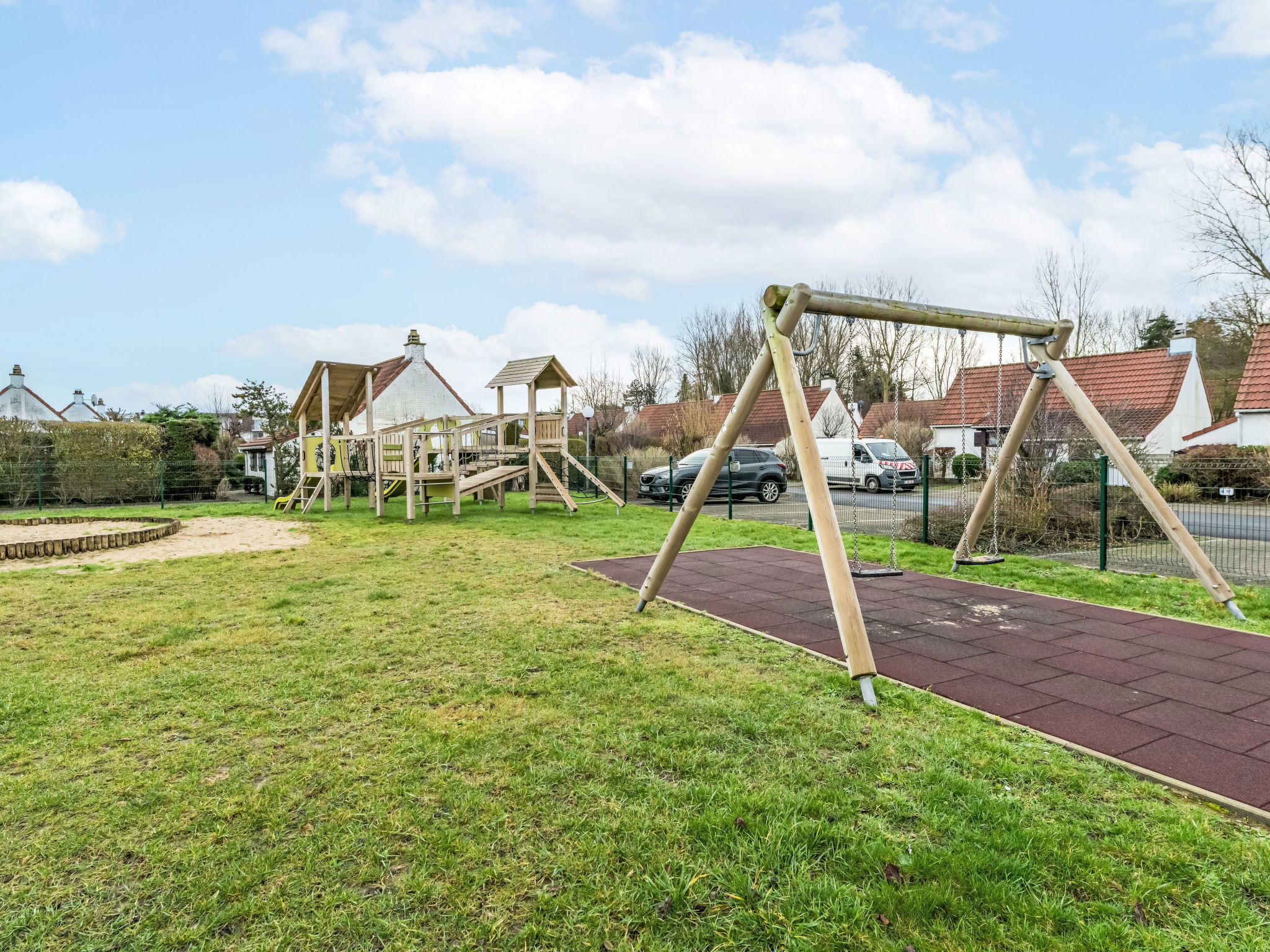 Bredene 7 km from Oostende: Child friendly holiday development "Zeebos". On the outskirts, 650 m from the sea, 650 m from the beach. For shared use: swimming pool (seasonal availability: 01.Jul. and 31.Aug.). Children's playground. Private: garden (fenced). In the house: reception, restaurant, bistro. Parking at the house. Supermarket 2 km, restaurant 900 m, bicycle rental 7 km, tram "Bredene Hypodroom" 550 m, bus stop "De Lijn" 800 m. Nearby attractions: Museum Turkeyenhof 4 km, Boudewijn Seapark 30 km, Plopsaland De Panne 43 km, Brugge 24 km. The keys‘ handover takes place by the agency in Bredene. Group of youngsters not allowed.