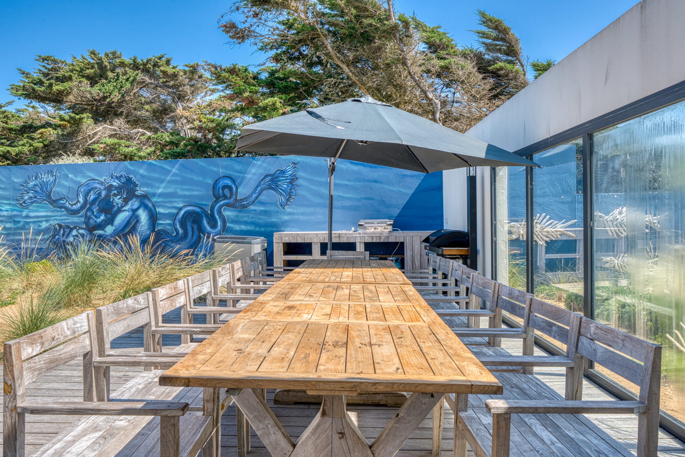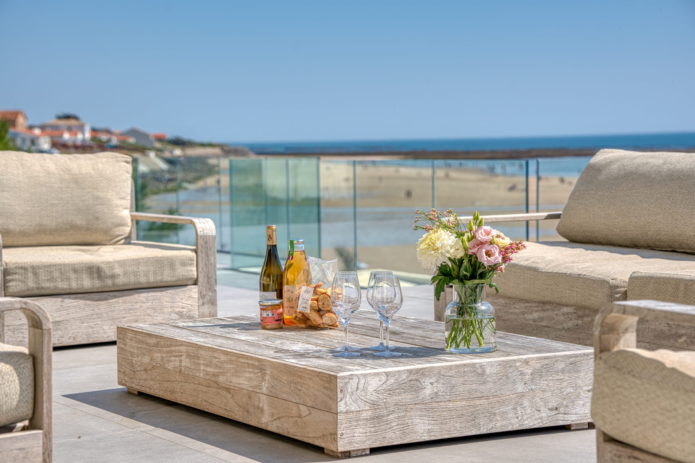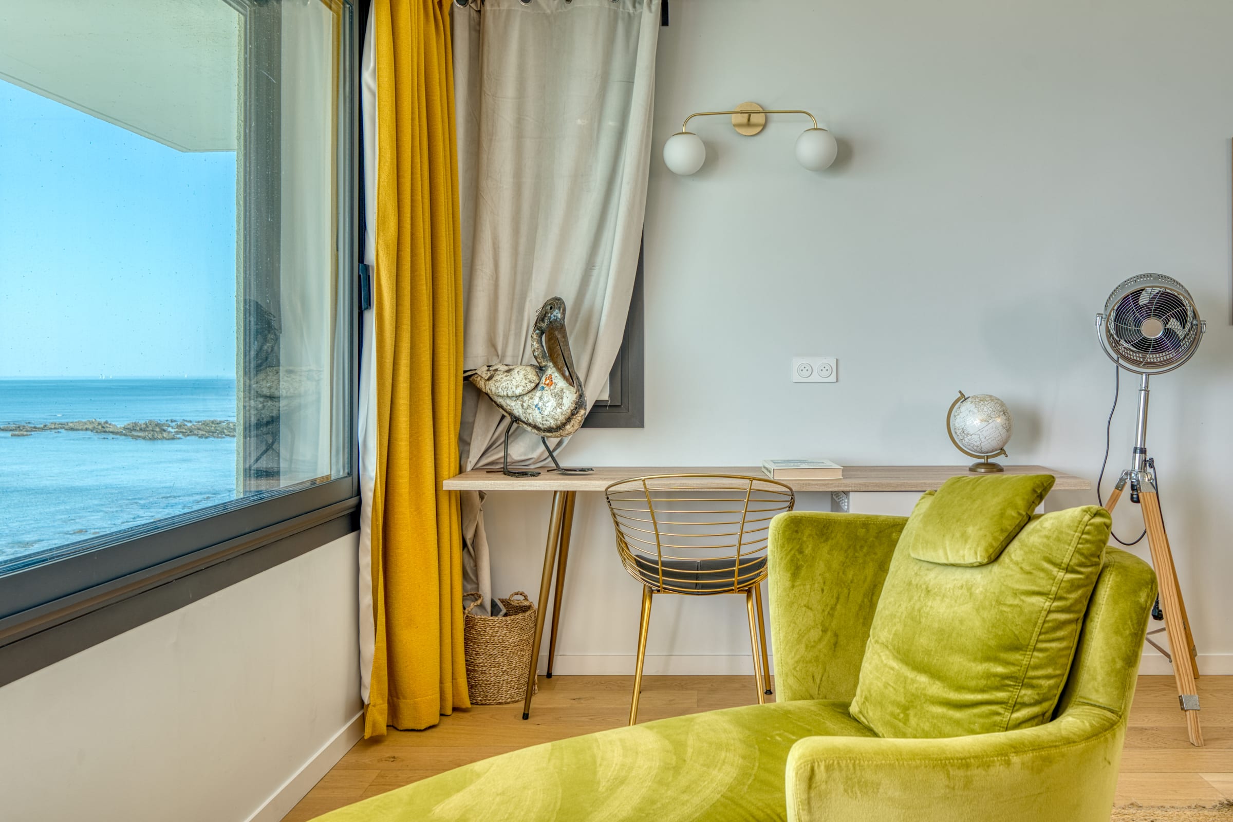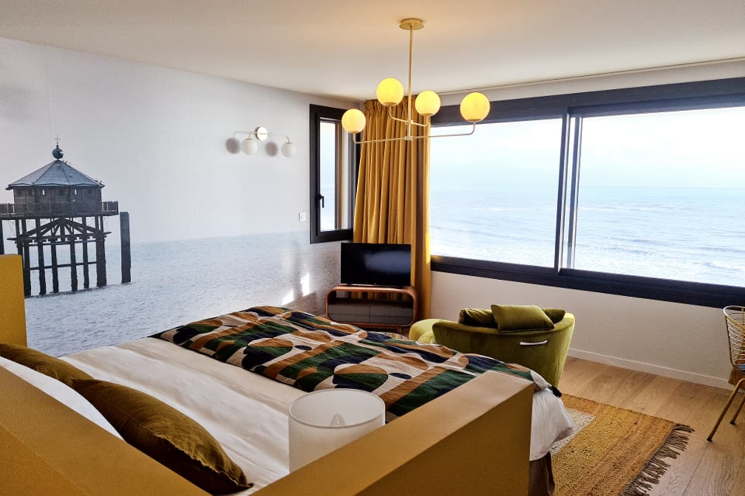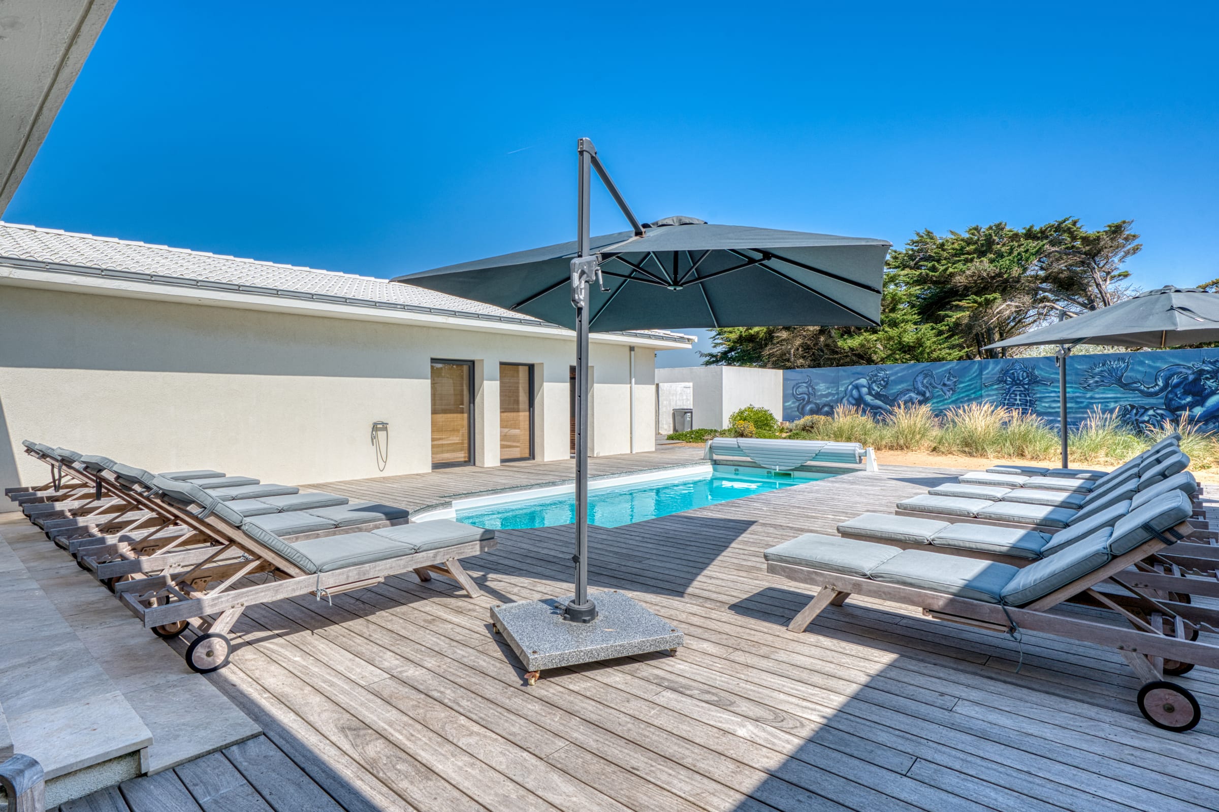 Located in Brétignolles-sur-Mer in Vendée and classified 5 stars, The Villa Océans is a family home from 1969 completely renovated and tastefully decorated by local artists. A large terrace with sea view at 180°, will allow you to enjoy an exceptional setting with incredible sunset. Real invitation to disconnection, it has an indoor wellness area with jacuzzi, sauna, shower-hammam and a heated outdoor pool (from may to september).