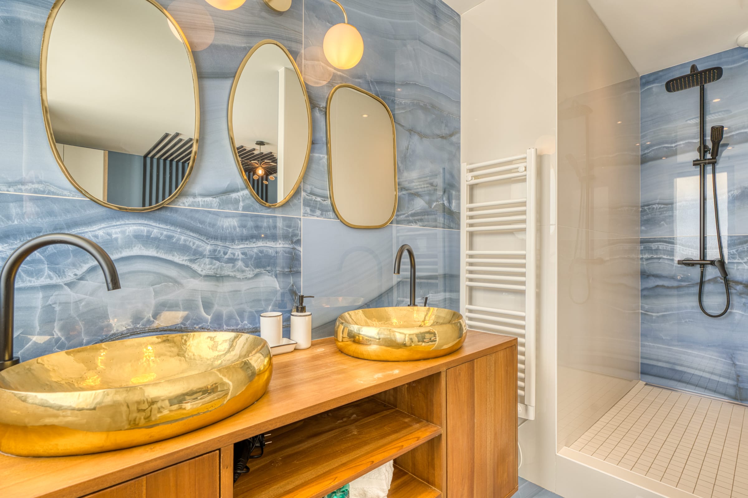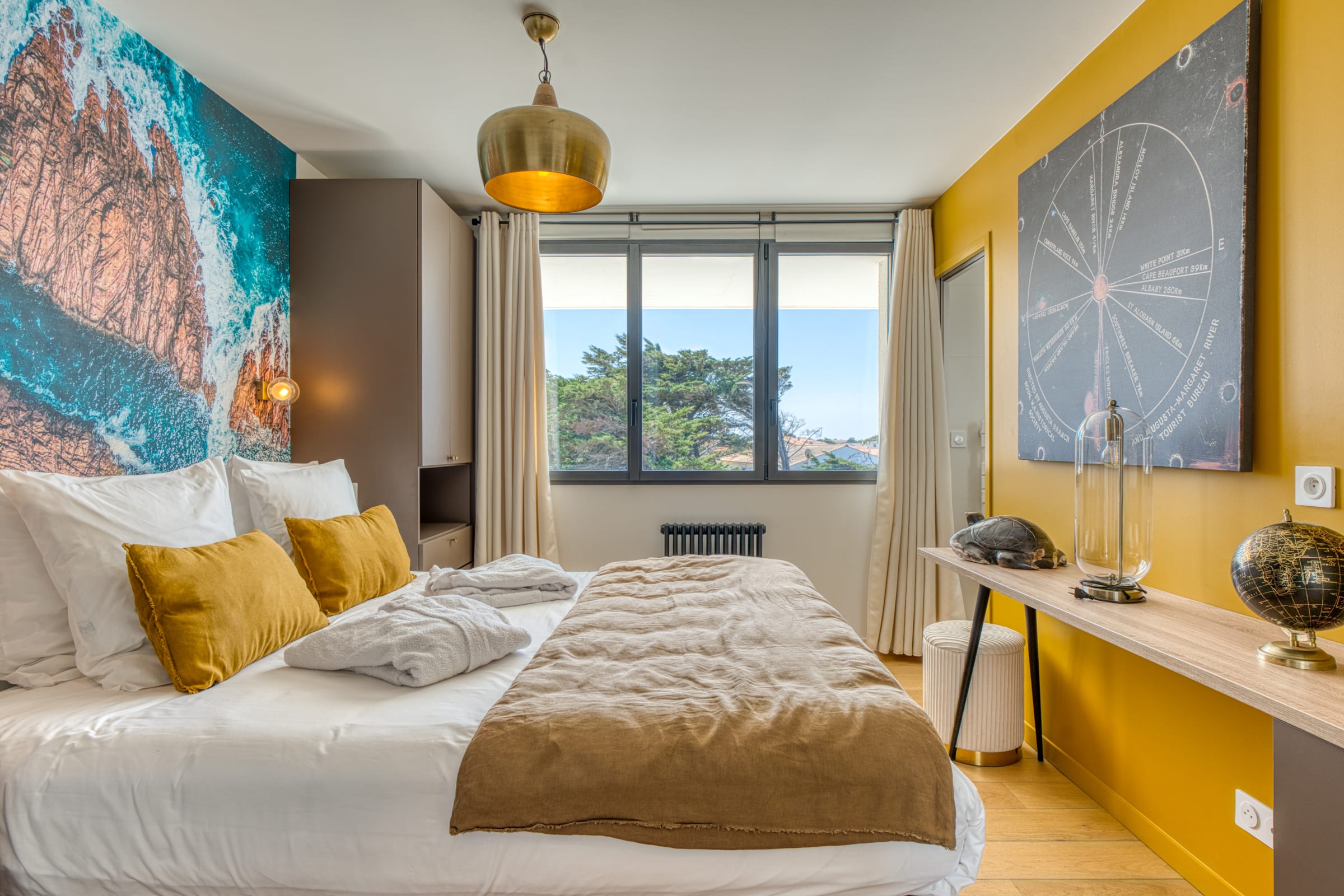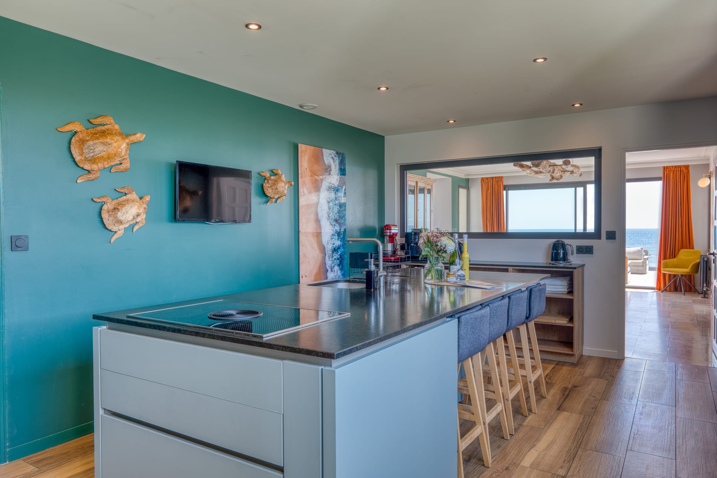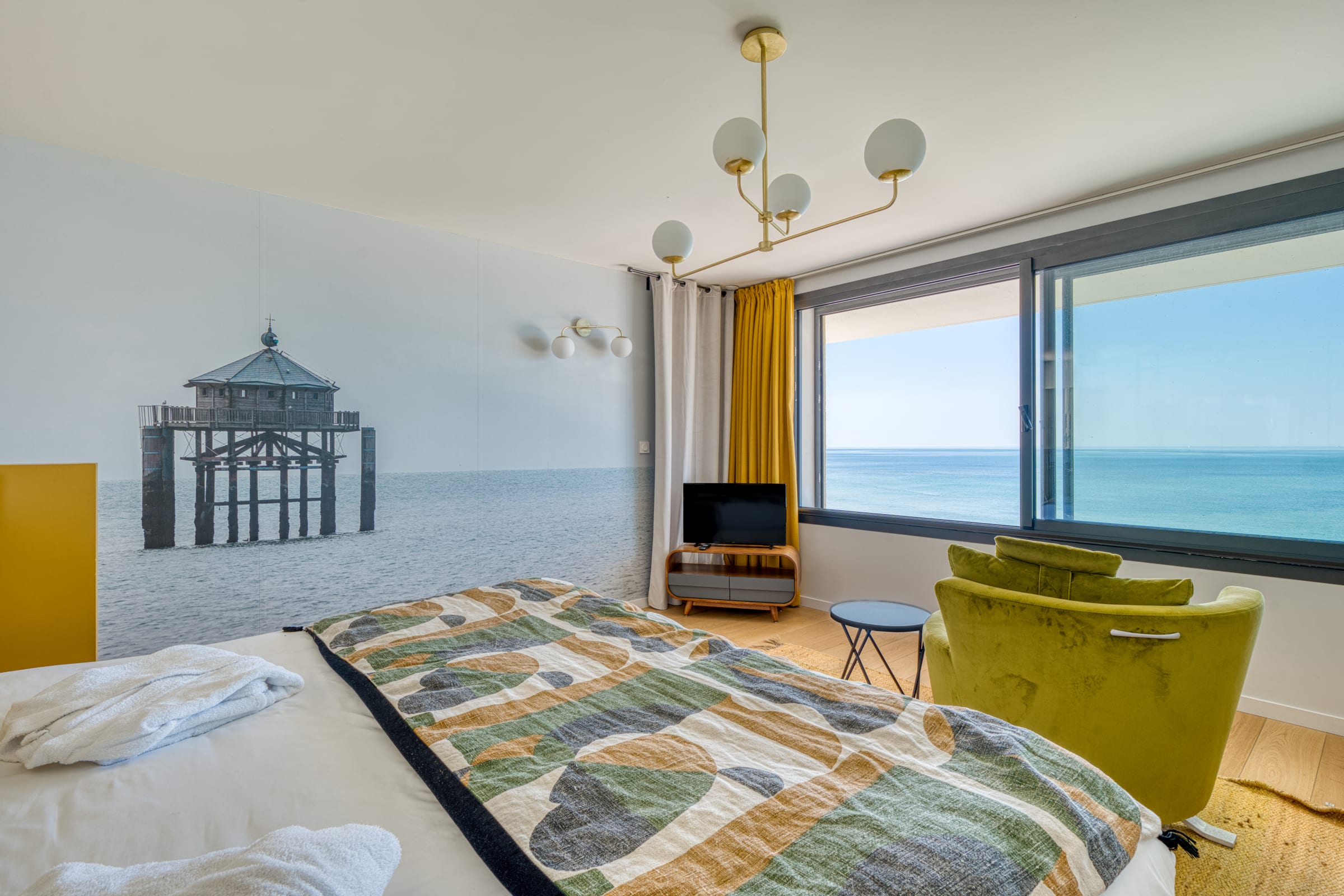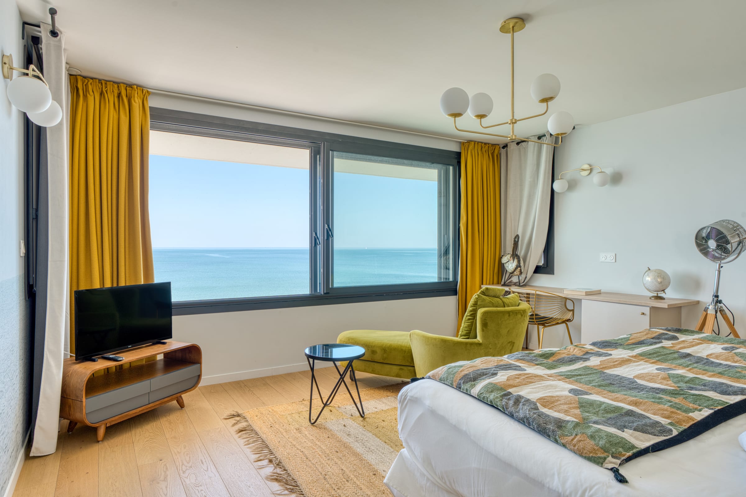 Located in Brétignolles-sur-Mer in Vendée and classified 5 stars, The Villa Océans is a family home from 1969 completely renovated and tastefully decorated by local artists. A large terrace with sea view at 180°, will allow you to enjoy an exceptional setting with incredible sunset. Real invitation to disconnection, it has an indoor wellness area with jacuzzi, sauna, shower-hammam and a heated outdoor pool (from may to september).