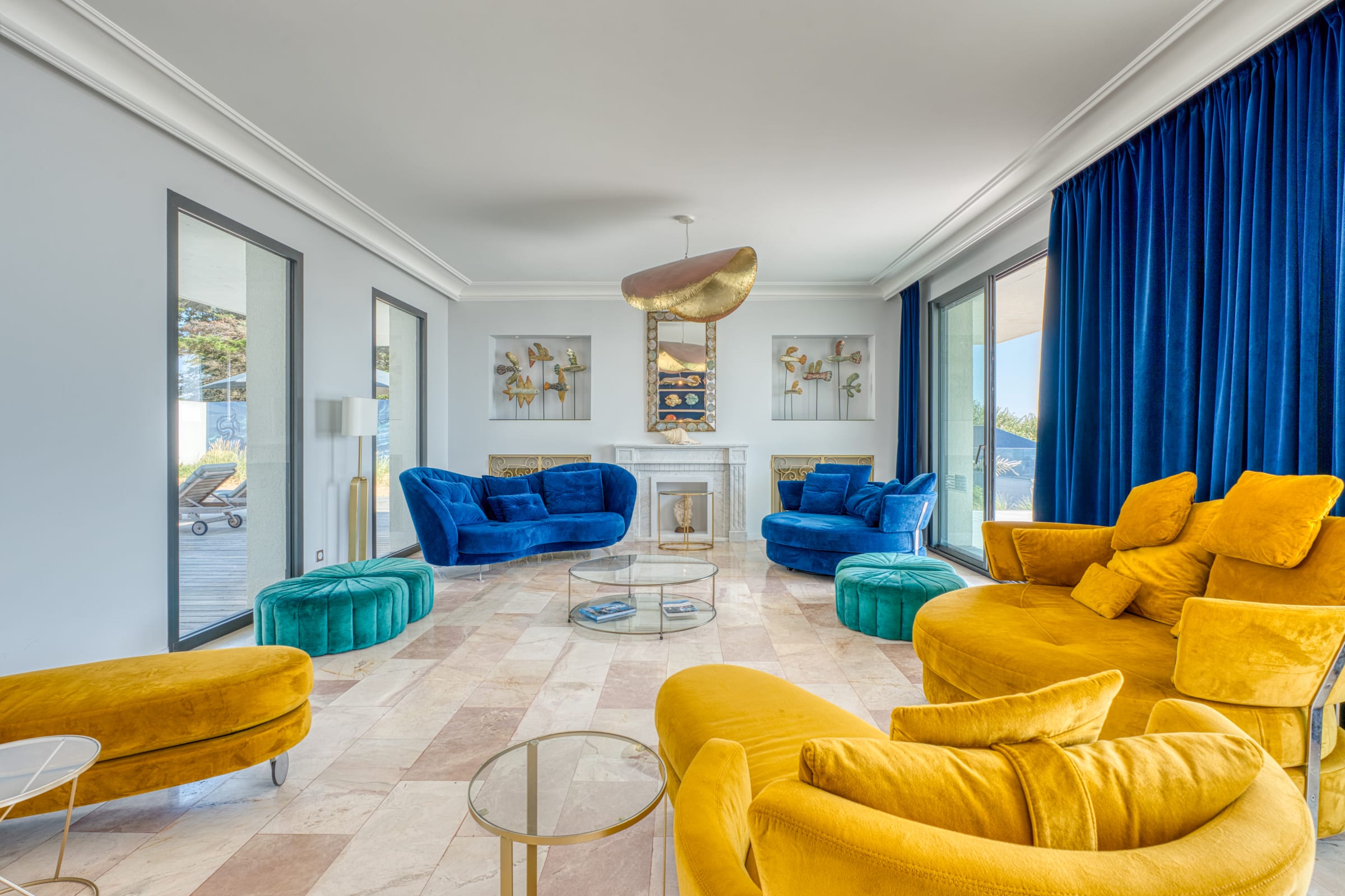 A large living room, a small living room and a dining room open on a large terrace with sea view. The villa has a fully equipped kitchen (ovens, fridge-freezer, dishwasher, microwave, coffee machine, Nespresso machine, toaster, kettle, microwave, ceramic hob, all necessary dishes, TVs, hairdryer, washing machine and tumble dryer, ironing board and iron).