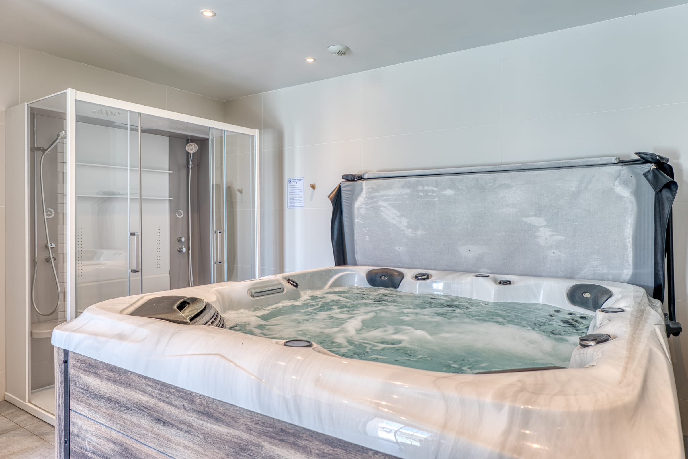 A room dedicated to well-being with sauna, spa and shower-hammam.