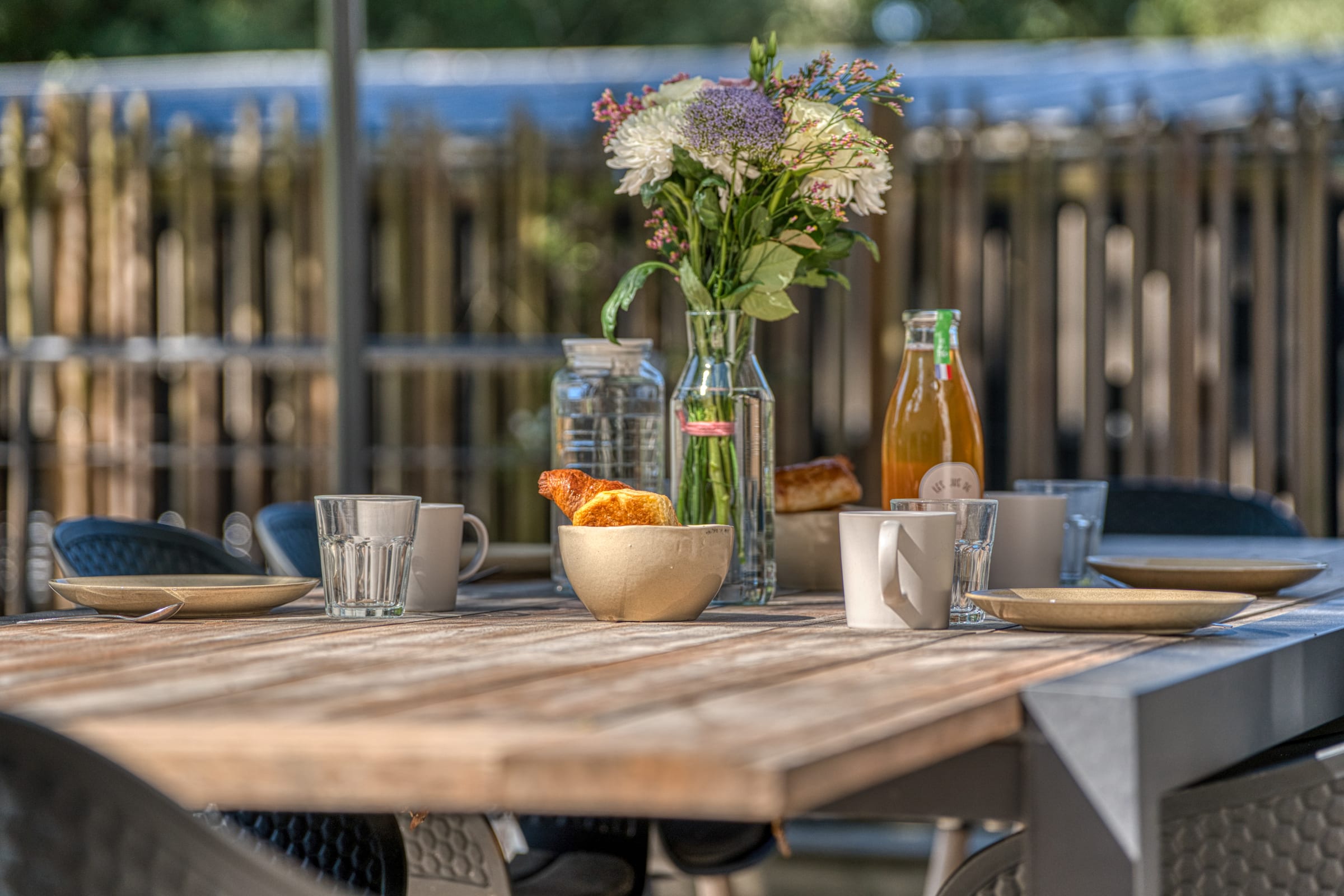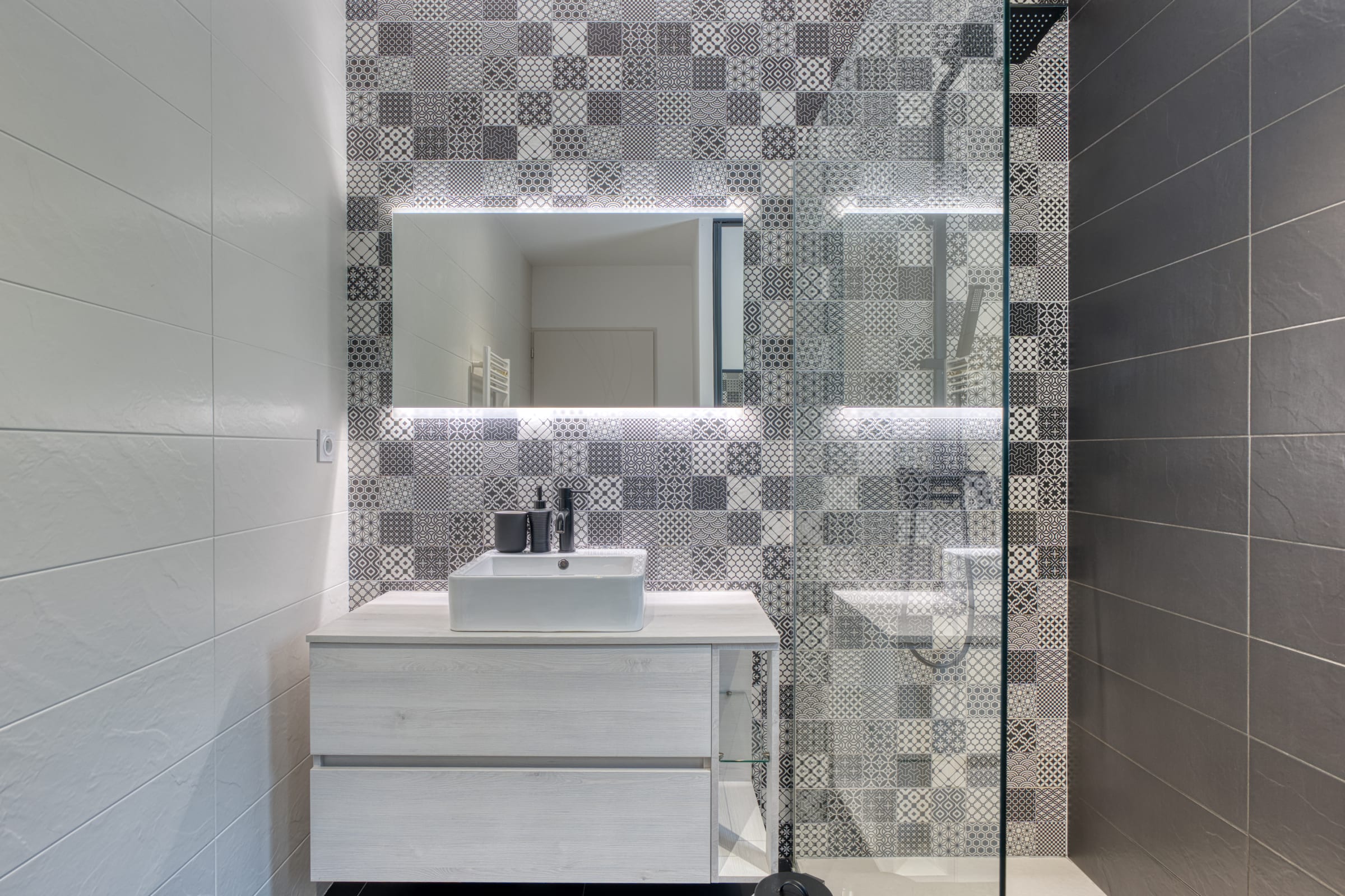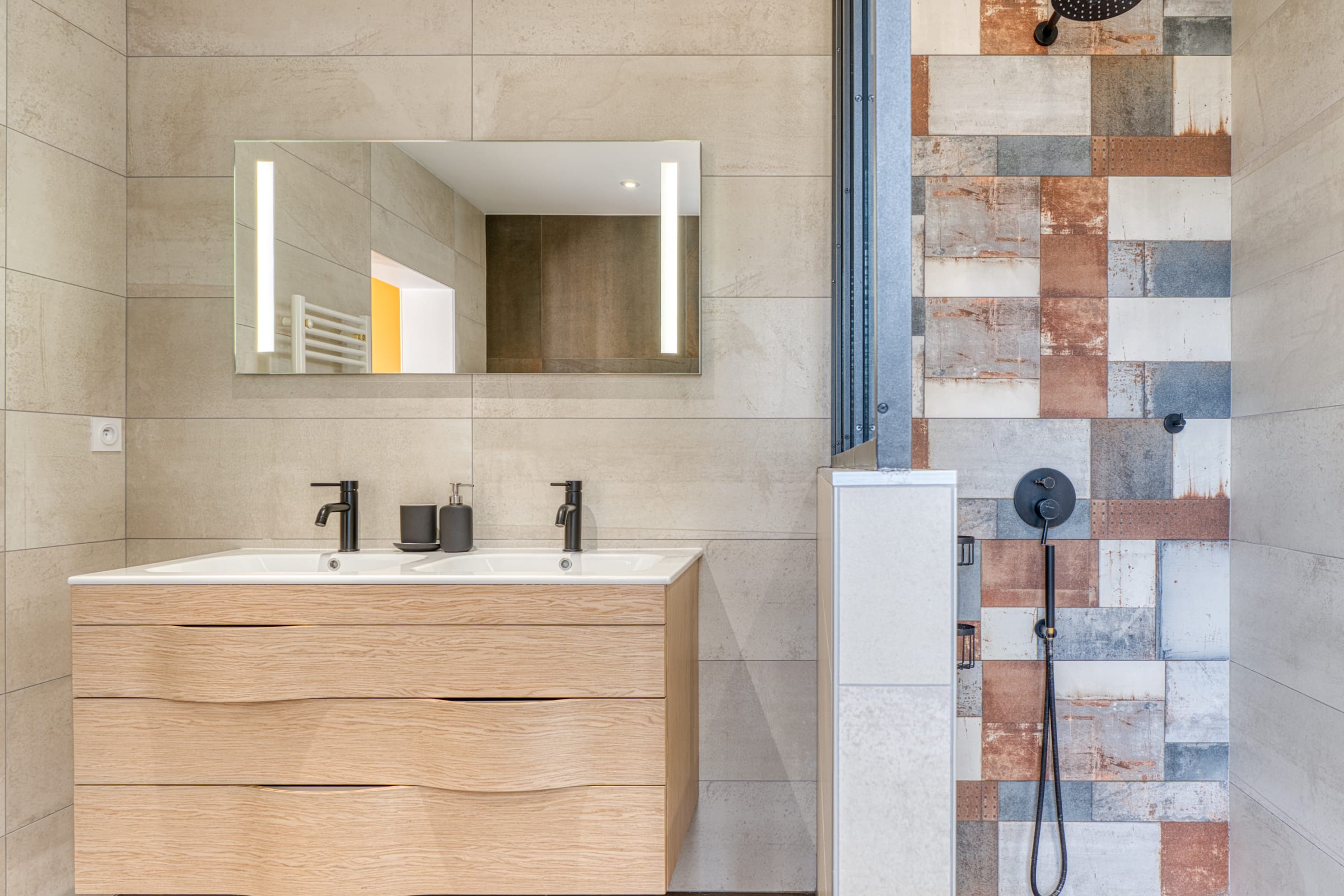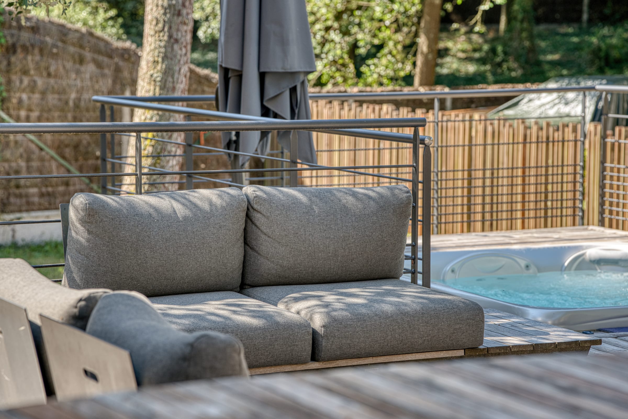 The exterior of the villa has been designed as a true cocoon of privacy, cut off from the world. The large terrace invites you to live outdoors: you will find a convivial dining area, an electric plancha for your summer barbecues, as well as a complete garden lounge with sun loungers. For absolute relaxation, a luxurious private outdoor spa (hot tub) awaits you for long moments of relaxation under the pines.