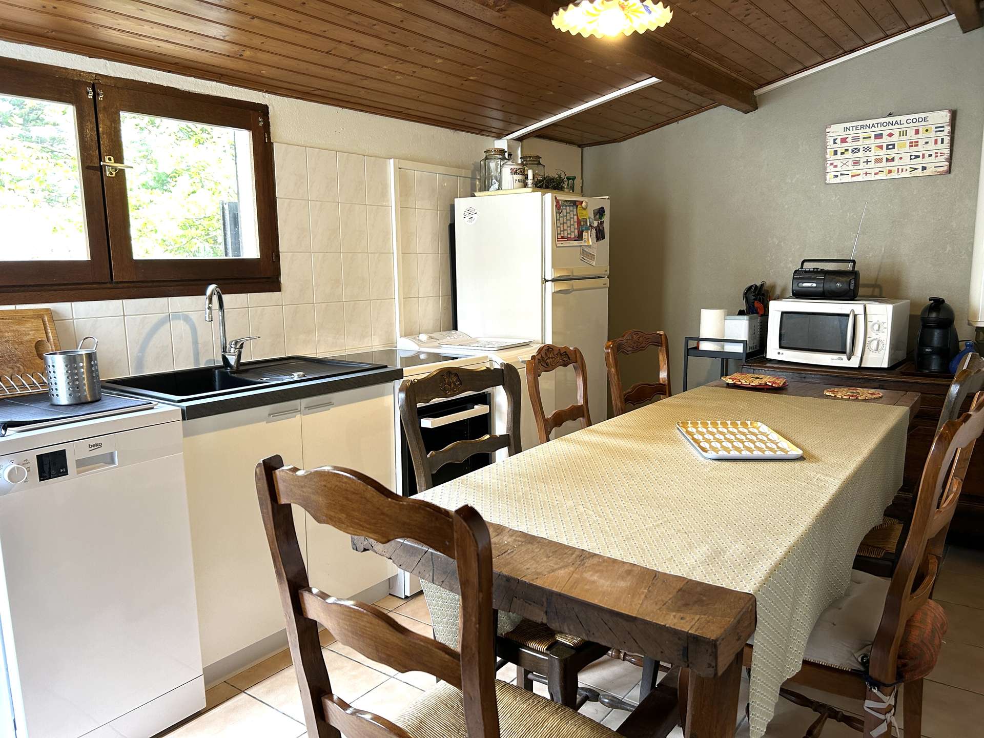 A environ 1000m du centre de la station, cette maison de vacances de plain pied et sur un terrain clos comprend une cuisine équipée ( lave vaisselle, lave linge, refrigirateur/congélateur, micro-onde), un salon avec une télévision et accès wifi, deux chambres totalisant deux lits doubles (160), une salle d'eau, un wc,