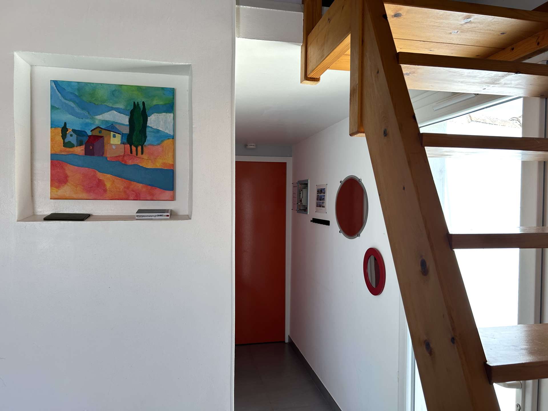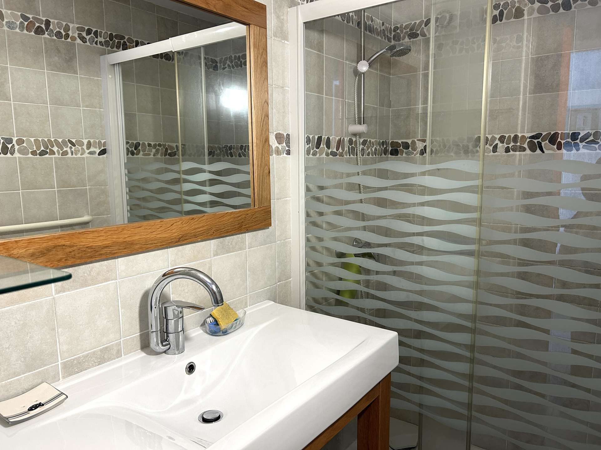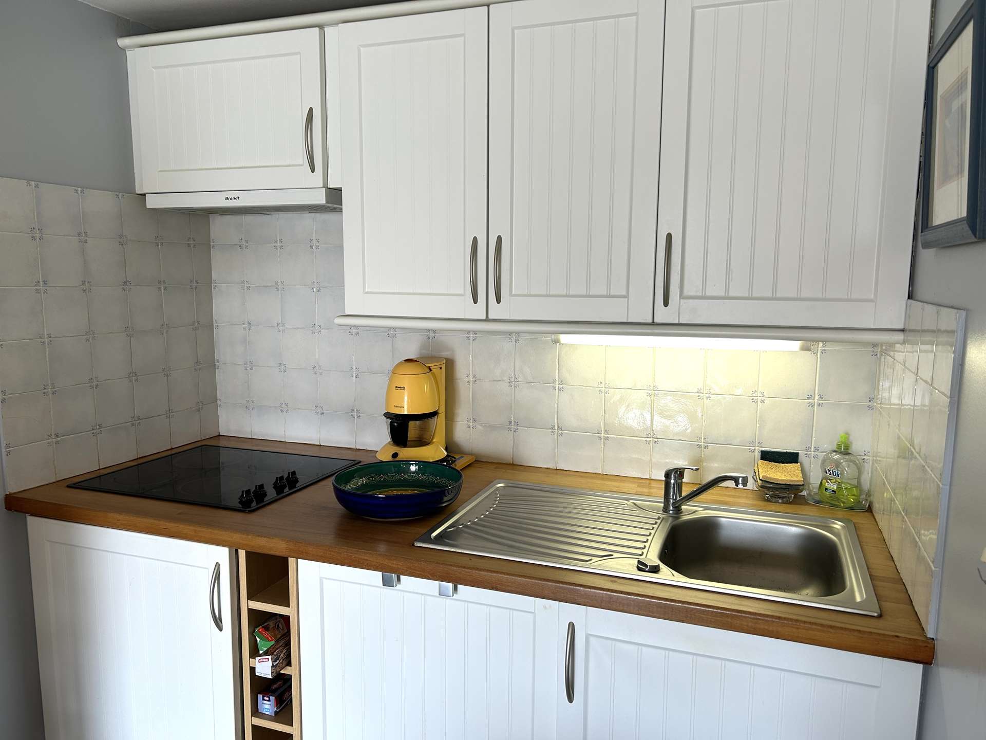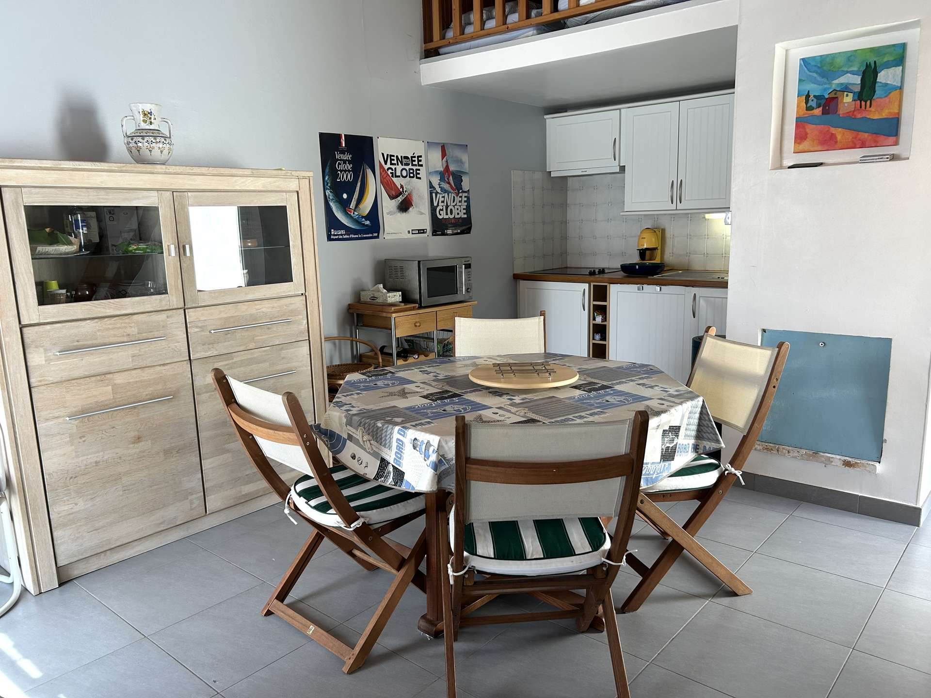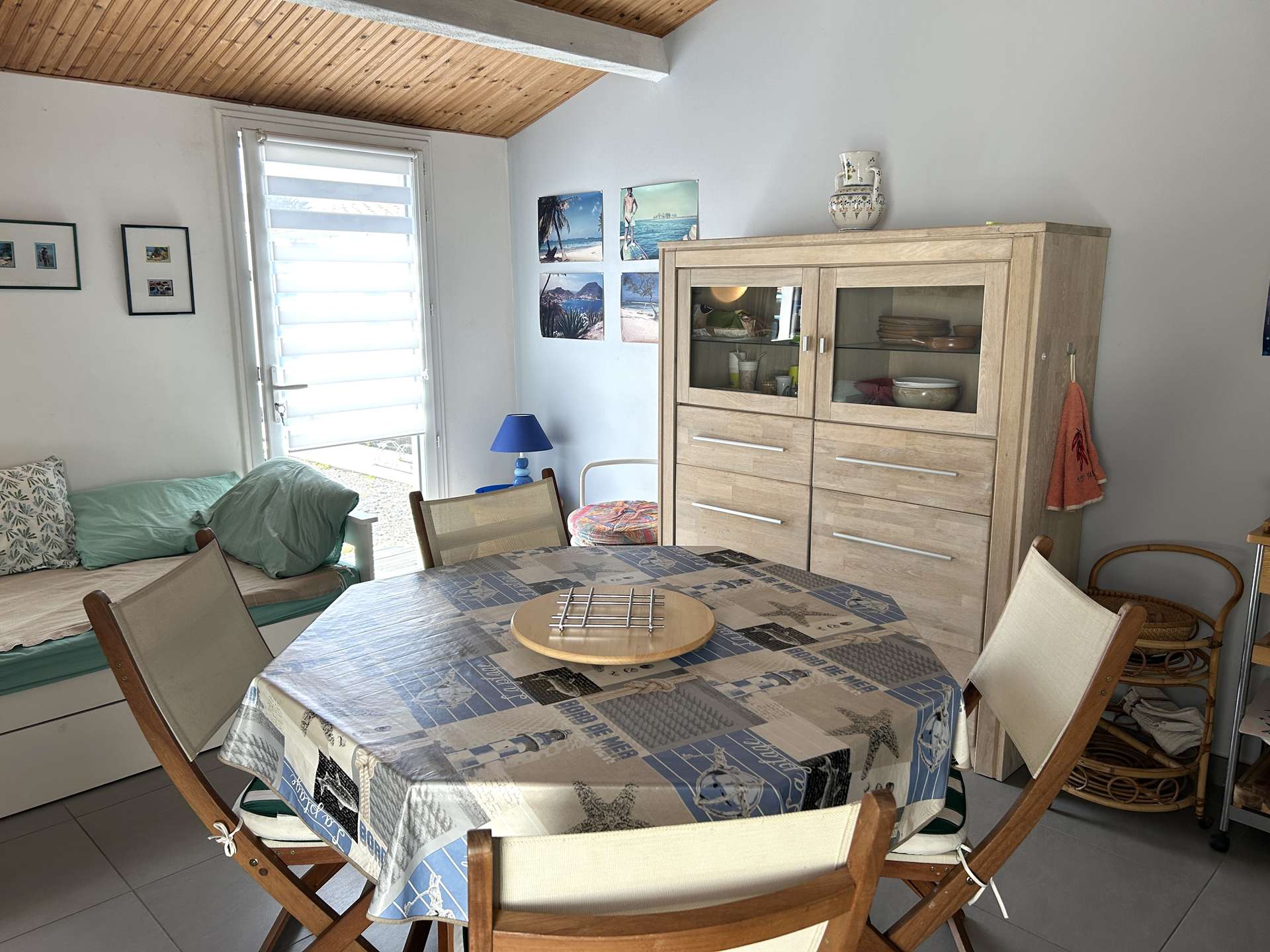 This holiday home includes an equipped kitchenette (dishwasher), a living room with television and sofa bed for two people, a bedroom with a double bed, a mezzanine (maximum height 1.40m with access via a miller's ladder) with two single beds, a shower room, a separate toilet.