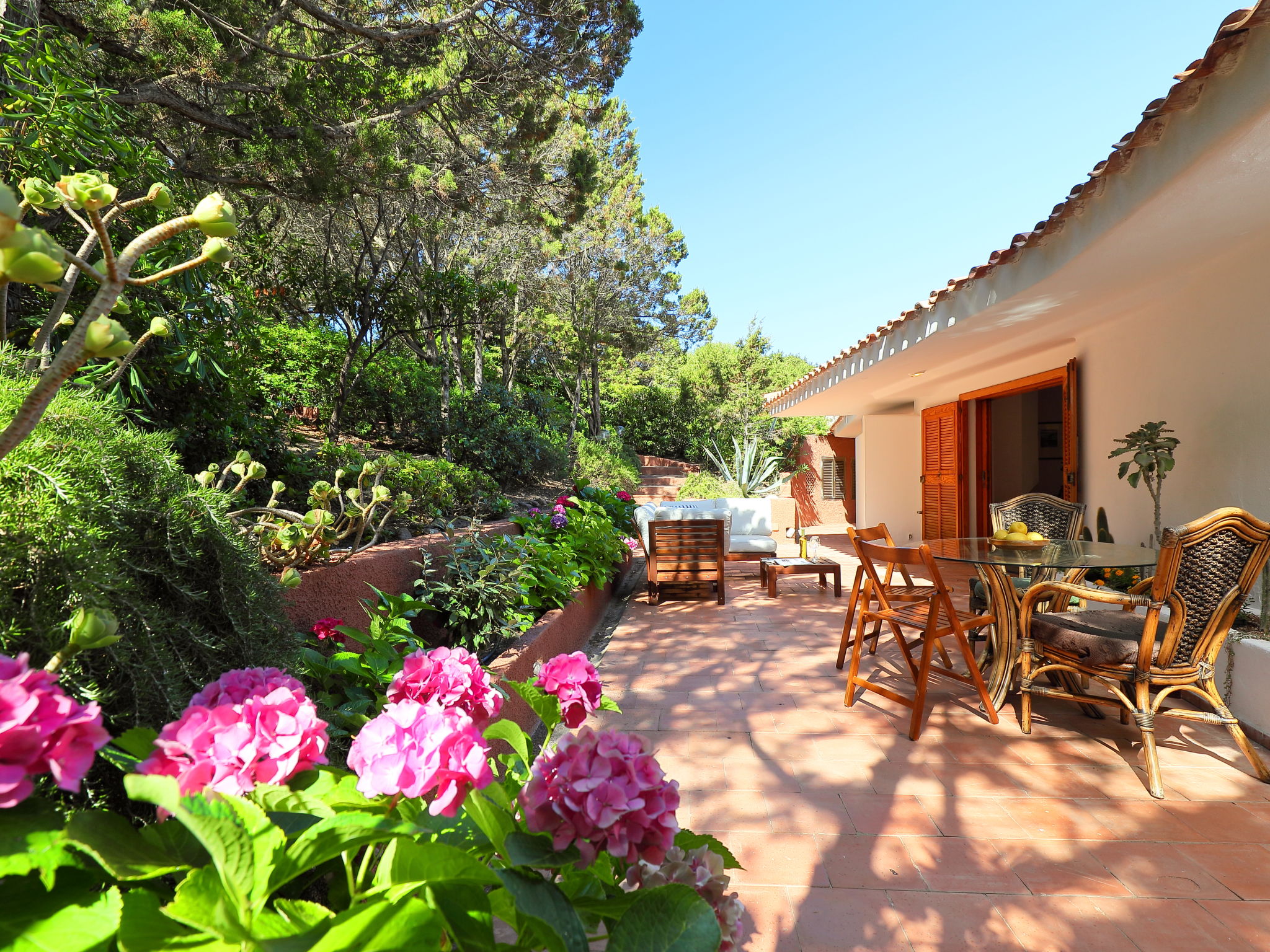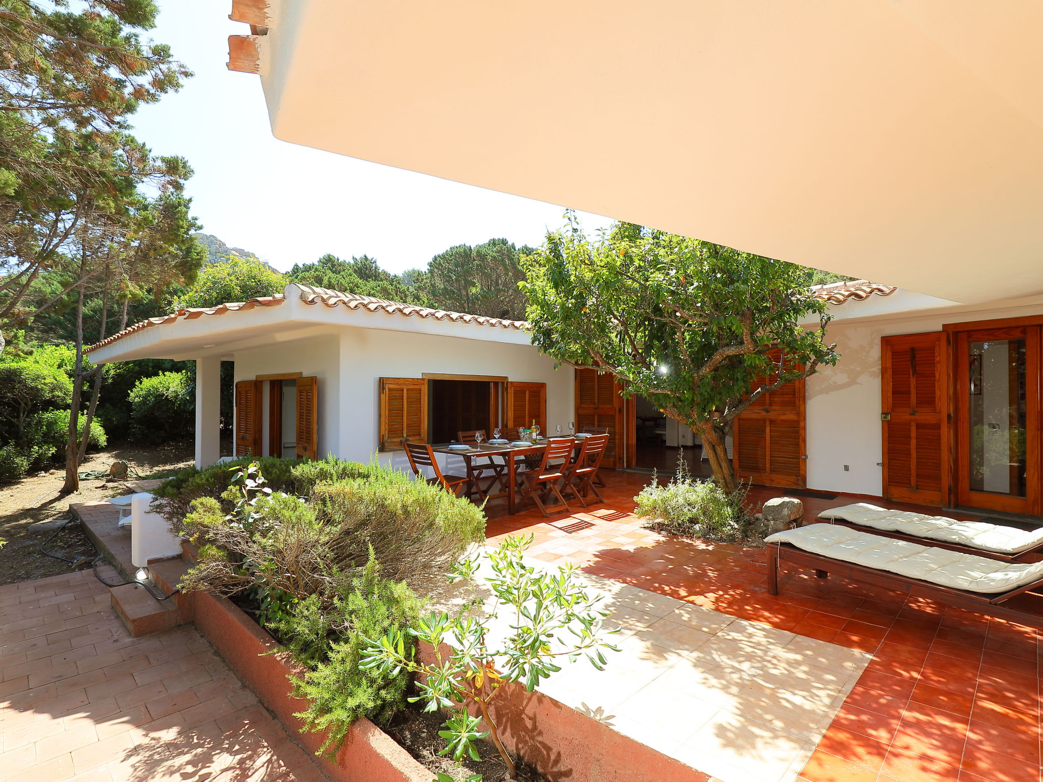 Large, comfortable house "Terre Rare". In the hamlet Portobello di Gallura 16 km from the centre of Aglientu, 7 km from the centre of Vignola, residential area (villas), traffic calmed area, 100 m from the sea. Motor access to 50 m from the house. Stepped path to the house. Supermarket, restaurant, bar 400 m, bus stop 7 km, sandy beach "Baia dell'amore" 200 m. Tennis 600 m. Nearby attractions: Santa Teresa di Gallura 25 km, Parco acquatico Acquafantasy 26 km. Please note: car recommended. Animals in the neighbourhood.