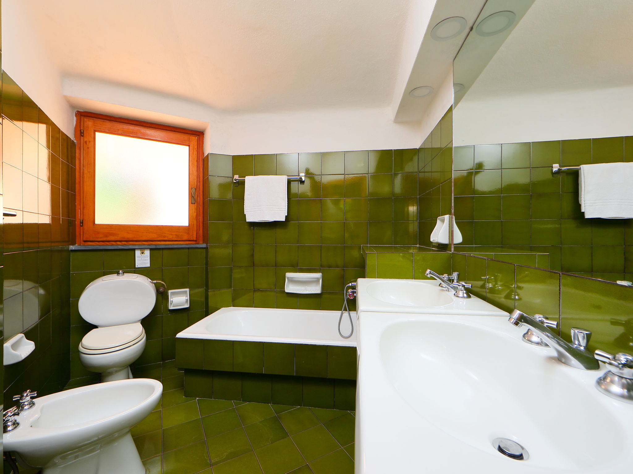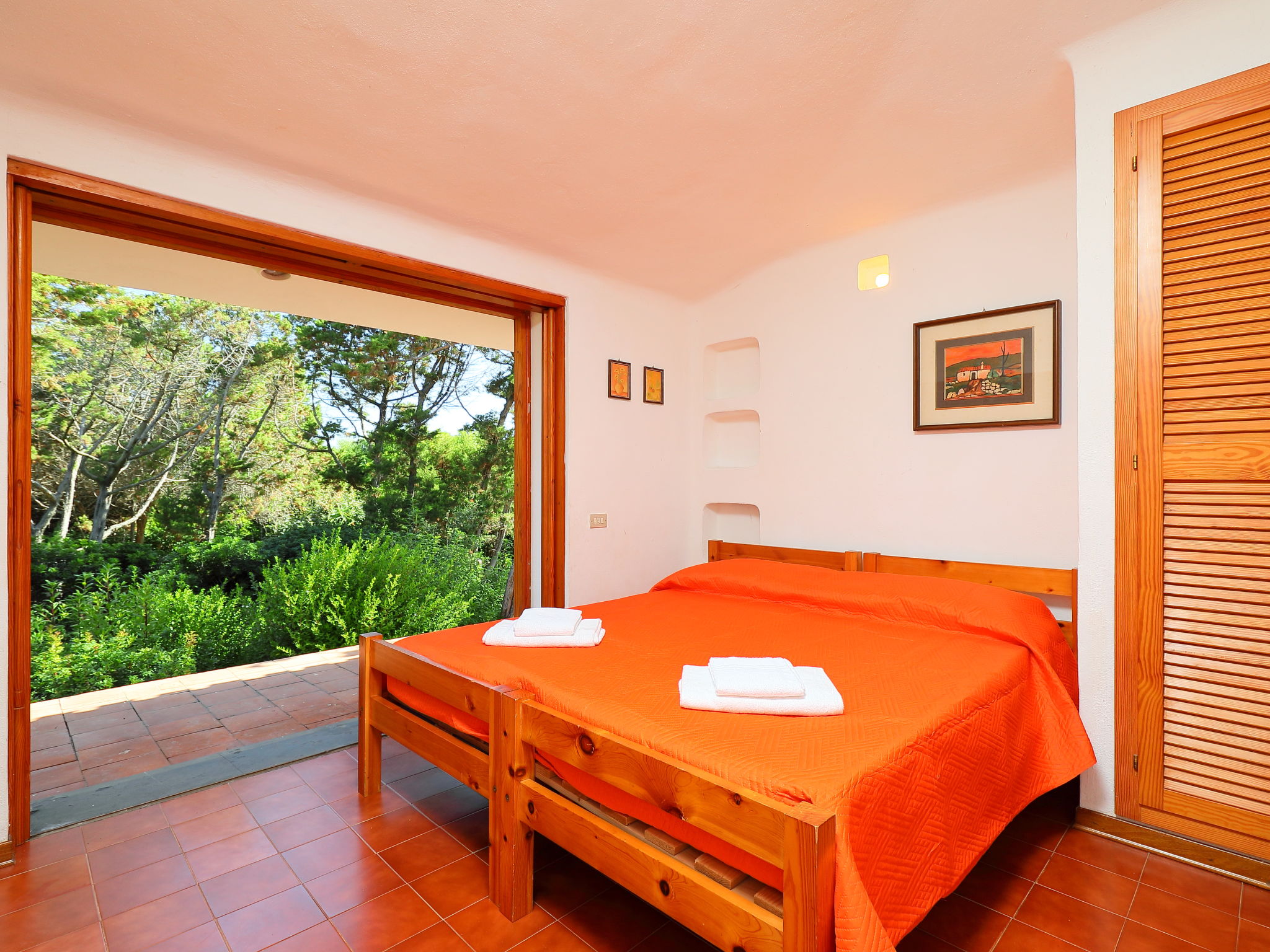 5-room house 160 m2, on the ground floor. Practical furnishings: large living/dining room with satellite TV. Exit to the patio. 2 double bedrooms. Exit to the garden. 2 rooms, each room with 1 x 2 bunk beds. Exit to the garden. Kitchen (4 hot plates, oven, dishwasher, freezer). Exit to the garden. 2 baths/bidet/WC, shower/bidet/WC. No heating option. Patio partly roofed, garden. Terrace furniture, barbecue. Facilities: washing machine, hair dryer. Internet (WiFi, free). Maximum 1 pet/ dog allowed. When there are less than the maximum number of guests staying at the property, not all of the bedrooms will be available for use. IT090062C2000Q2561