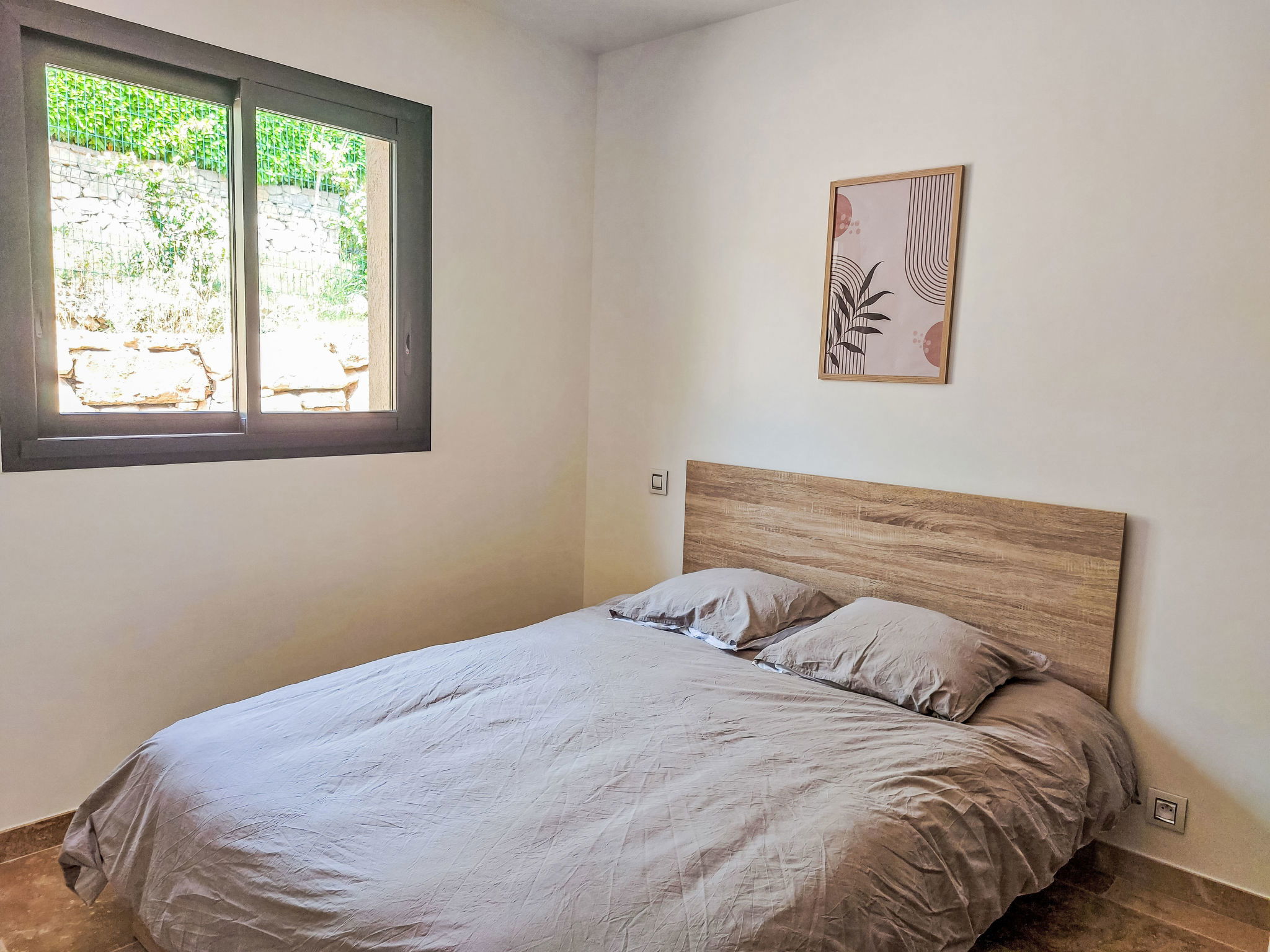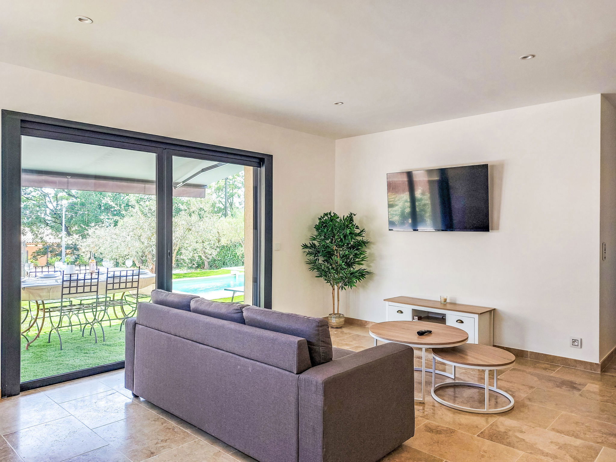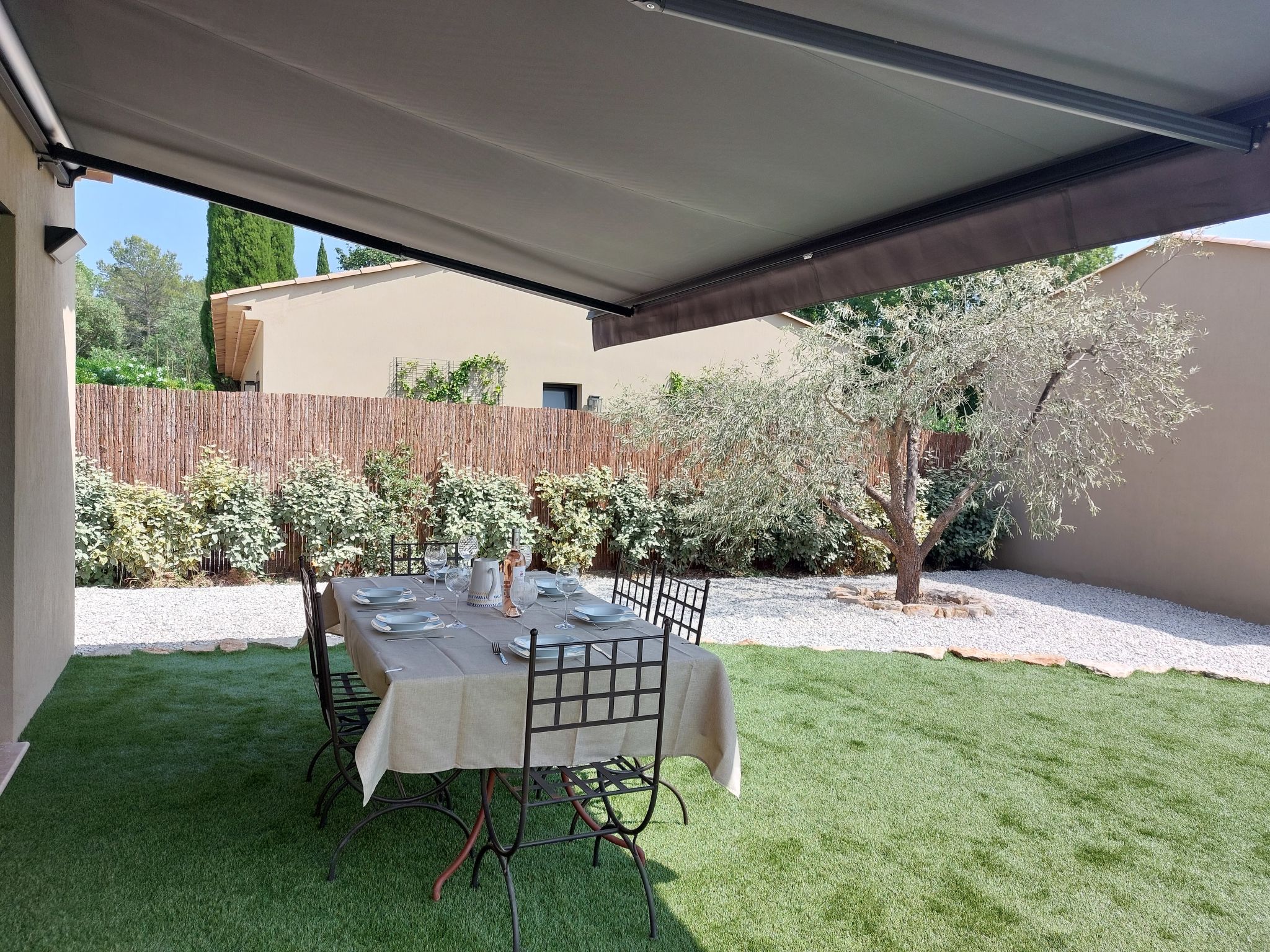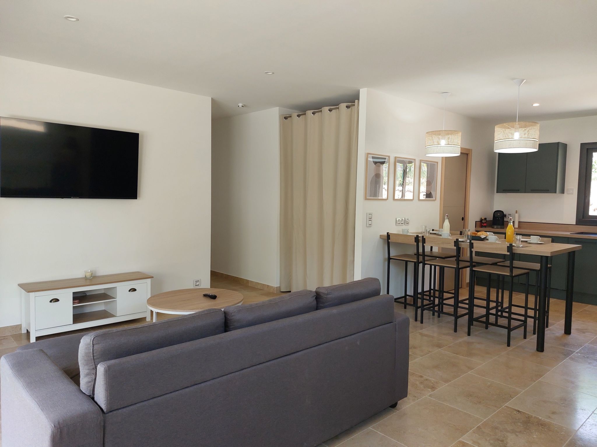 "Lou Pantaia", 4-room villa 95 m2. Comfortable and modern furnishings: living room with TV (flat screen). Exit to the garden. 1 room with 1 french bed (160 cm, length 200 cm), TV (flat screen). 1 room with 1 french bed (140 cm, length 190 cm), TV (flat screen). 1 room with 1 french bed (140 cm, length 190 cm). Open kitchen (oven, dishwasher, 4 induction hot plates, toaster, kettle, microwave, freezer, electric coffee machine, Capsules for coffee machine (Nespresso)) with dining table. Shower, sep. WC. Electric heating, air-conditioning. Barbecue, deck chairs (6). Facilities: washing machine, baby cot for up to 3 year olds. Internet (WiFi, free). Please note: non-smoking house. Maximum 1 pet/ dog allowed. Smoke alarm. Offer by a private individual according to Art. 155, IV of CGI.