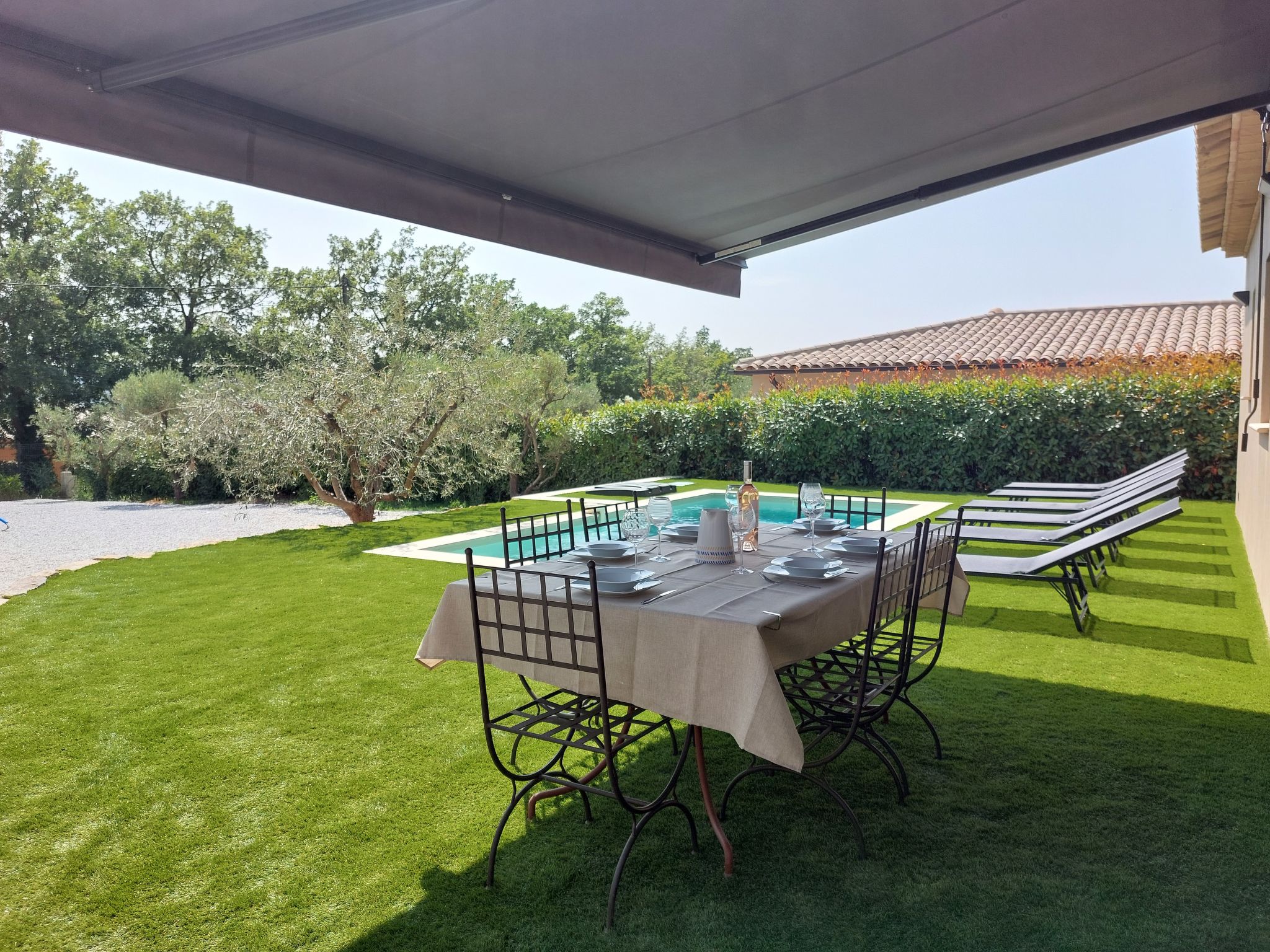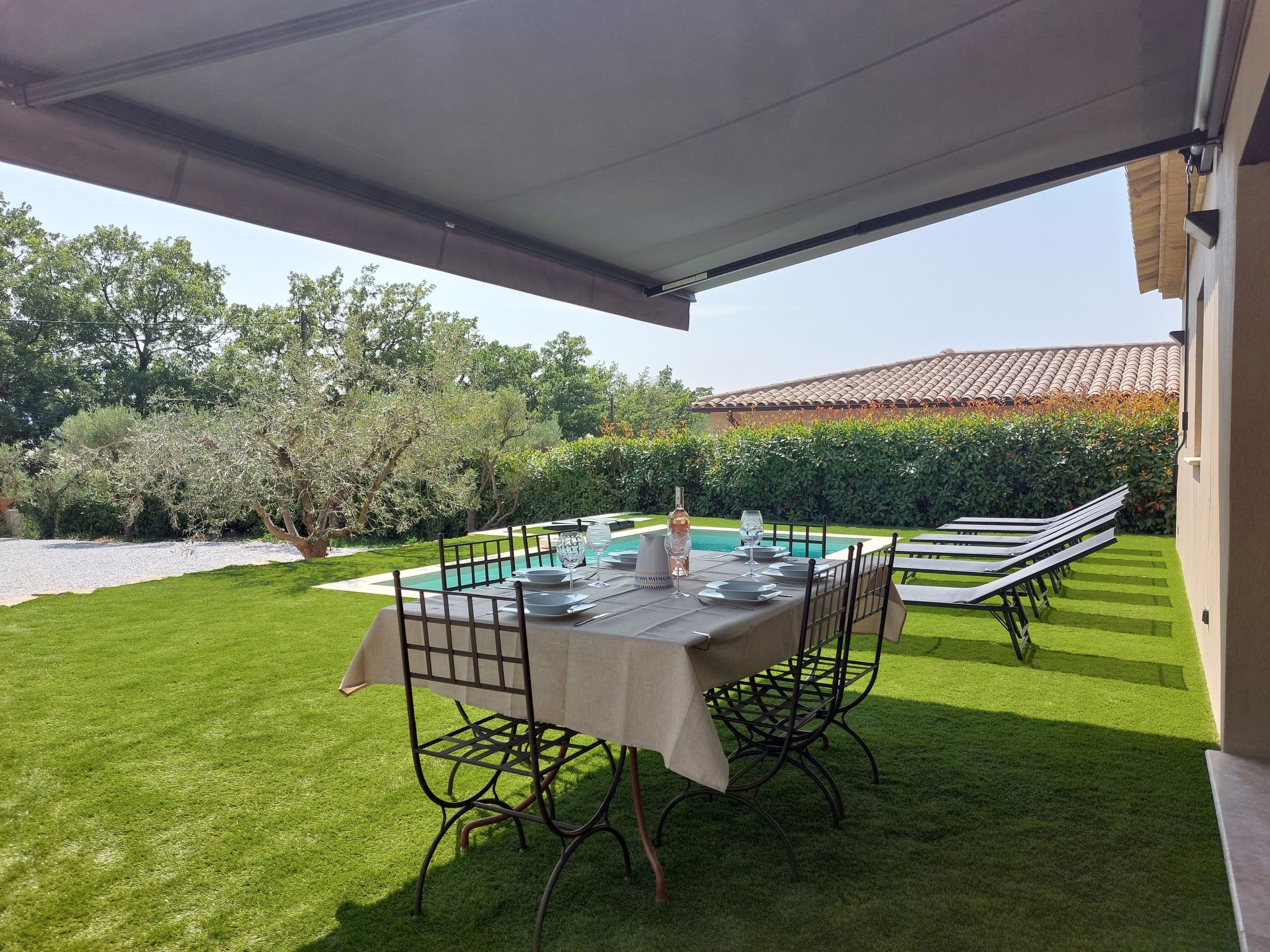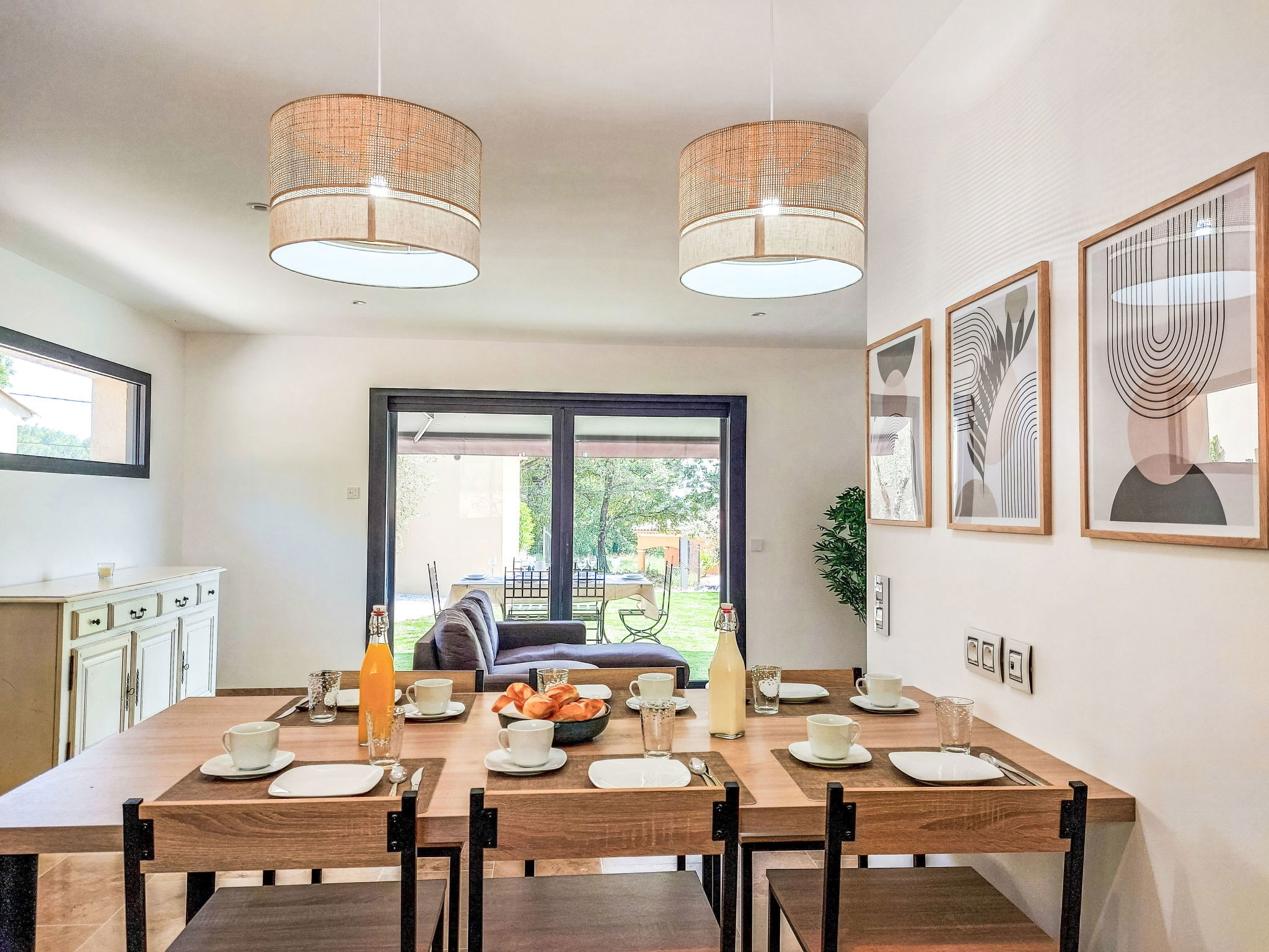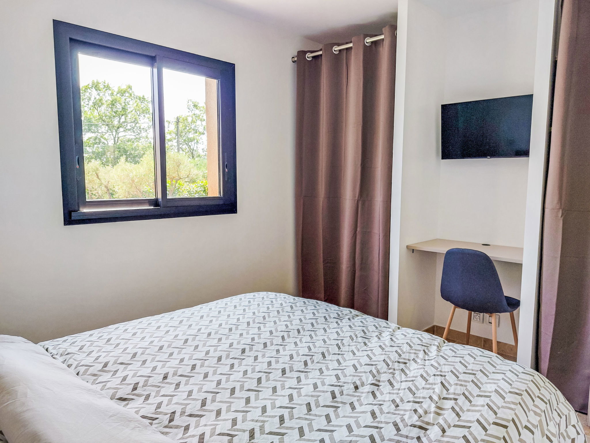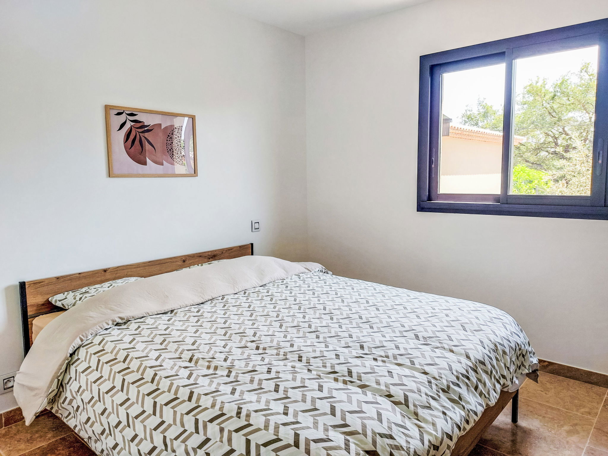 "Lou Pantaia", 4-room villa 95 m2. Comfortable and modern furnishings: living room with TV (flat screen). Exit to the garden. 1 room with 1 french bed (160 cm, length 200 cm), TV (flat screen). 1 room with 1 french bed (140 cm, length 190 cm), TV (flat screen). 1 room with 1 french bed (140 cm, length 190 cm). Open kitchen (oven, dishwasher, 4 induction hot plates, toaster, kettle, microwave, freezer, electric coffee machine, Capsules for coffee machine (Nespresso)) with dining table. Shower, sep. WC. Electric heating, air-conditioning. Barbecue, deck chairs (6). Facilities: washing machine, baby cot for up to 3 year olds. Internet (WiFi, free). Please note: non-smoking house. Maximum 1 pet/ dog allowed. Smoke alarm. Offer by a private individual according to Art. 155, IV of CGI.