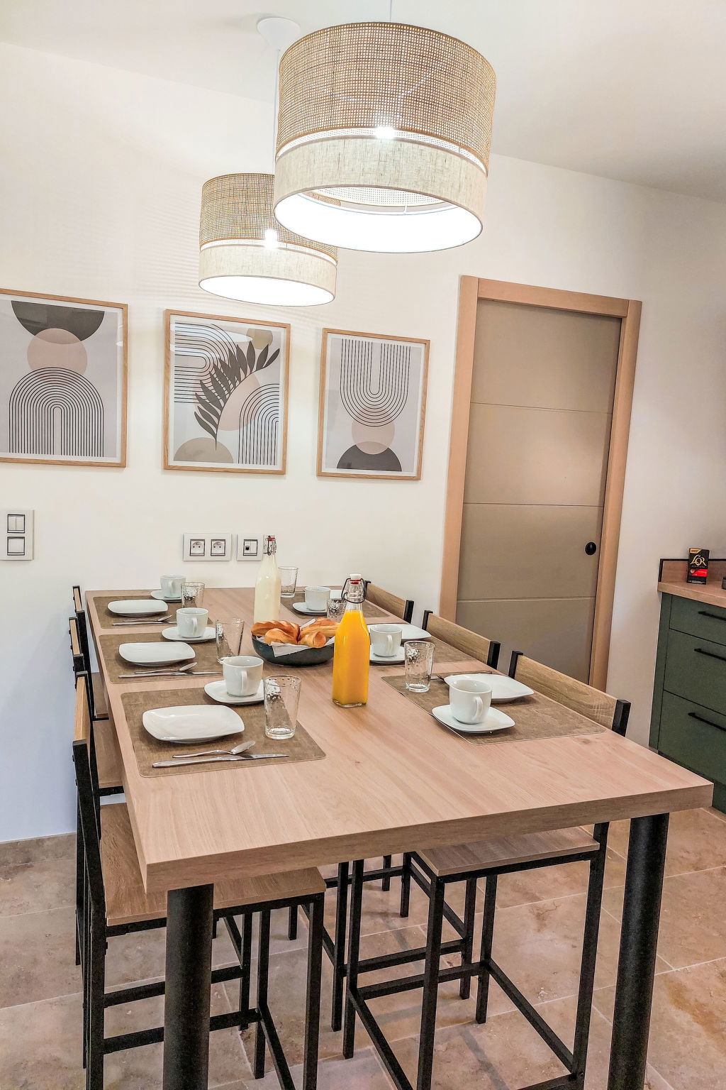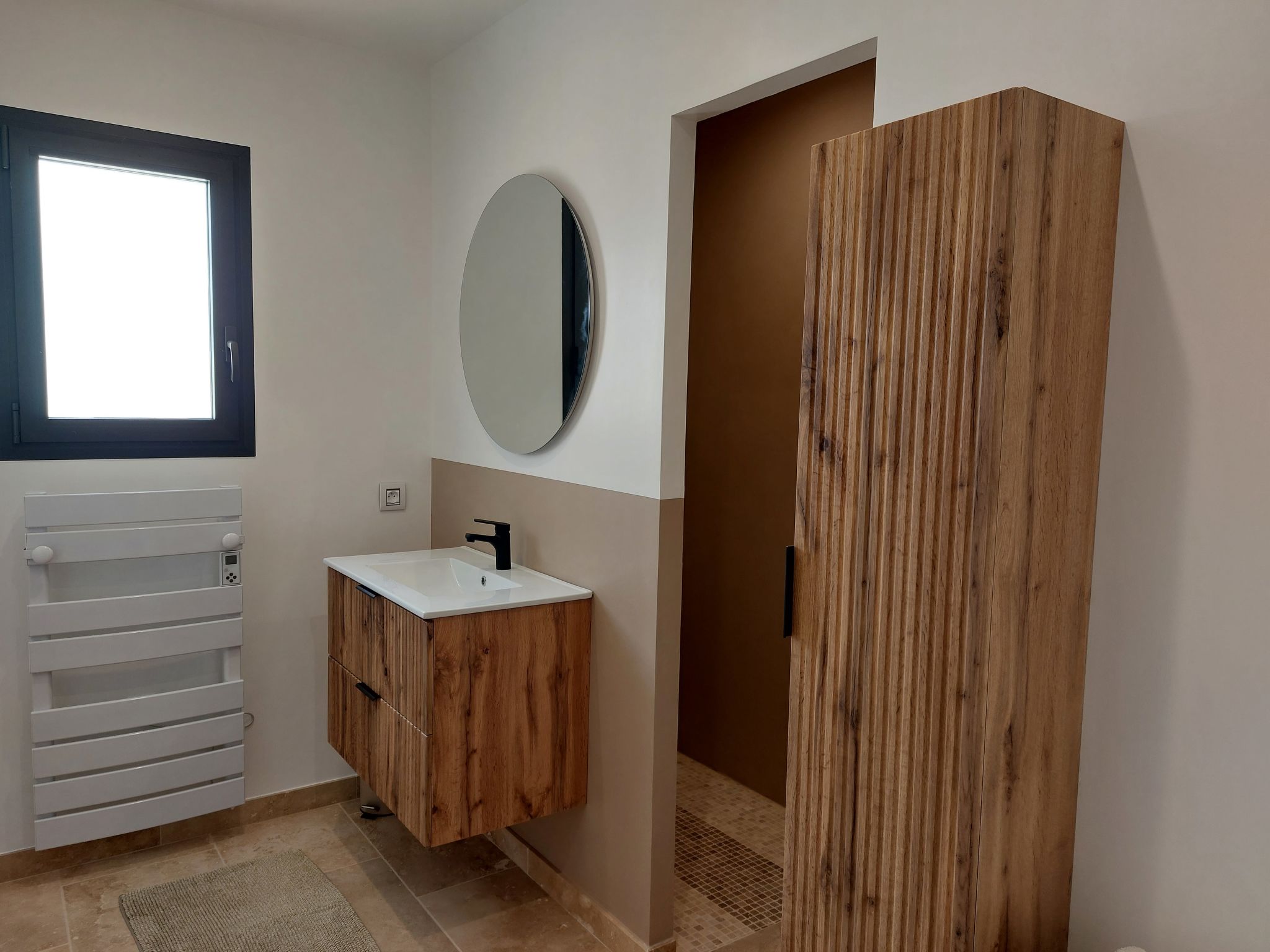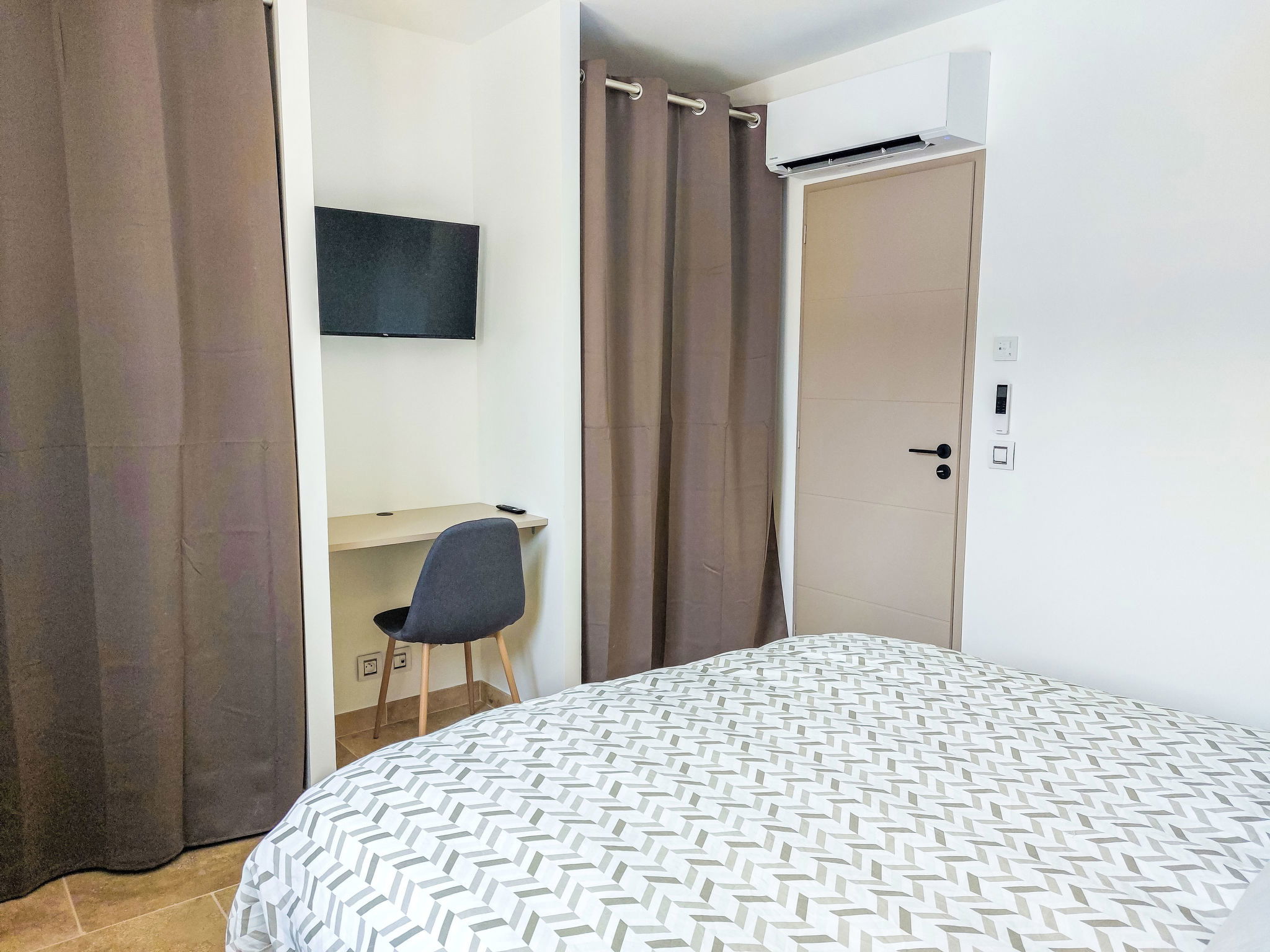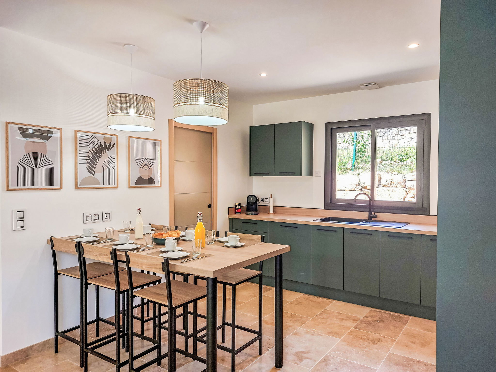 "Lou Pantaia", 4-room villa 95 m2. Comfortable and modern furnishings: living room with TV (flat screen). Exit to the garden. 1 room with 1 french bed (160 cm, length 200 cm), TV (flat screen). 1 room with 1 french bed (140 cm, length 190 cm), TV (flat screen). 1 room with 1 french bed (140 cm, length 190 cm). Open kitchen (oven, dishwasher, 4 induction hot plates, toaster, kettle, microwave, freezer, electric coffee machine, Capsules for coffee machine (Nespresso)) with dining table. Shower, sep. WC. Electric heating, air-conditioning. Barbecue, deck chairs (6). Facilities: washing machine, baby cot for up to 3 year olds. Internet (WiFi, free). Please note: non-smoking house. Maximum 1 pet/ dog allowed. Smoke alarm. Offer by a private individual according to Art. 155, IV of CGI.
