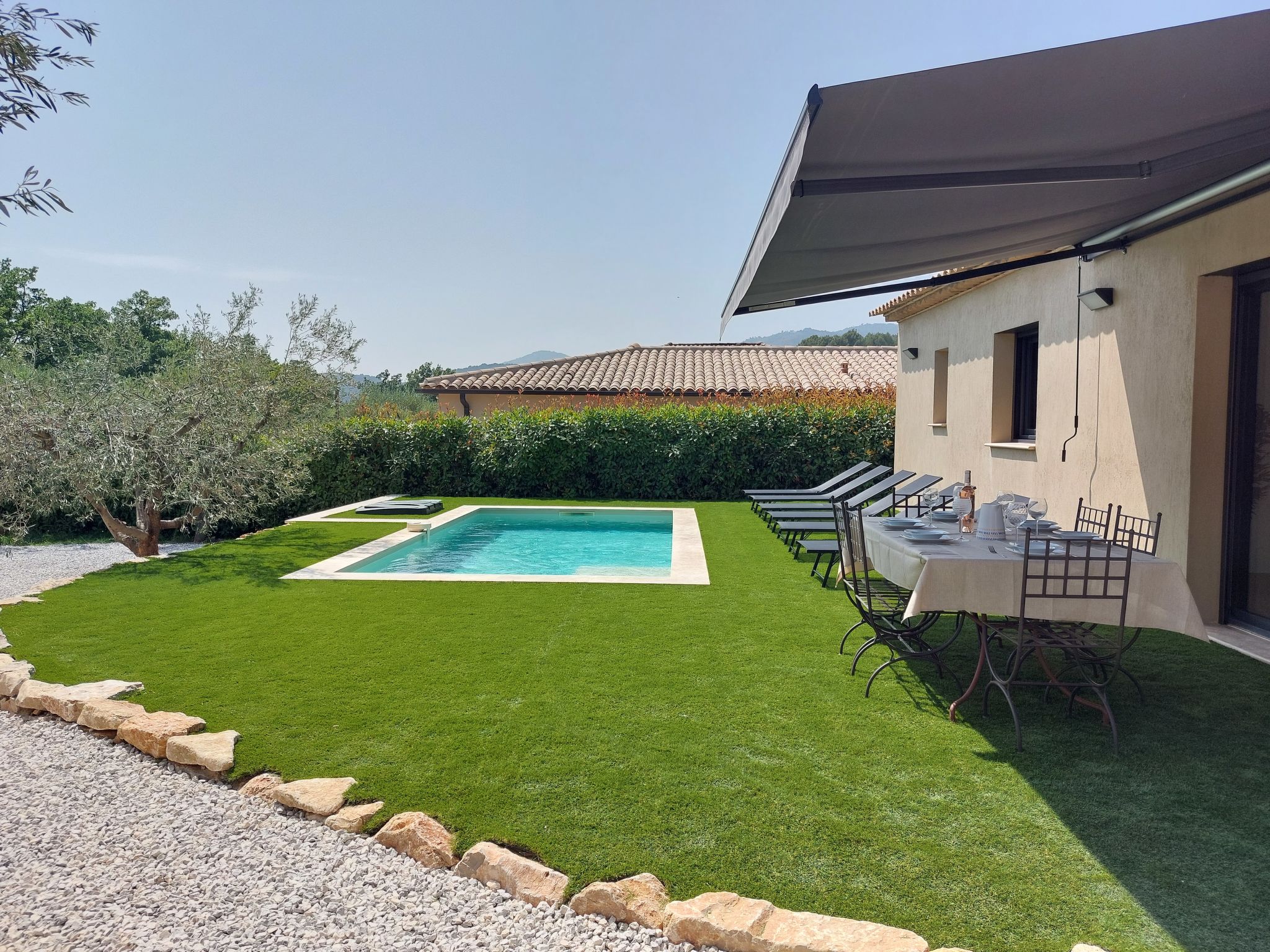 3 km from the centre of Callas, 12 km from the centre of Draguignan, 32 km from the centre of Fréjus, in the residential district, 32 km from the sea, 26 km from the lake. Private: property 800 m2 (fenced), swimming pool angular (6 x 3 m, depth 145 cm, seasonal availability: 01.Apr. - 30.Oct.) with alarm system. Parking (for 2 cars) on the premises. Grocery 3 km, supermarket 1400 km, restaurant 3 km, bar 3 km, bakery 3 km, café 3 km, bus stop 1.2 km, railway station "Les Arcs Draguignan" 23 km, sandy beach "Fréjus Plage" 32 km. Golf course (18 hole) 15 km, riding stable 3.2 km. Nearby attractions: Gorges du Verdon, Grottes de Villecroze, La cascade de Sillans, Cotignac, Tourtour, Abbaye du Thoronet. Well-known lakes can easily be reached: Lac de Sainte Croix 48 km, Lac de Saint Cassien 26 km. Hiking paths: Gorges de Pennafort, Gorges du Verdon, Gorges du Blavet. The owner does not accept any youth groups.