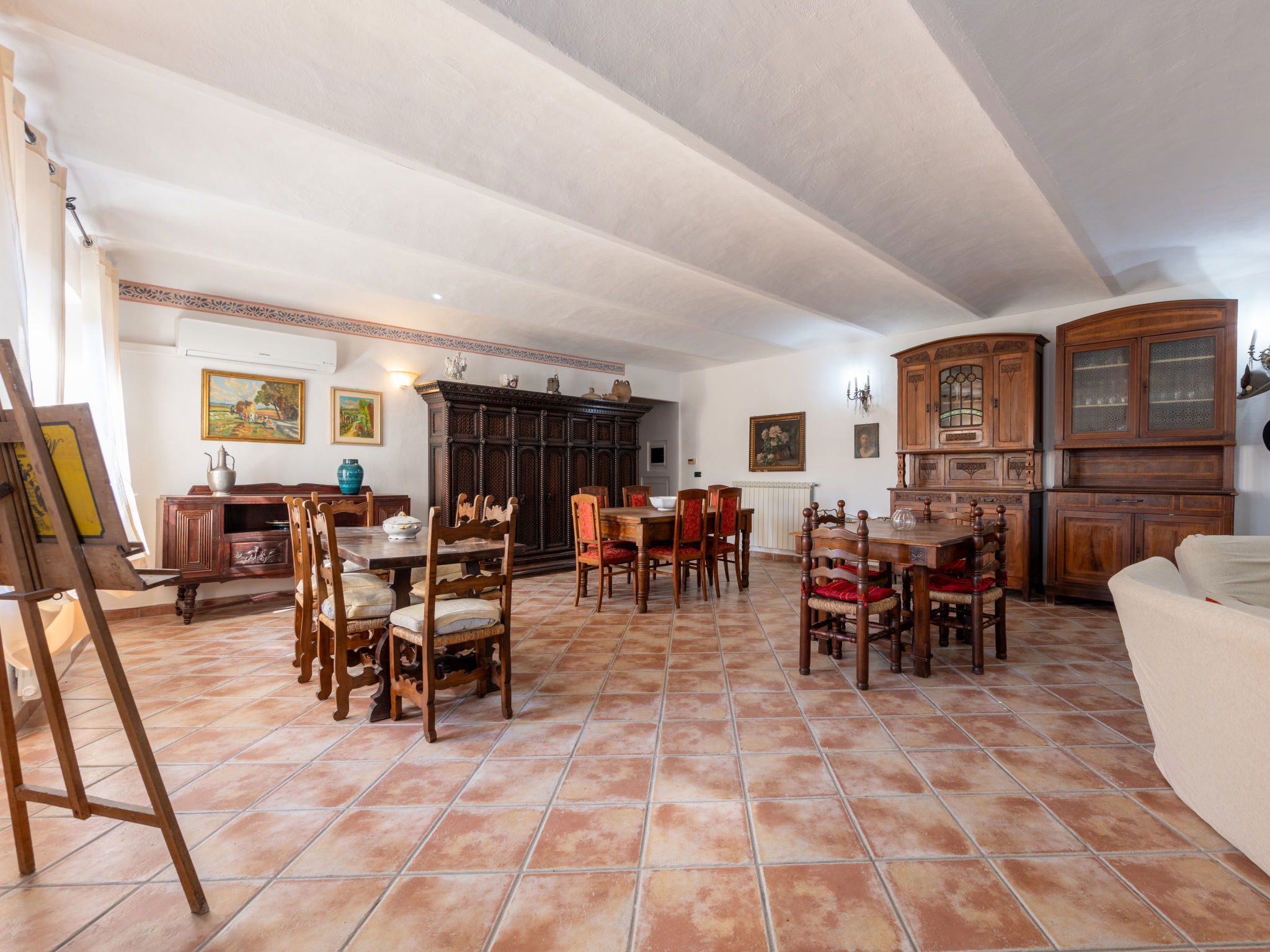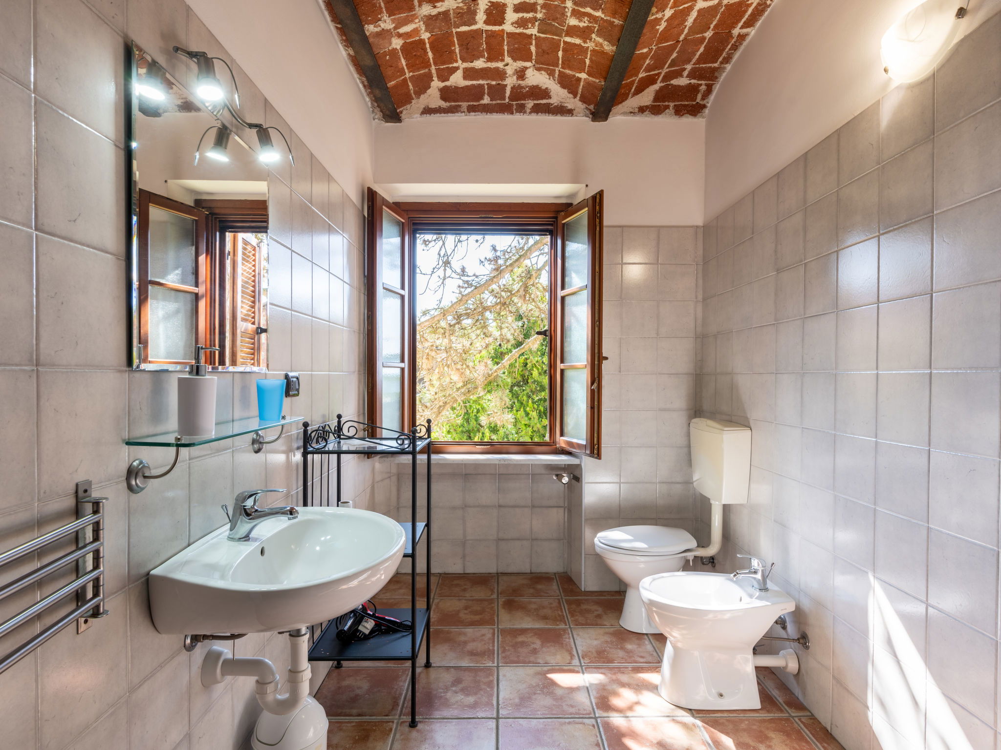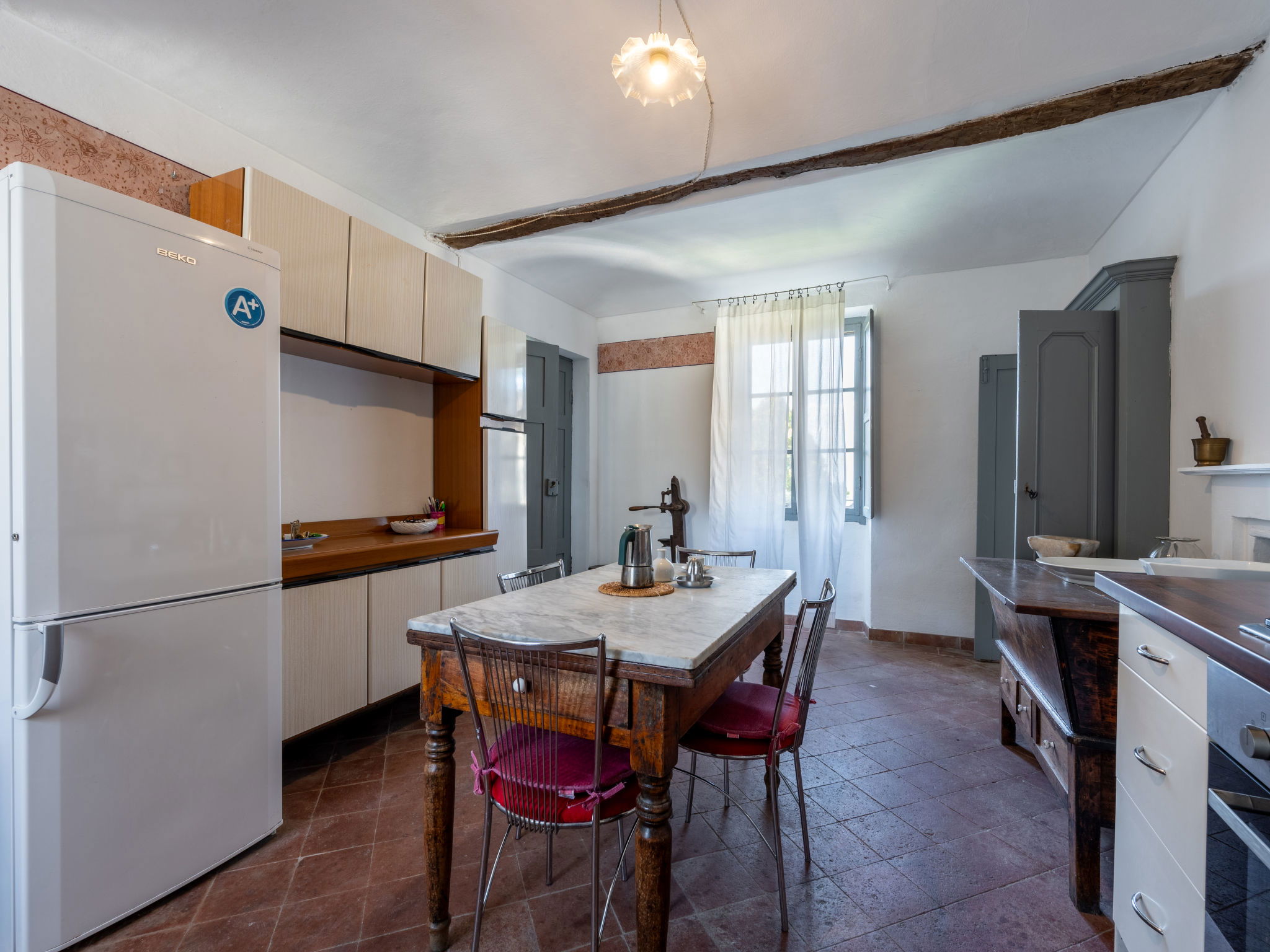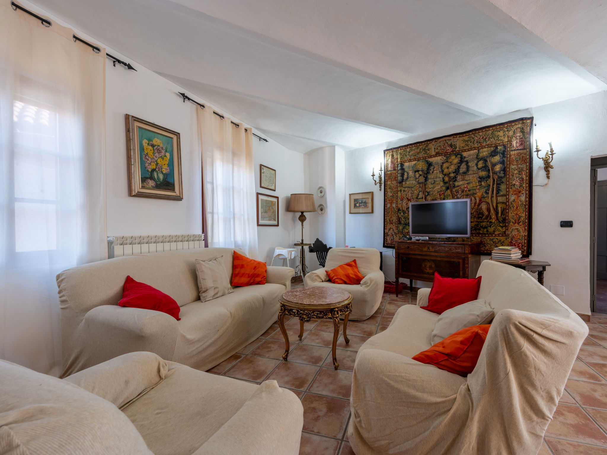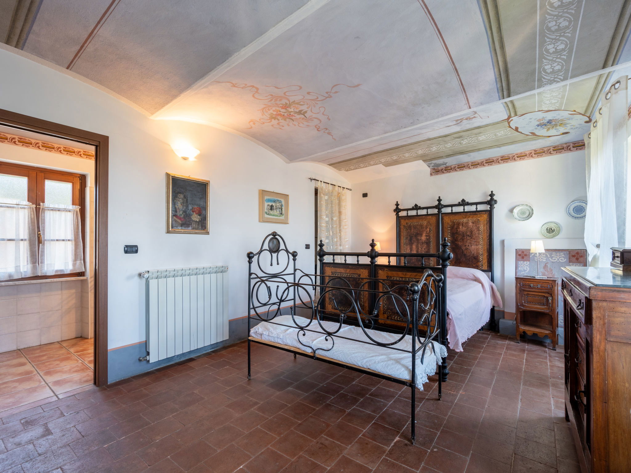 8-room cottage 350 m2 on 3 levels. Rustic and antique furnishings: living/dining room with dining table, TV and air conditioning. Exit to the balcony. 1 double bedroom with 1 french bed (140 cm, length 190 cm), 1 wall-trunk bed and shower/bidet/WC. 1 double bedroom with 1 double bed (160 cm, length 190 cm), shower/bidet/WC and air conditioning. 1 double bedroom with 1 french bed (135 cm, length 190 cm), shower/bidet/WC and air conditioning. 1 room with 2 beds (80 cm, length 185 cm), shower/bidet/WC and air conditioning. Kitchen-/living room (oven, dishwasher, 4 gas rings, freezer). On the lower ground floor: entrance hall. Upper floor: 1 double bedroom with 1 french bed (140 cm, length 190 cm), 1 wall-trunk bed and shower/bidet/WC. 1 double bedroom with 1 double bed (160 cm, length 190 cm), shower/bidet/WC. Gas heating. Heating available only from 15.10. to 15.04. Large terrace 150 m2. Terrace furniture, deck chairs. Beautiful panoramic view of the countryside. Facilities: washing machine, children's high chair, baby cot for up to 2 year olds, hair dryer. Internet (WiFi, free). Please note: maximum 1 pet/ dog allowed. Smoke alarm, fire extinguisher. IT005014B4LXMVST9H