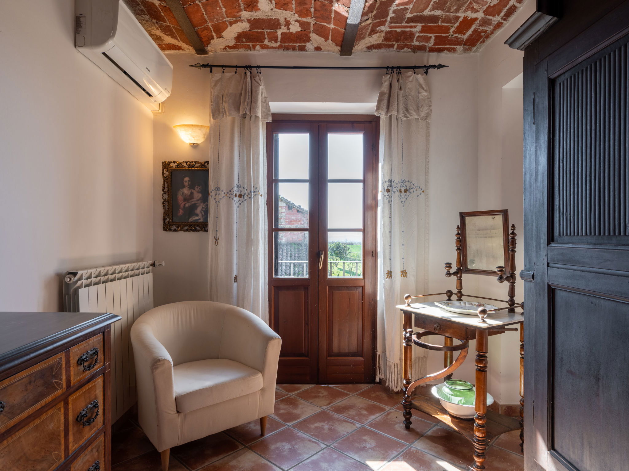 Comfortable, historical country house "Relais San Desiderio". In the resort San Desiderio, 3 km from the centre of Calliano. Private: garden (fenced), swimming pool (above ground) (6 x 3 m, depth 120 cm, seasonal availability: 01.Jun. - 30.Sep.) with internal staircase. Shower/WC in the pool area. In the house: sauna, hot tub (all included). Parking (for 4 cars) at the house. Grocery 3 km, restaurant 900 m, bar 3 km, bus stop 300 m, park "del Brik" 400 m. Nearby attractions: Asti 15 km, Alba 44 km, Torino 70 km. Please note: car recommended. Part of the house is closed and unoccupied.