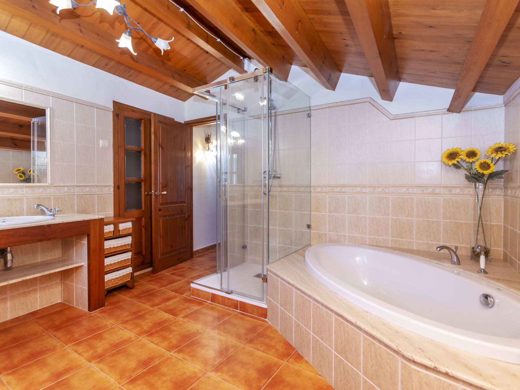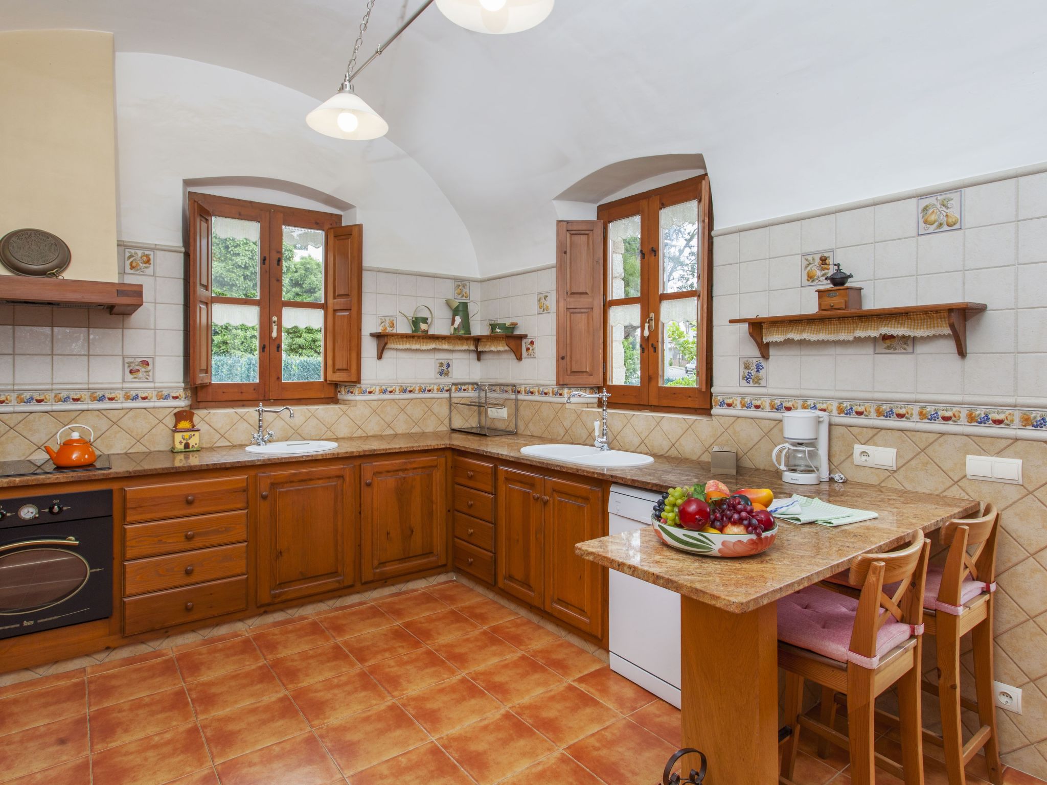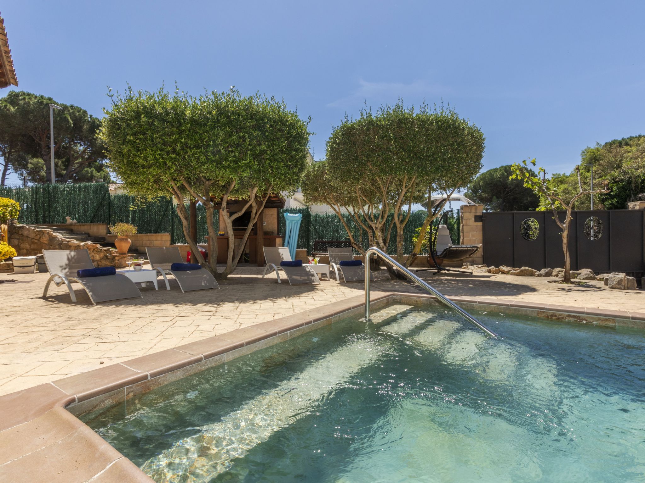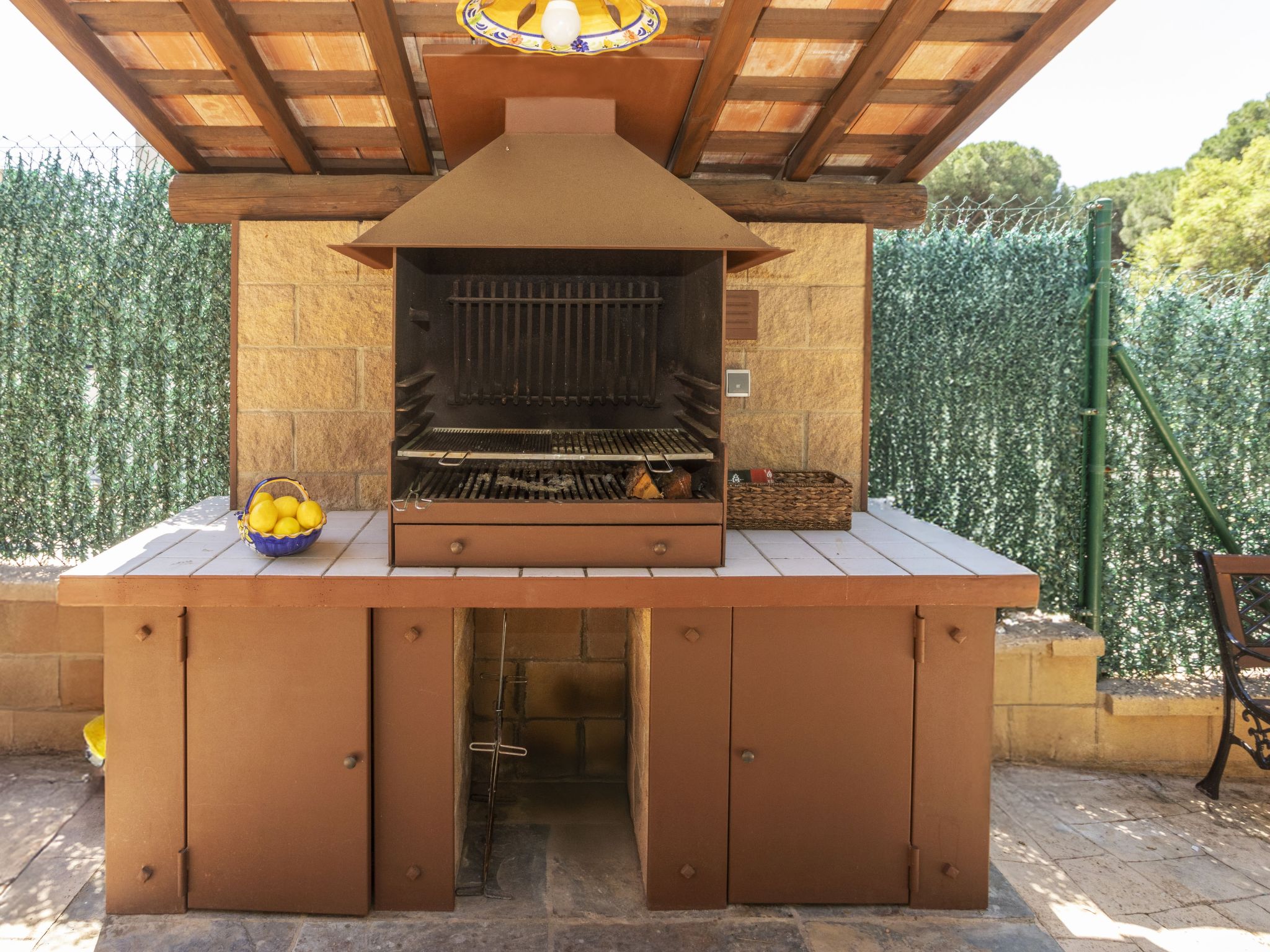 6-room house 140 m2 on 3 levels. Comfortable and tasteful furnishings: living/dining room with open-hearth fireplace, digital TV, hi-fi system and DVD. Exit to the terrace. 2 rooms, each room with 1 french bed (135 cm, length 190 cm). 1 room with (1 x) (1 x), 1 pull-out bed (2 pers. 2 x 90 cm, length 190 cm). Large kitchen (oven, dishwasher, 4 ceramic glass hob hotplates, toaster, kettle, microwave, freezer, electric coffee machine). Exit to the patio. Shower/bidet/WC. Heating. On the lower ground floor: playroom. Exit to the patio, to the swimming pool. Upper floor: with 1 french bed (150 cm, length 190 cm), bath/shower/bidet/WC and double hand-basin. Terrace 21 m2, patio 500 m2. Terrace furniture, barbecue, deck chairs (4), covered balcony. Facilities: washing machine, dryer, iron, baby cot for up to 2 year olds. Internet (WiFi, free). Please note: suitable for families. Non-smoking house. Maximum 1 pet/ dog allowed. TV only ES. HUTG-008892 // Reg. Nr.: ESFCTU00001701500026023100000000000000000HUTG-0088928