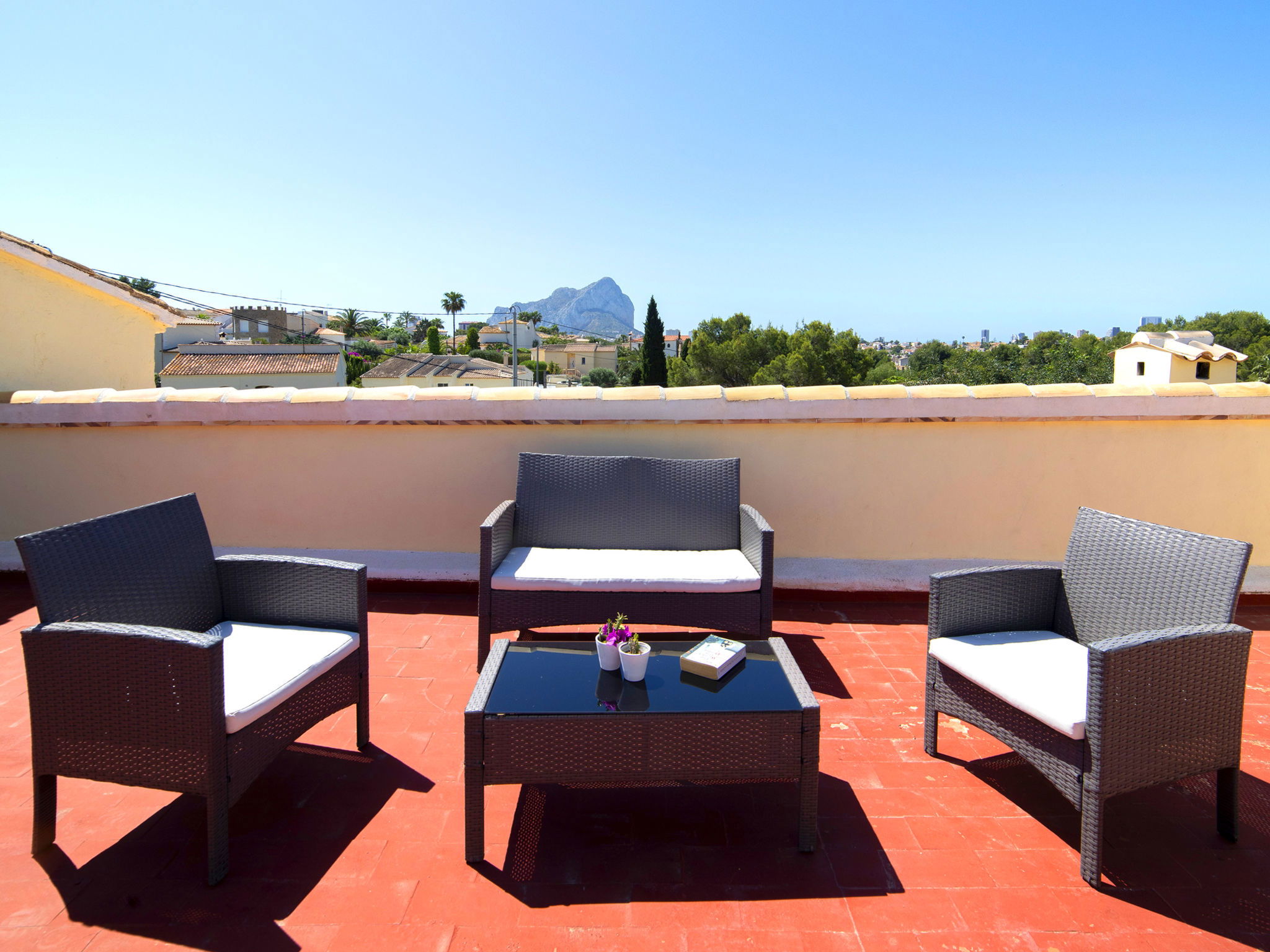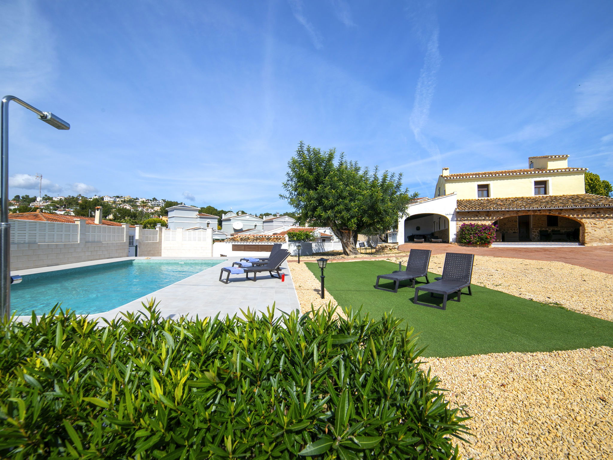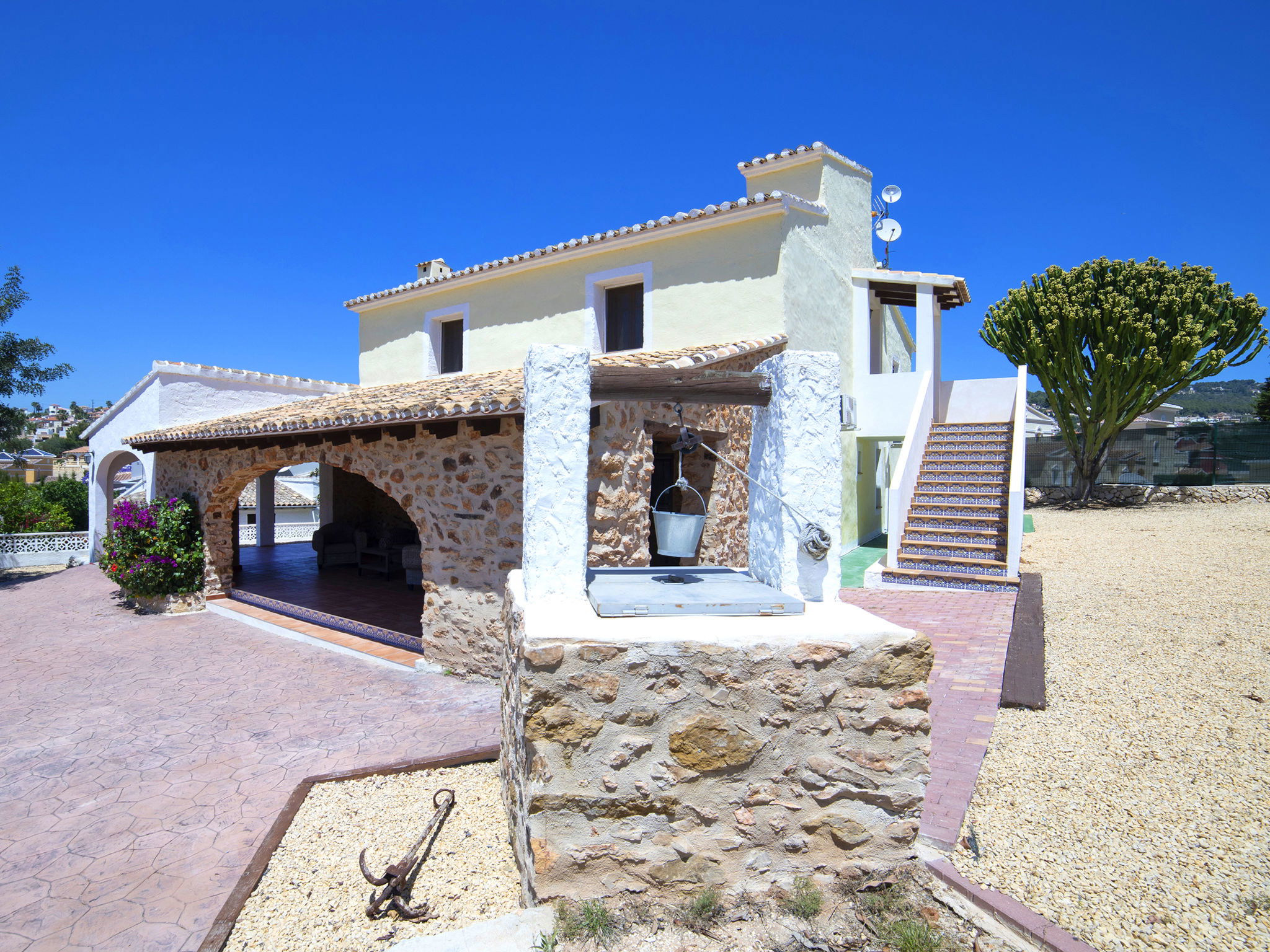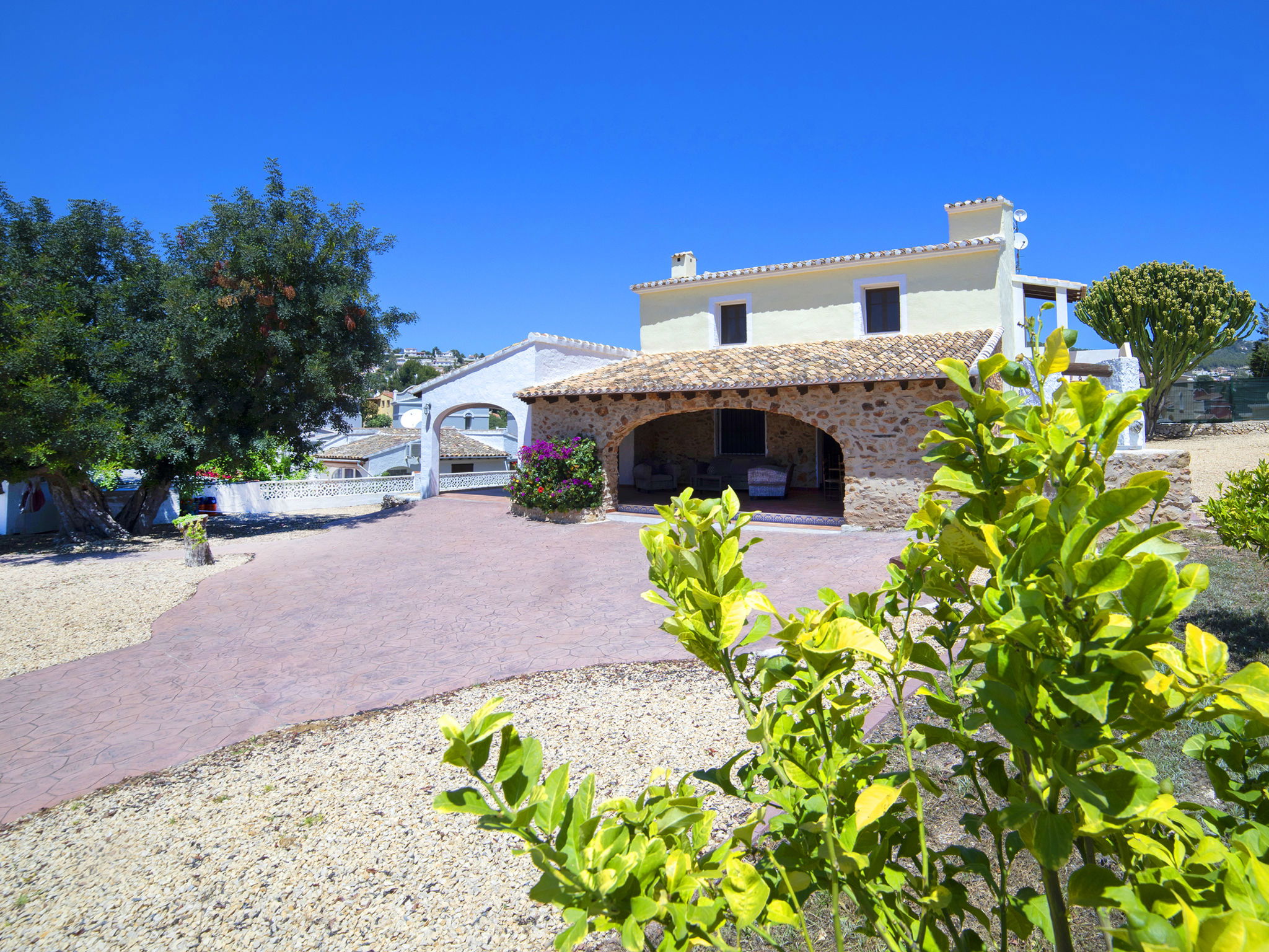 Cosy, rustic villa "Melchora", 2 storeys. In the resort 3.2 km from the centre of Calpe, in a quiet, sunny position residential area (villas), traffic calmed area, 2.3 km from the sea, 2.3 km from the beach. Private: property 1'500 m2 (fenced), garden (fenced), swimming pool (9 x 4 m, seasonal availability: 01.Jan. - 31.Dec.). Outdoor shower, terrace, garden furniture, barbecue, parking on the premises. Grocery 1.5 km, supermarket 1.5 km, restaurant 1 km, bus stop "Parada Bus Casanova" 850 m, sandy beach "Playa de la Fossa" 2.3 km. Sports harbour 3.6 km, marina 3.6 km, golf course 13.7 km. Nearby attractions: Aqualandia, Mundomar, Terra Mítica, Terra Natura, Benidorm Palace (Benidorm), Les Fonts de l'Algar. The owner does not accept any youth groups.