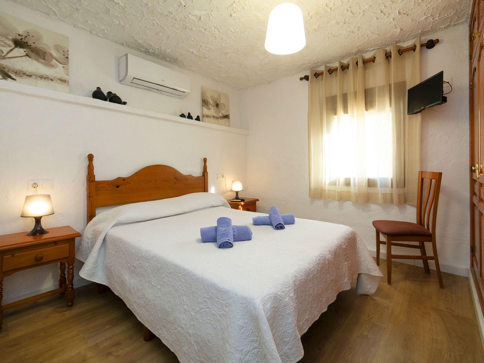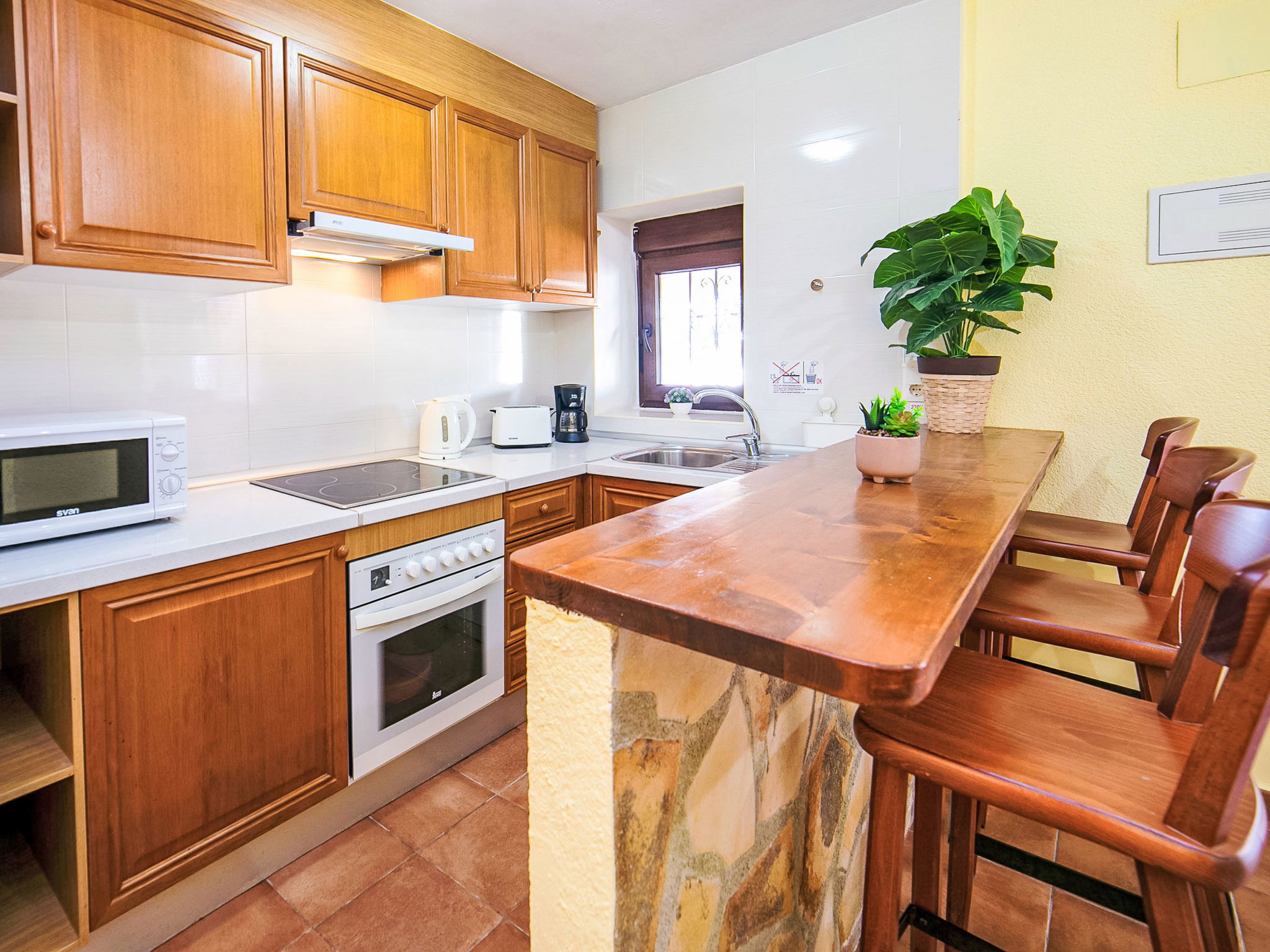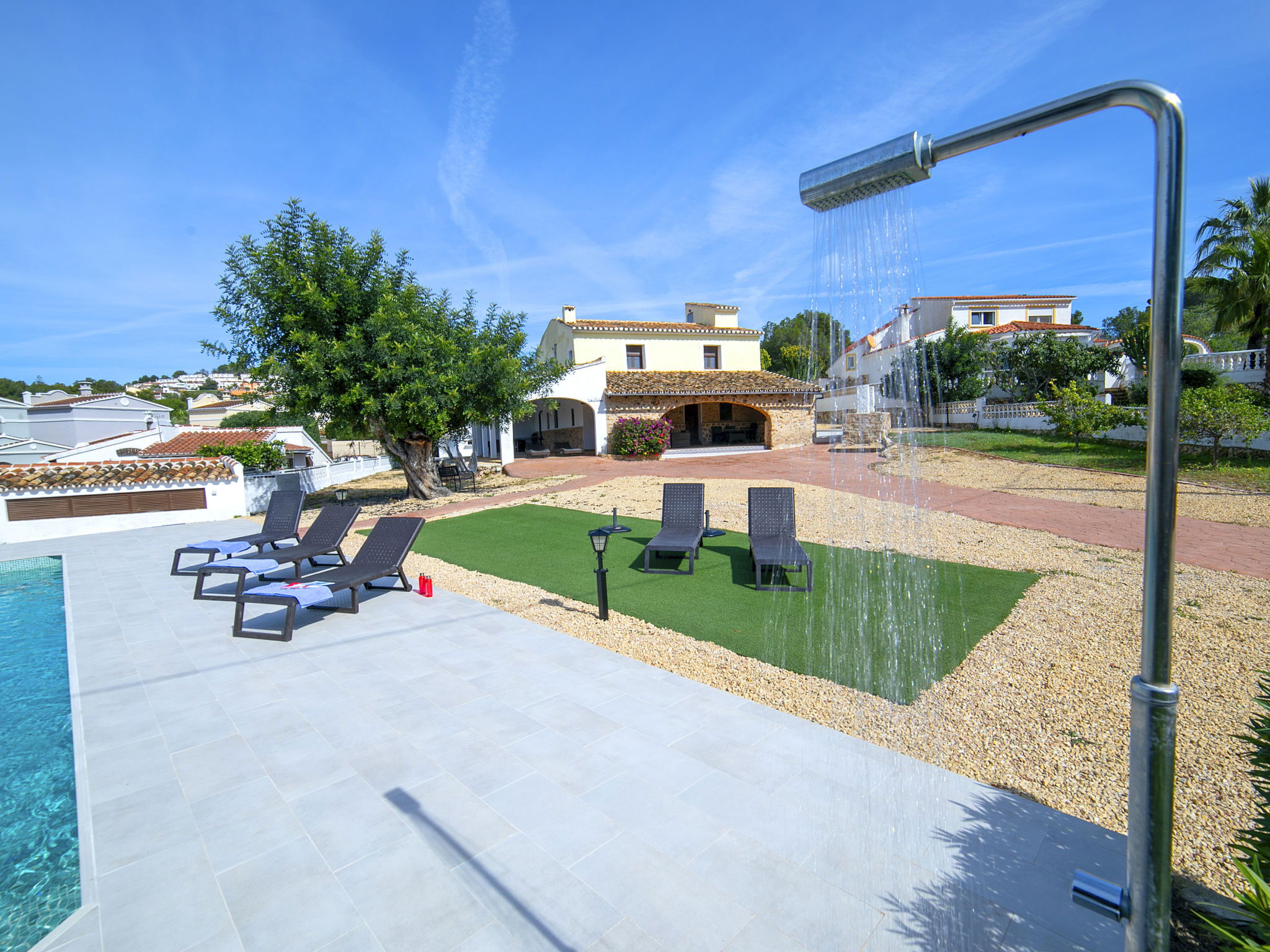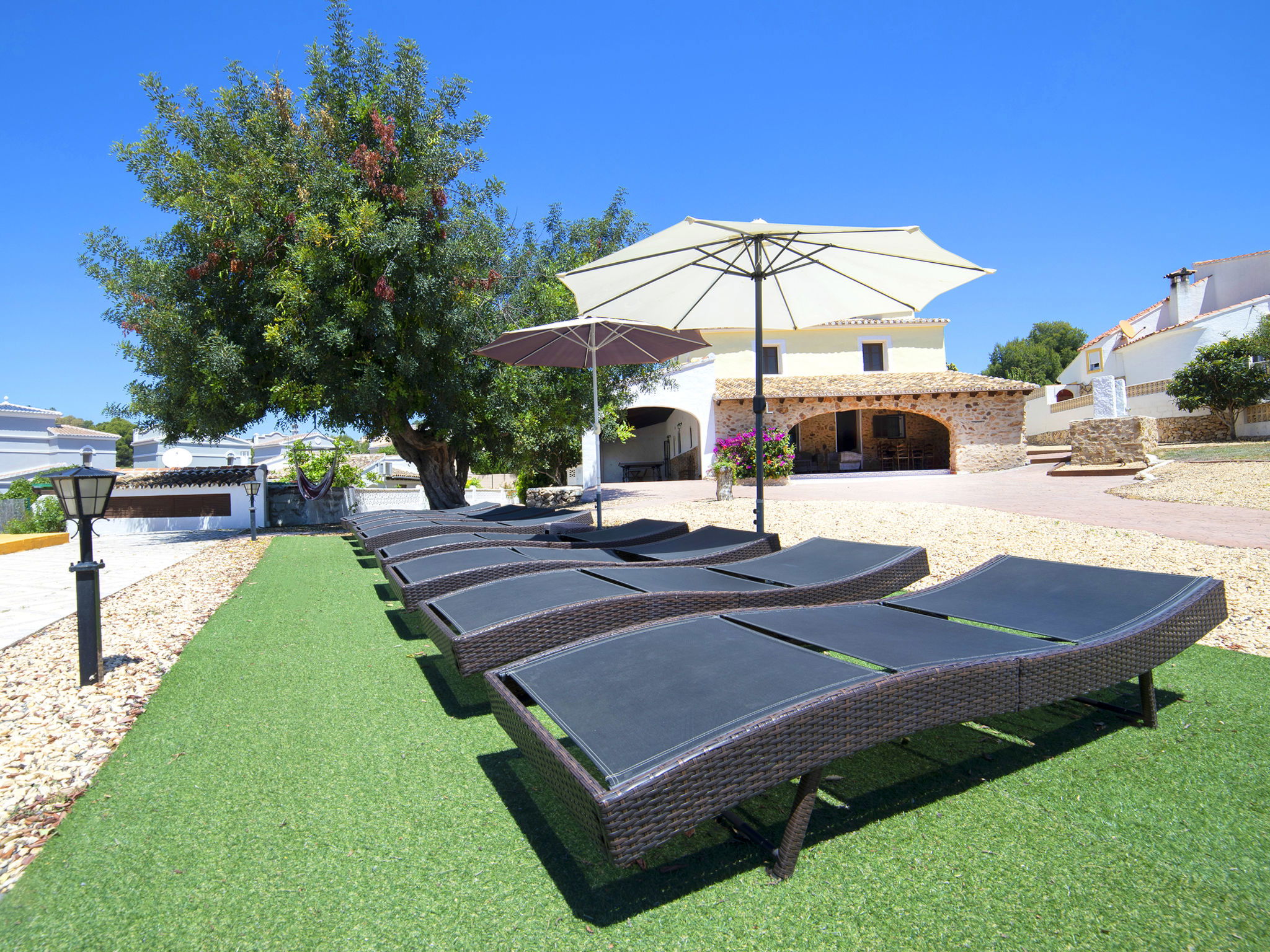 Cosy, rustic villa "Melchora", 2 storeys. In the resort 3.2 km from the centre of Calpe, in a quiet, sunny position residential area (villas), traffic calmed area, 2.3 km from the sea, 2.3 km from the beach. Private: property 1'500 m2 (fenced), garden (fenced), swimming pool (9 x 4 m, seasonal availability: 01.Jan. - 31.Dec.). Outdoor shower, terrace, garden furniture, barbecue, parking on the premises. Grocery 1.5 km, supermarket 1.5 km, restaurant 1 km, bus stop "Parada Bus Casanova" 850 m, sandy beach "Playa de la Fossa" 2.3 km. Sports harbour 3.6 km, marina 3.6 km, golf course 13.7 km. Nearby attractions: Aqualandia, Mundomar, Terra Mítica, Terra Natura, Benidorm Palace (Benidorm), Les Fonts de l'Algar. The owner does not accept any youth groups.