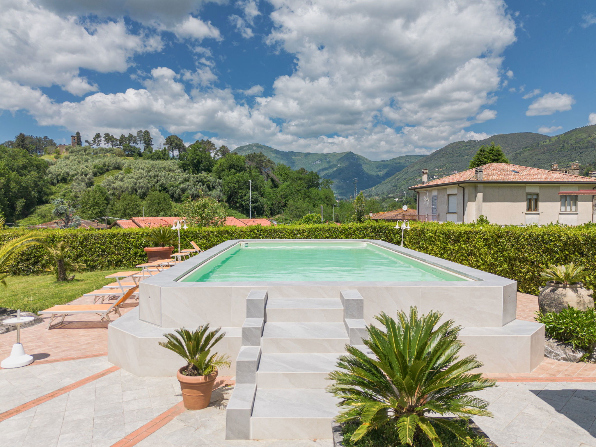 Pontemazzori 4 km from Camaiore: Beautiful cottage "Versilia", renovated, surrounded by trees. In the district of Pontemazzori 4 km from the centre of Camaiore, 14 km from the centre of Viareggio, 39 km from the centre of Pisa, in an elevated position, 12 km from the sea, in the countryside. Private: property 2'000 m2, well-kept garden with lawn and wildlife garden, swimming pool (above ground) (10 x 5 m, depth 120 cm, seasonal availability: 06.May. - 30.Sep.). Table tennis, pool maintenance by the owner/gardener. In the house: central heating system, heating to be paid on the spot (28.Mar. - 30.Oct.), heating available only from 31.Oct. - 27.Mar.. Parking on the premises. Grocery 2 km, restaurant 4 km, bus stop 3 km, railway station "Viareggio" 14 km, sandy beach "Lido di Camaiore" 12 km. Nearby attractions: Forte dei Marmi 20 km, Lucca 38 km, Carrara (cave marmo Fantiscritti) 49 km, Collodi (Pinocchio Park) 56 km, Riomaggiore (5 Terre) 81 km, Firenze 124 km. Well-known lakes can easily be reached: Torre del Lago 24 km. Hiking paths: Grotta all´Onda Casoli 17 km. Please note: car recommended. Animals in the neighbourhood. new swimming pool.