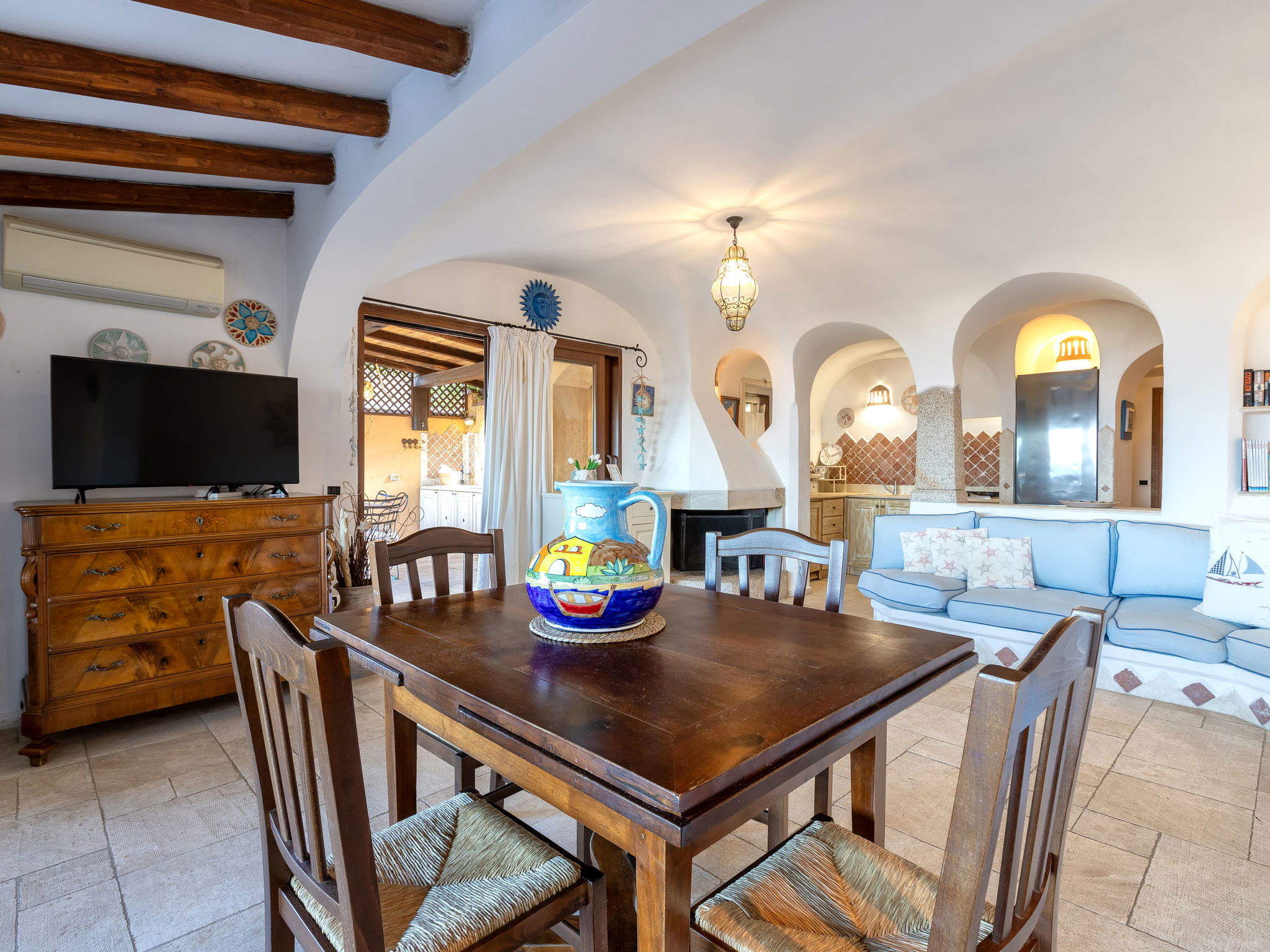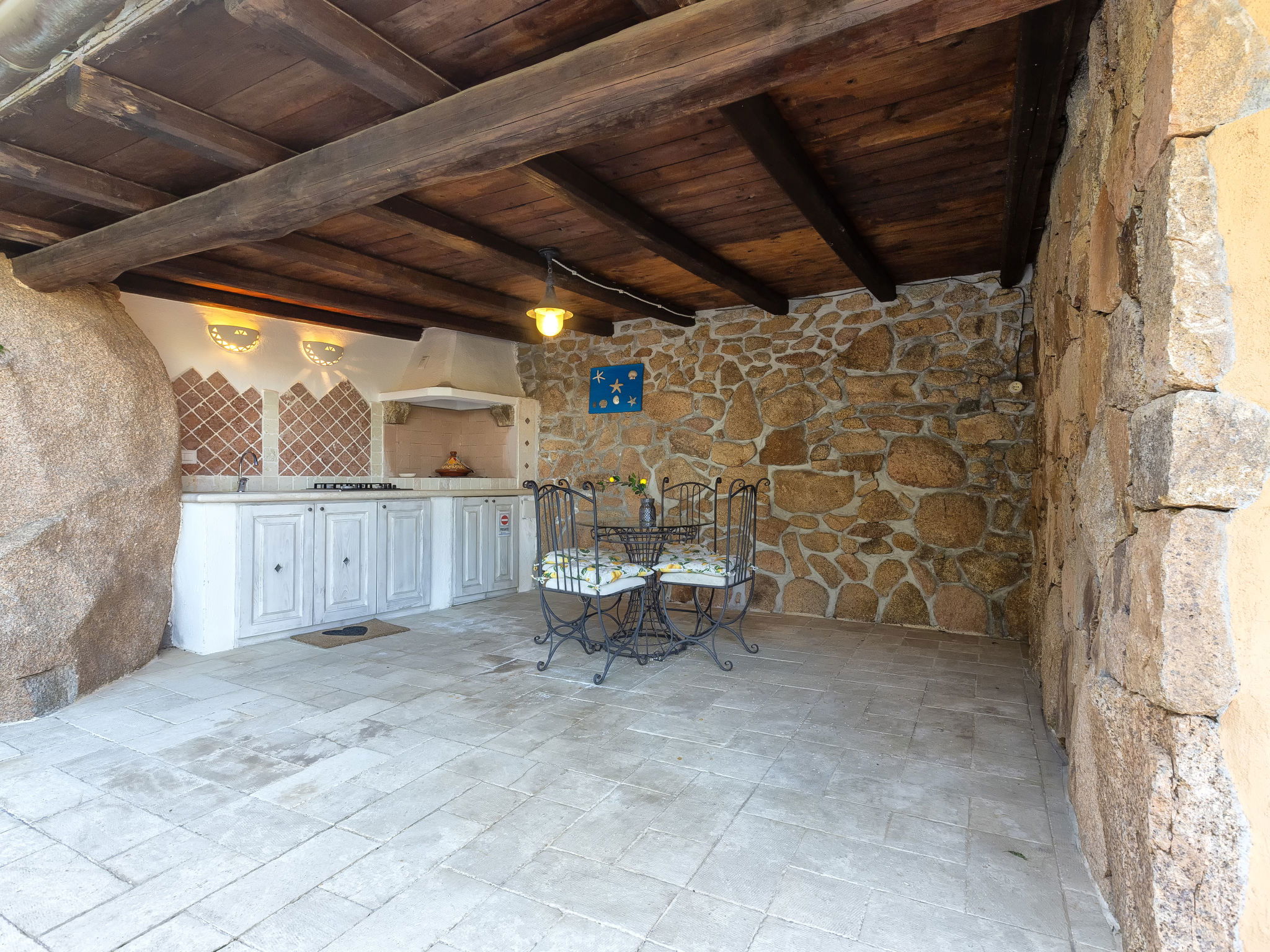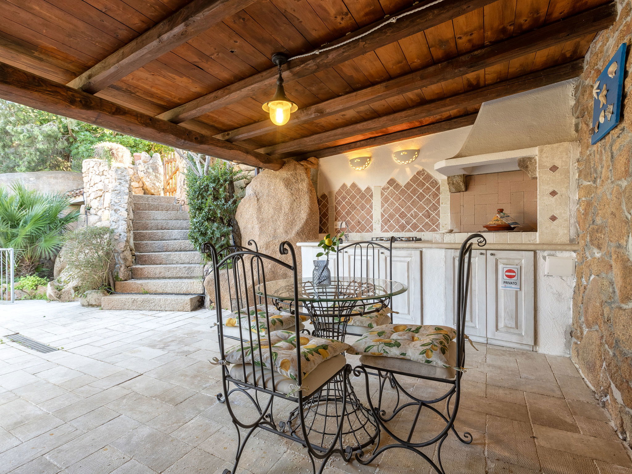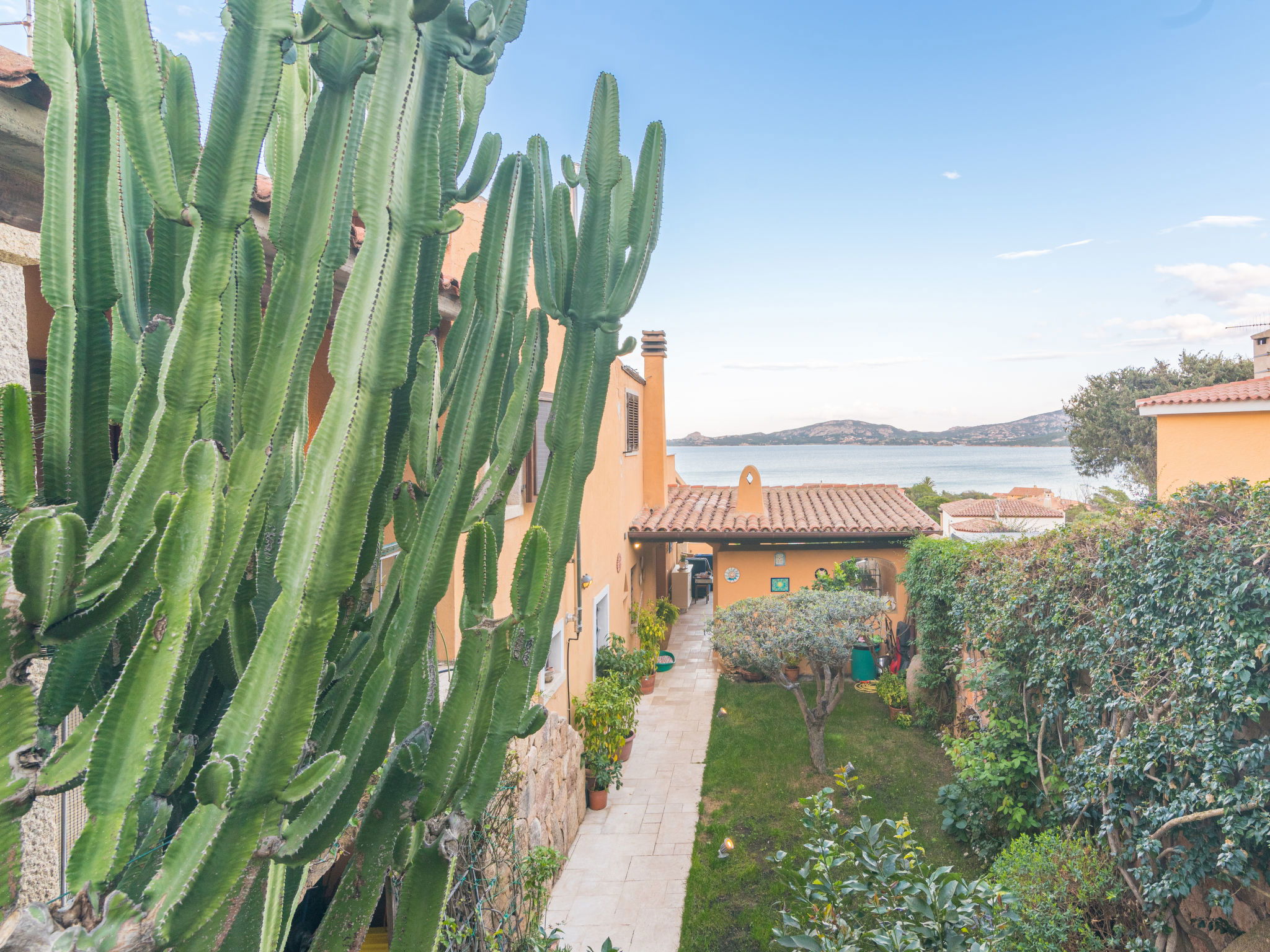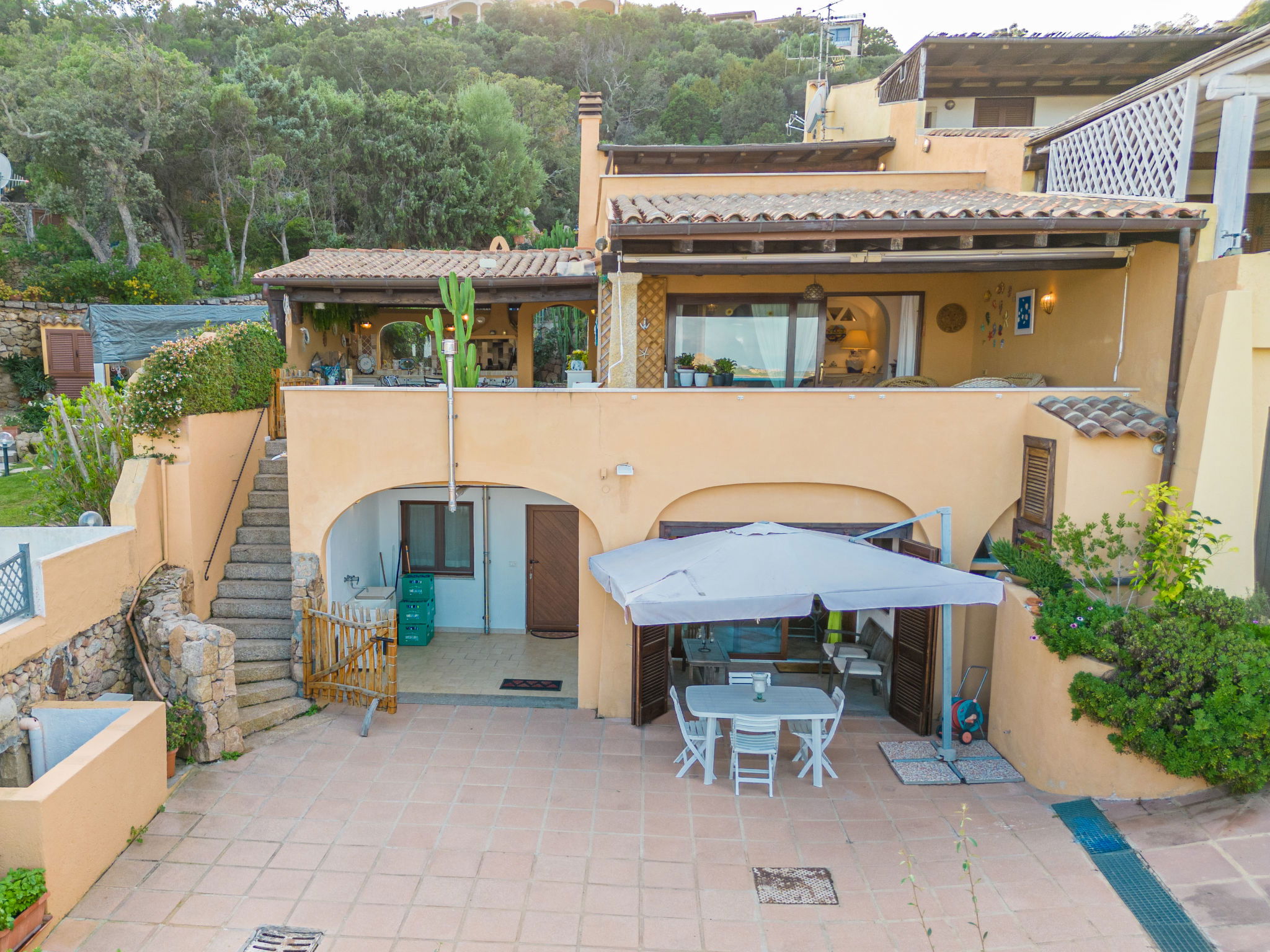 Large, cosy, comfortable terraced house. 2 km from the centre of Cannigione, on a slope, residential area (villas), 450 m from the sea, in a cul-de-sac. Motor access to 10 m from the house. Stepped path (30 steps) to the house. Public parking 10 m on the road. Supermarket 1.5 km, restaurant, bar 450 m, bus stop "Laconia Via Monticorru 33" 250 m, sandy beach "La Conia" 450 m. Marina 2 km. Nearby attractions: Arzachena 9 km, Palau 13 km, Baia Sardinia 14 km, Porto Cervo 20 km, Olbia 30 km. Please note: car recommended. Property ref. IT7160.641.1 is situated on the same property.