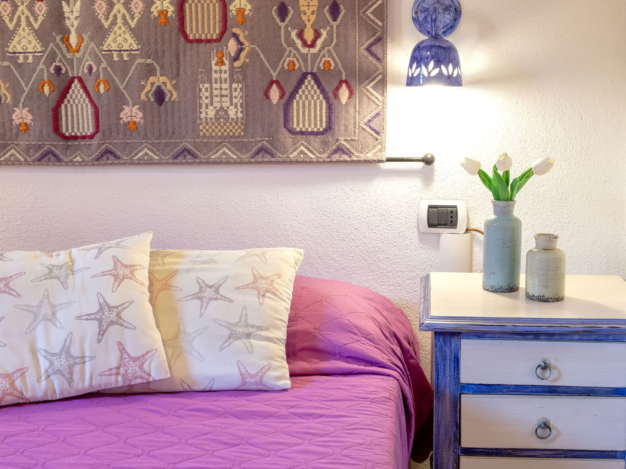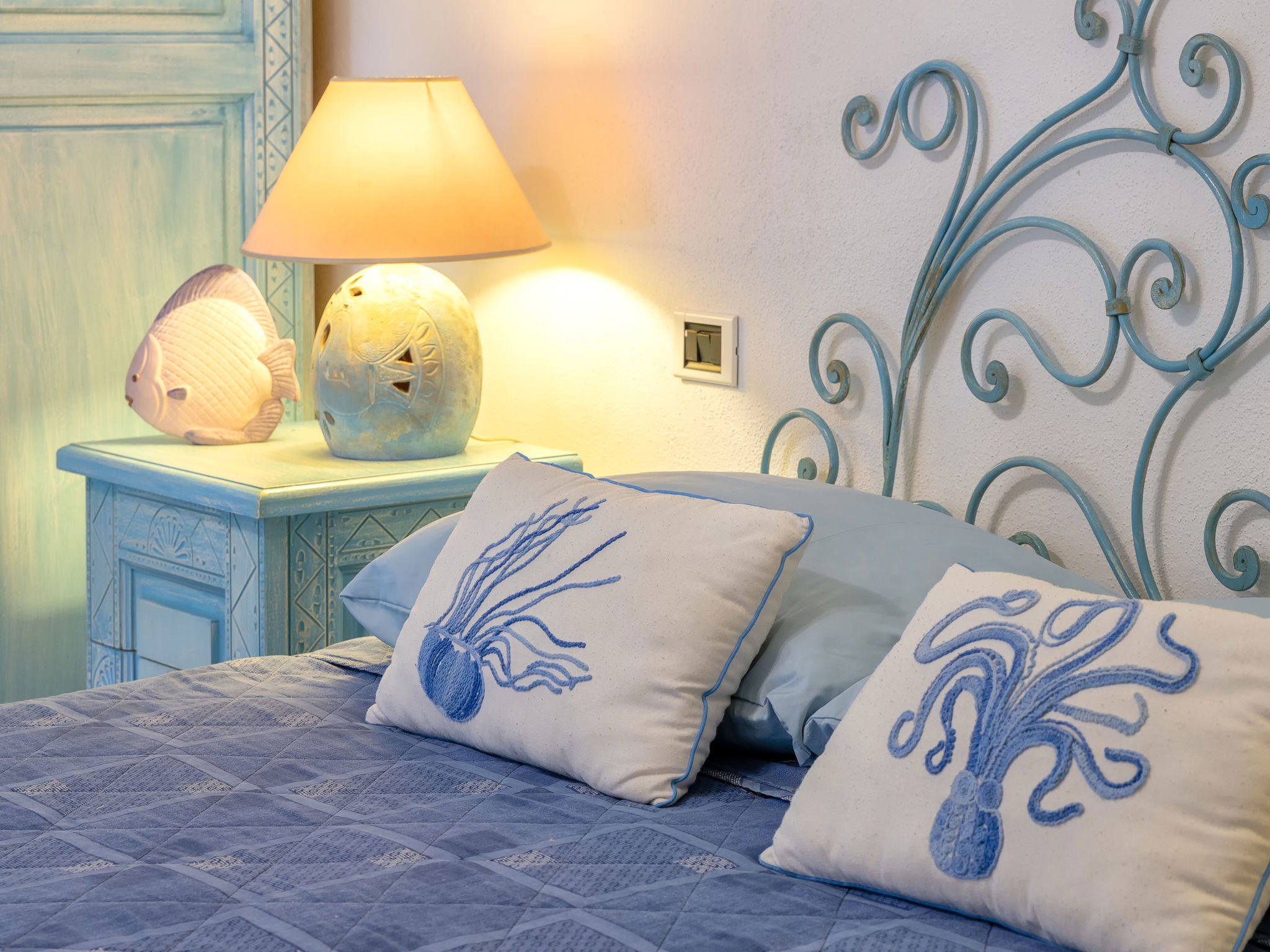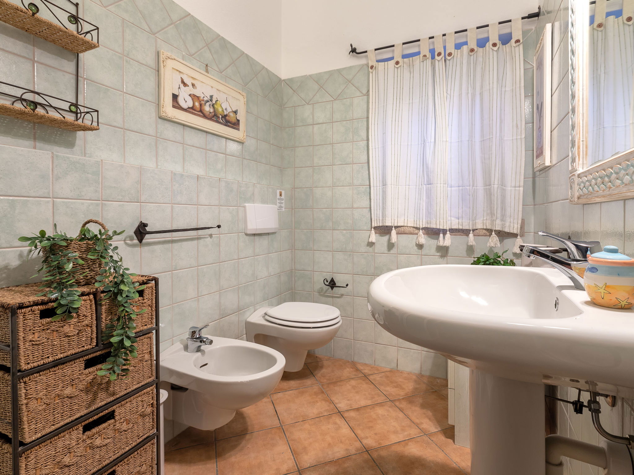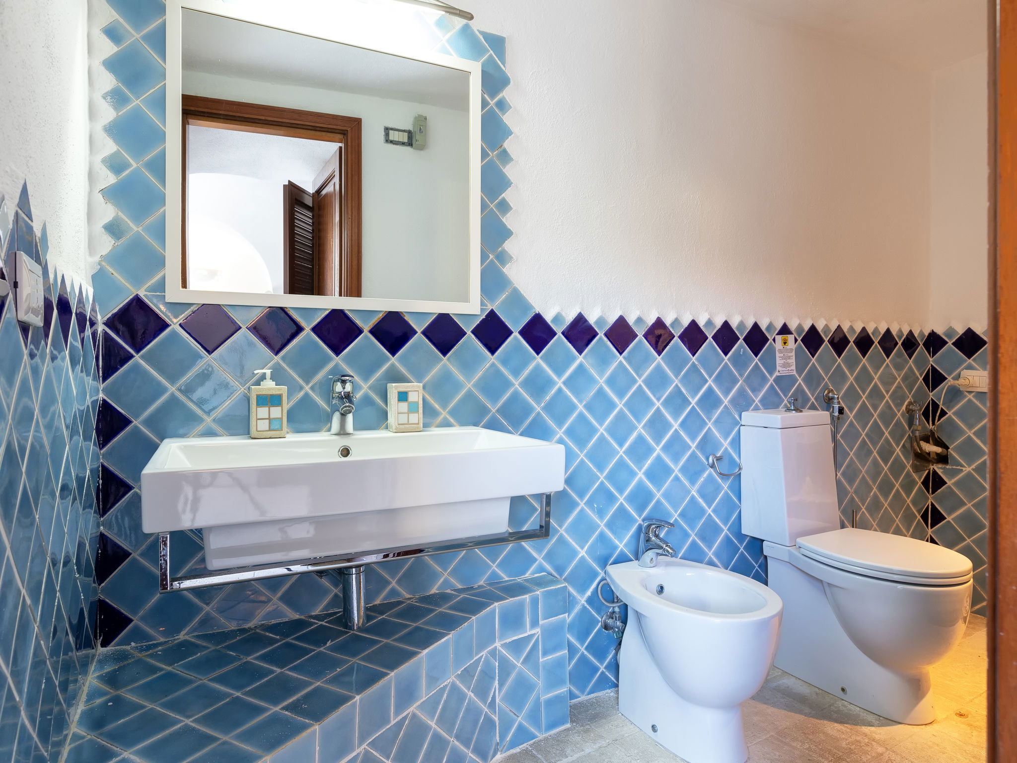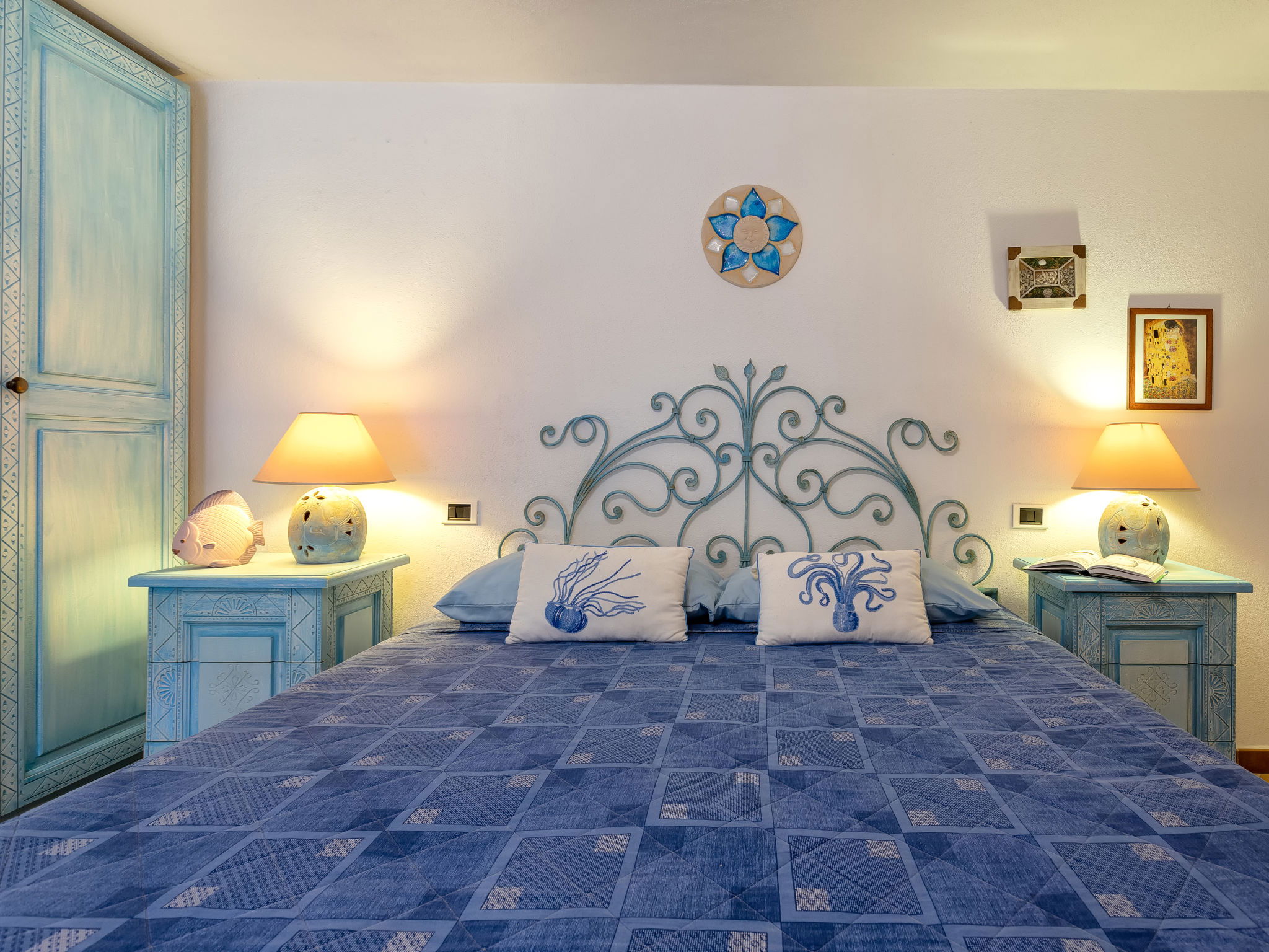 "Valentina", 5-room house 200 m2 on 2 levels. Comfortable and cosy furnishings: living/dining room with digital TV, air conditioning and forced-air heating. Exit to the veranda. 1 double bedroom. 1 double bedroom. Exit to the terrace. Kitchenette (oven, dishwasher, 4 gas rings, toaster, kettle, microwave). 2 showers/bidet/WC. Upper floor: 1 double bedroom with air conditioning and forced-air heating. Exit to the terrace. 1 double bedroom with veranda with air conditioning and forced-air heating. Shower/bidet/WC. Air-conditioning, forced-air heating (extra). Heating not available in all rooms. Large terrace, patio roofed, garden 50 m2. Terrace furniture, barbecue. Very beautiful view of the sea and the resort. Facilities: washing machine, children's high chair, baby cot (extra). Internet (WiFi, free). Please note: non-smoking house. Maximum 1 pet/ dog allowed. Private entrance. One Shower/bidet/WC is outside the apartment. IT090006C2000Q8553