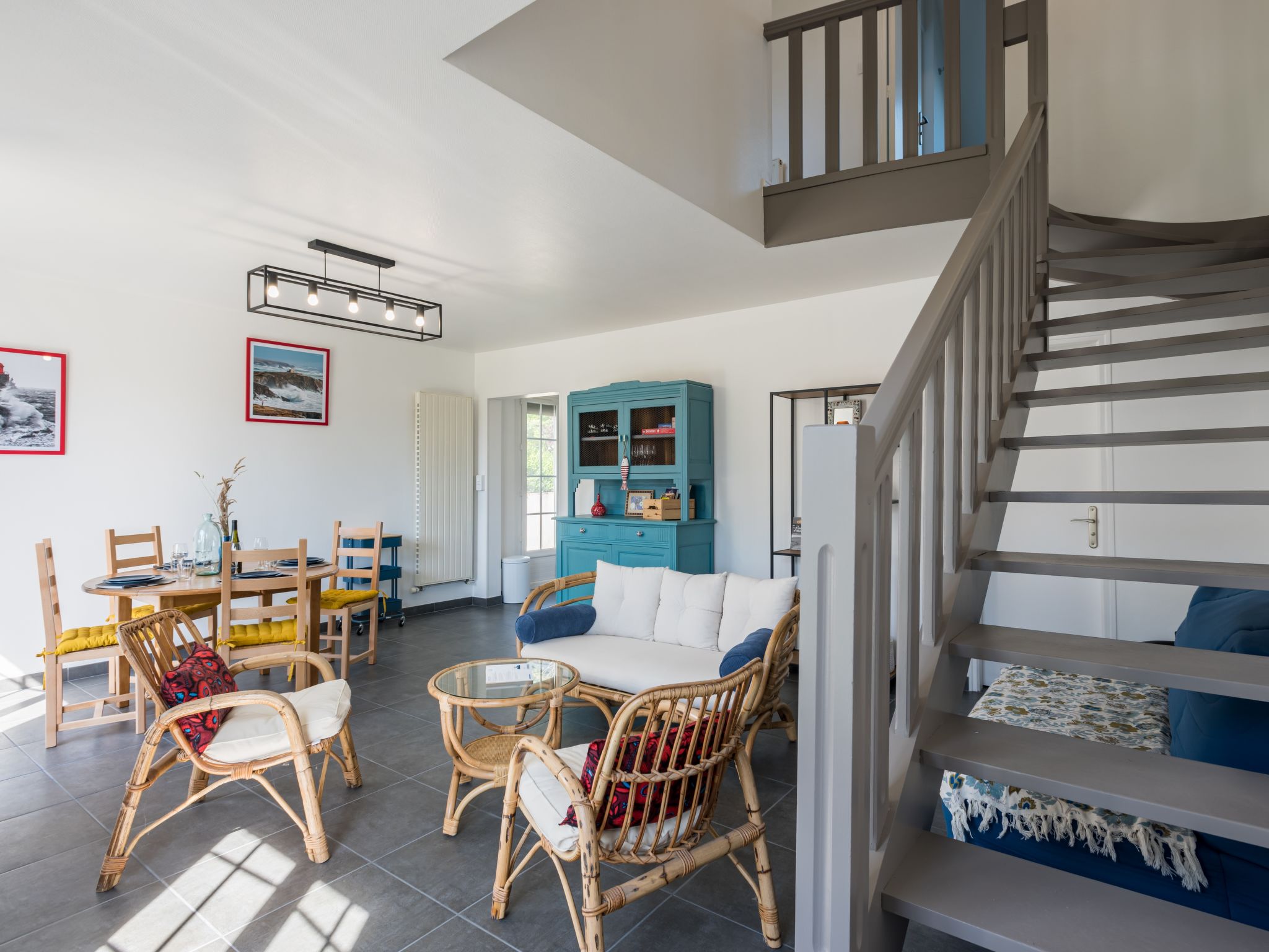 Terraced house "Bretagne", 2 storeys, renovated in 2021. In the resort 1.5 km from the centre of Carnac, 200 m from the sea, from the beach. Private: garden 200 m2 (fenced), parking at the house. Supermarket 50 m, restaurant 200 m, sandy beach "Grande plage et Men dû" 300 m, indoor swimming pool 1.5 km, thermal baths "Thalassothérapie Thalazur" 1.5 km. Sports harbour 4 km, golf course (18 hole) 15 km, sailing school 1.5 km, tennis 300 m. Nearby attractions: Site Mégalithique 4 km, La Trinité sur Mer 4 km, Presqu'ile de Quiberon 20 km, Vannes 30 km, lorient 50 km, Belle île en Mer, Houat, Hoedic. Hiking paths: Le Golfe du Morbihan.