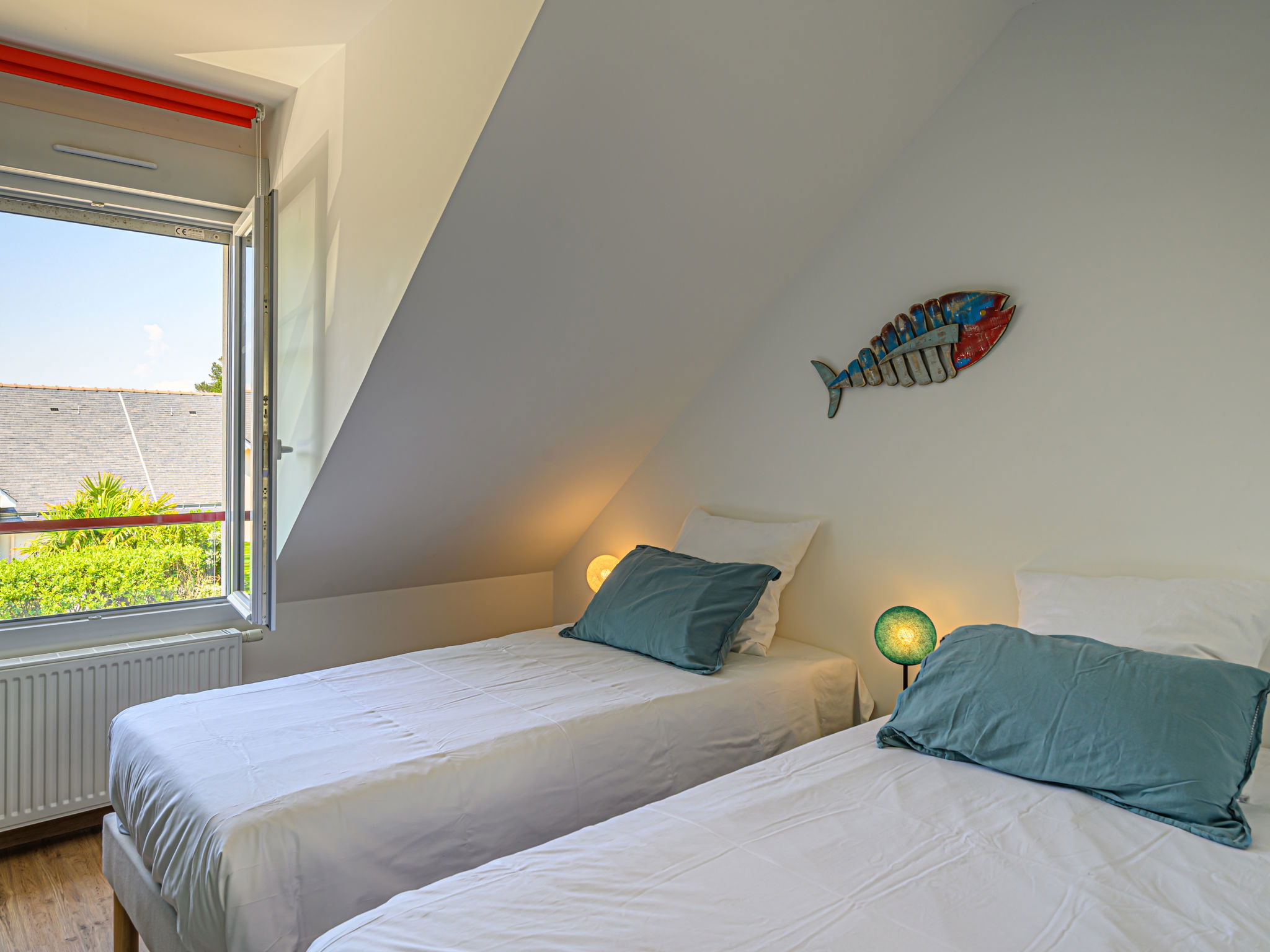 Domaine de Ranguhan: Terraced house "Ranguhan", 2 storeys. In the resort 500 m from the centre of Carnac, 1.5 km from the sea, 1.5 km from the beach, south facing position. Private: garden 150 m2 (fenced), parking at the house. Shop 500 m, grocery 200 m, supermarket 1 km, restaurant 500 m, bakery 500 m, café, sandy beach "Grande plage" 1.5 km. Sports harbour 4 km, golf course (18 hole) 15 km, surf school 7 km, sailing school 2 km, tennis 2 km. Nearby attractions: Les Alignements de Carnac 2 km, La Trinité-sur-mer 4 km, Presqu'île de Quiberon 15 km, Auray - Port de St Goustan 15 km, Vannes 25 km. Hiking paths: Golf du Morbihan 20 km.