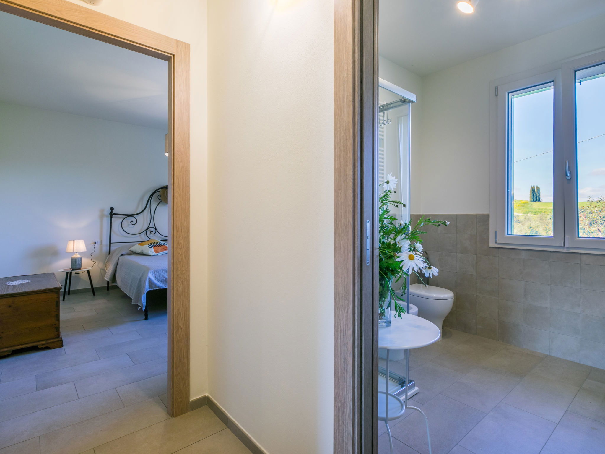 Modern, beautiful house "Nena", surrounded by fields and vineyards. 3 km from the centre of Casale Marittimo, 5.5 km from the centre of Bibbona, 13 km from the sea, 13 km from the beach. Private: property 4 ha, garden (fenced). Motor access (1 km via unmade road). Parking at the house. Grocery 3 km, supermarket 12 km, bar 3 km, bakery 3 km, bus stop "Bivio 3 Comuni" 2 km, sandy beach "Marina di Bibbona" 13 km, rocky beach "Castiglioncello" 33 km, thermal baths "Calidario" 36 km. Surf school 18 km. Nearby attractions: Bolgheri 11 km, Pisa 68 km, Lucca 94 km, Firenze 140 km.