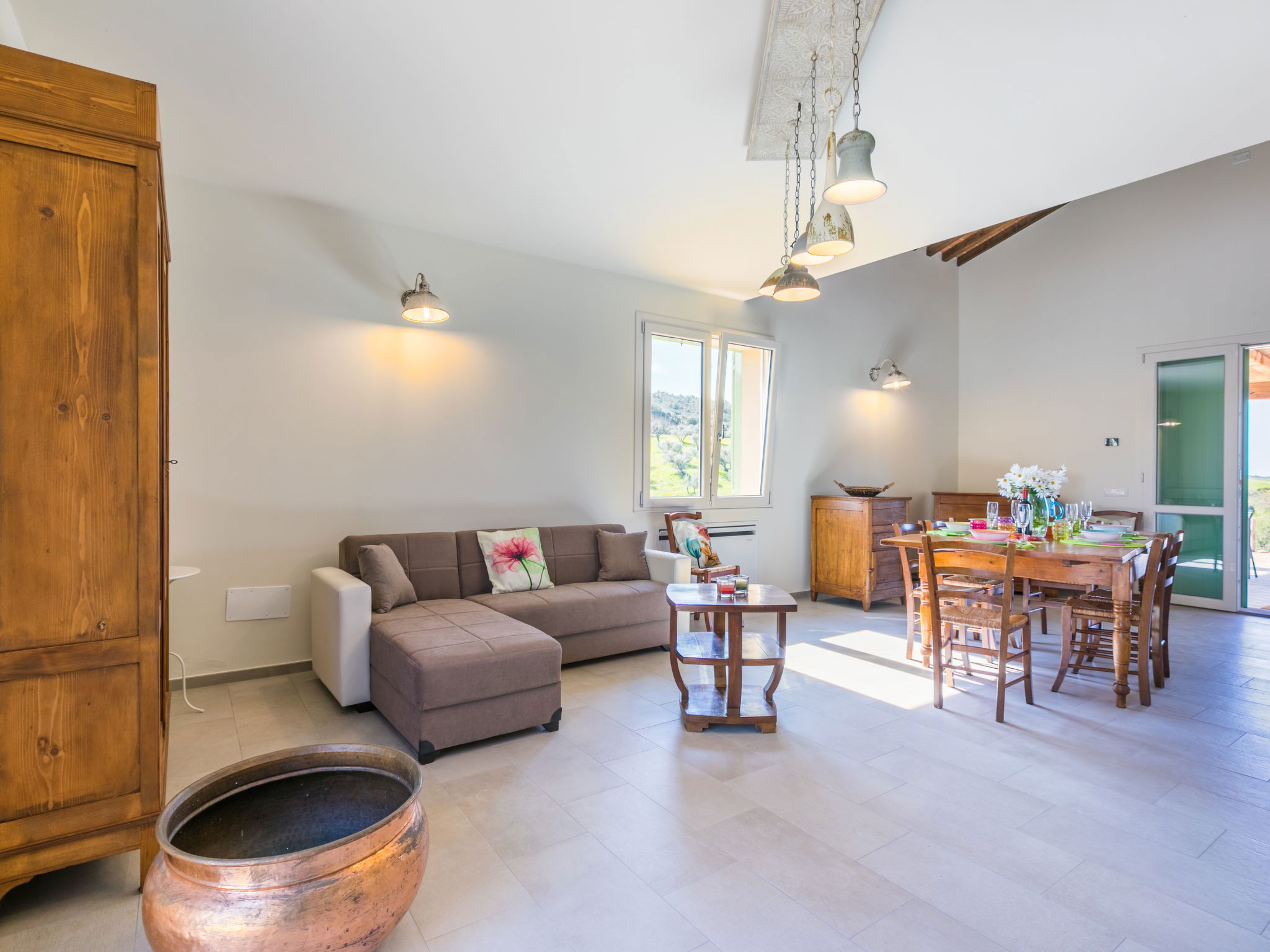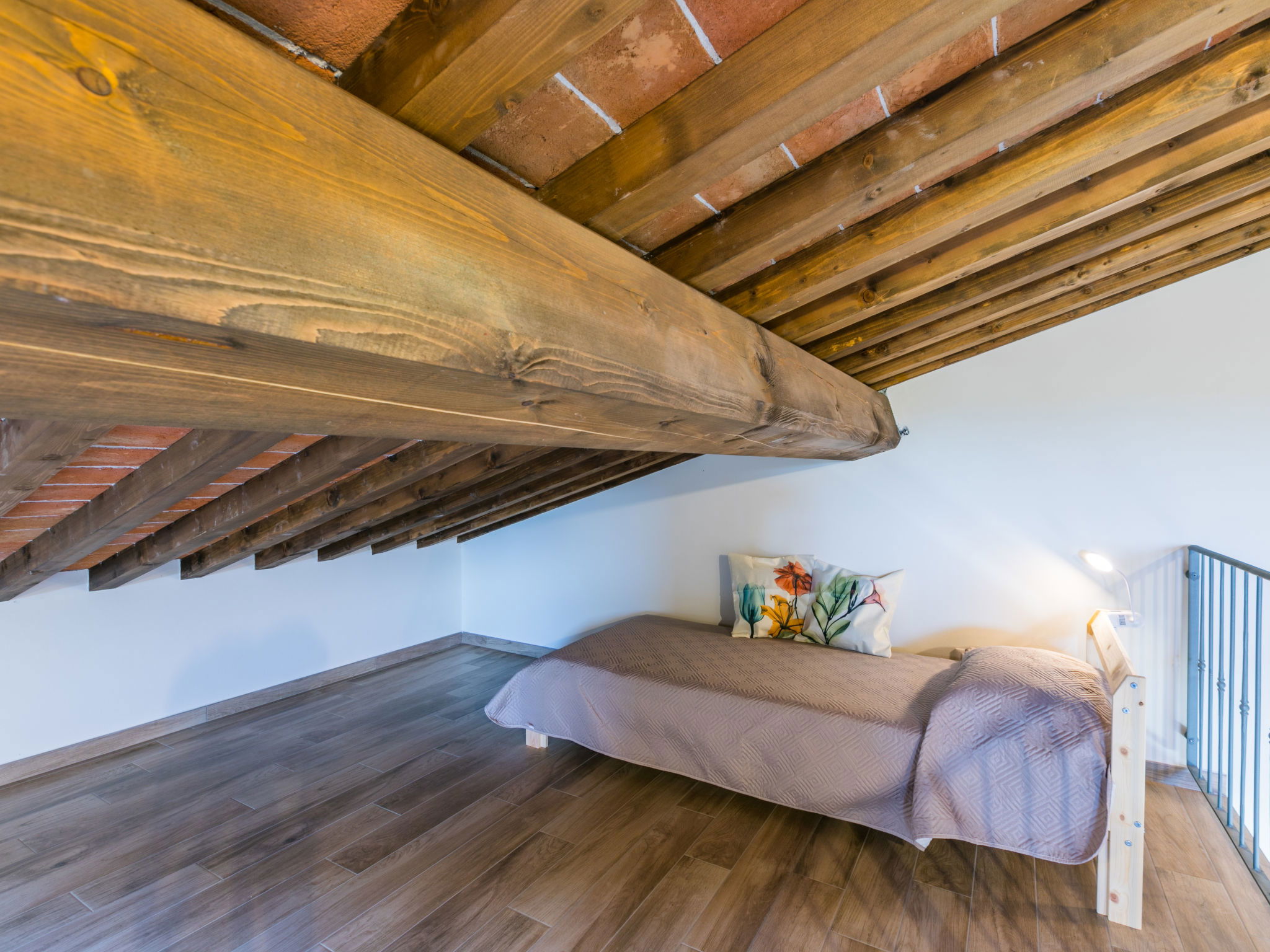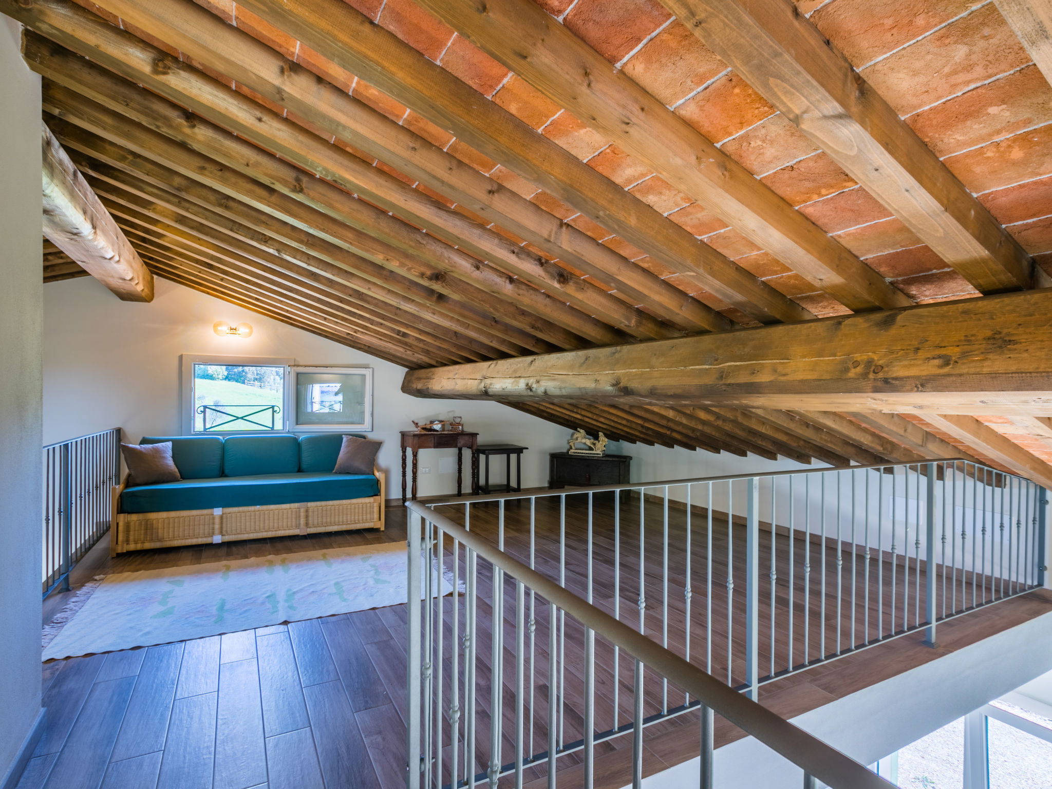 3-room house 100 m2. Beautiful and modern furnishings: open large living/dining room with dining table and TV. Exit to the garden, to the terrace. 2 double bedrooms. Open kitchen (oven, dishwasher, 4 induction hot plates, toaster, kettle, electric coffee machine). Bath/bidet/WC. Electric heating, air-conditioning. Solar power. Upper floor: gallery with 2 beds. Large garden. Terrace furniture, barbecue (portable), deck chairs. Beautiful panoramic view of the countryside and the town. Facilities: washing machine. Internet (WiFi, free). Parking at the house. Maximum 1 pet/ dog allowed. Instead of an enclosed bedroom, some sleeping areas are located in an open-plan area (gallery, alcove, etc.). Bedlinen, towels, final cleaning and all energy costs are included. IT050006C28UZQVXPS