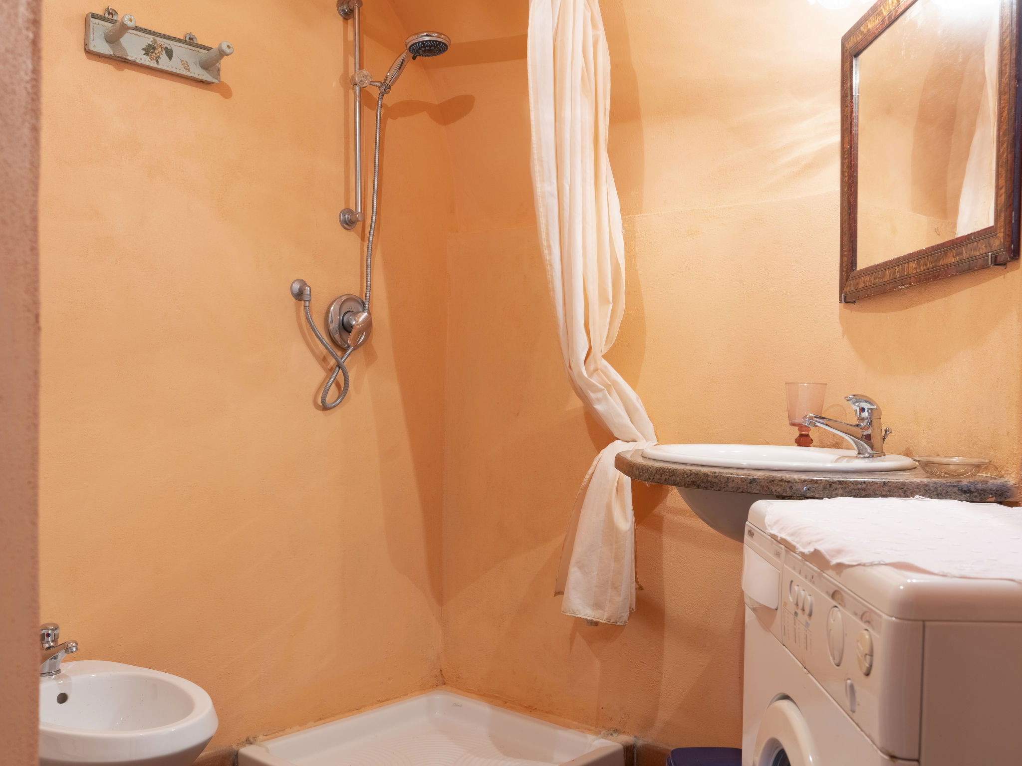"Casa Pinela Maria Sole", 2-room apartment 50 m2 on 2 levels, on the ground floor. Beautiful and cosy furnishings: living/dining room with 1 sofabed (120 cm, length 200 cm), TV. Upper floor: 1 double bedroom. Kitchen-/living room (oven, 4 gas rings, toaster, kettle). Shower/bidet/WC. Gas heating. Heating available only from 01.11. to 08.04. Large terrace 30 m2. Terrace furniture. Beautiful view of the countryside. Facilities: washing machine. Internet (WiFi, free). Maximum 1 pet/ dog allowed. IT008014C27C25BU9W