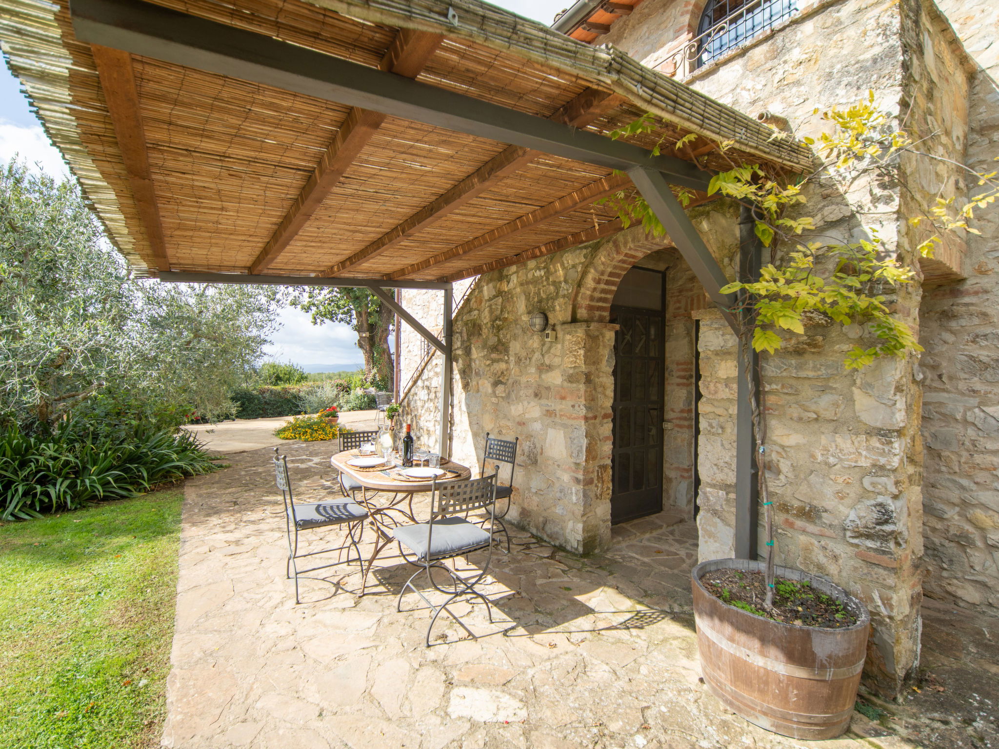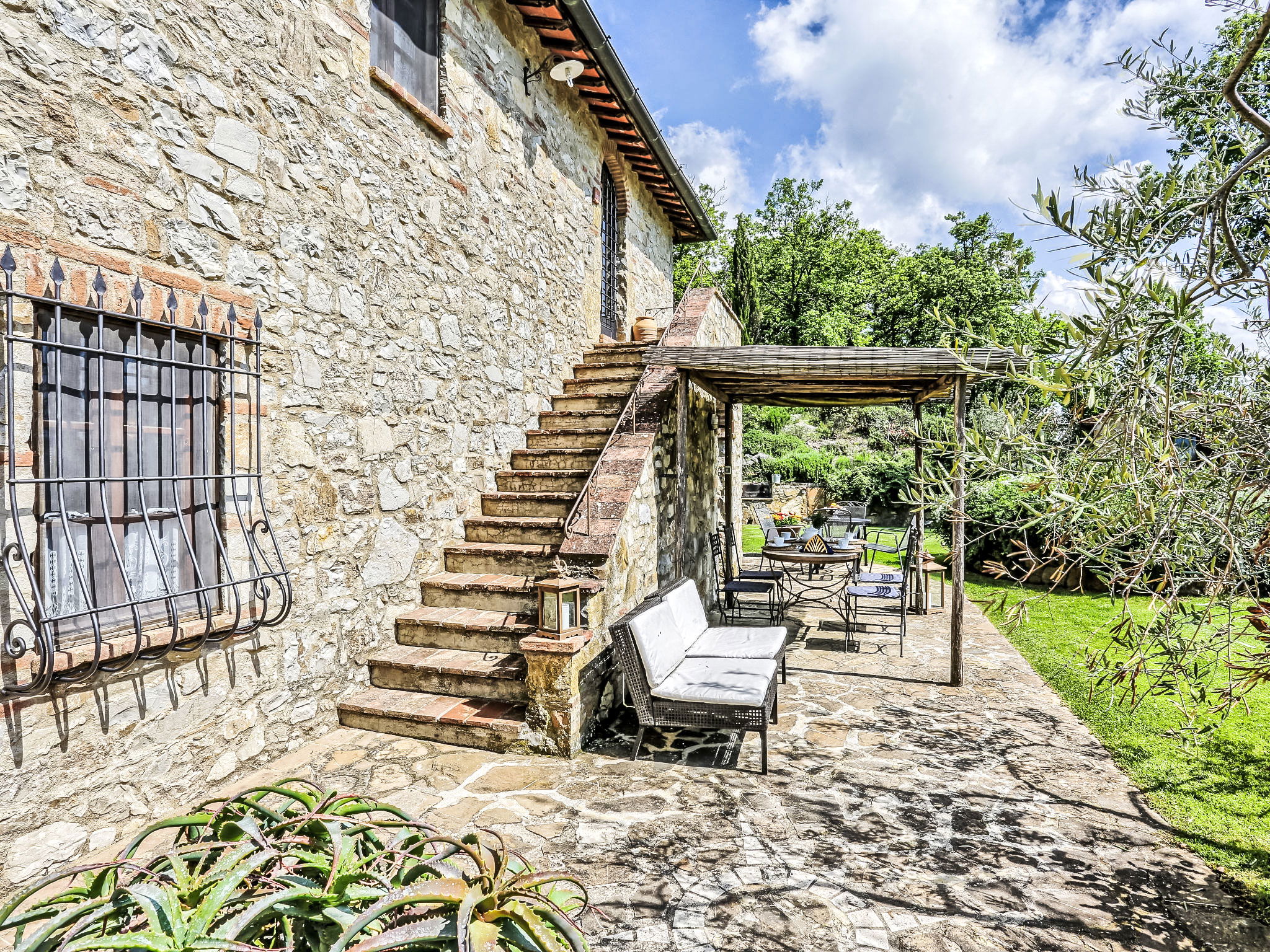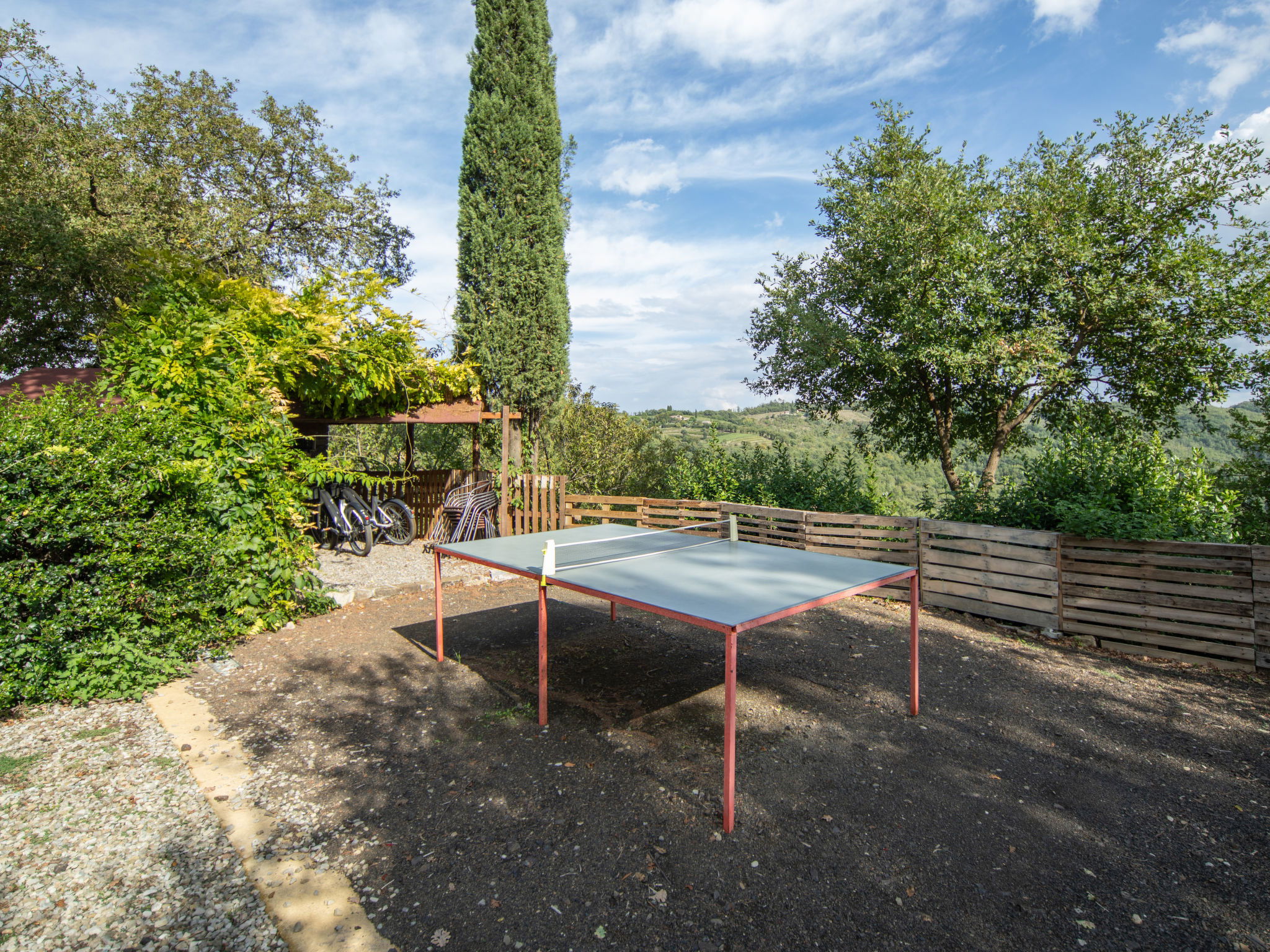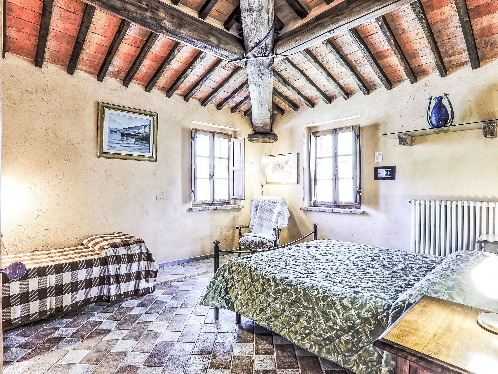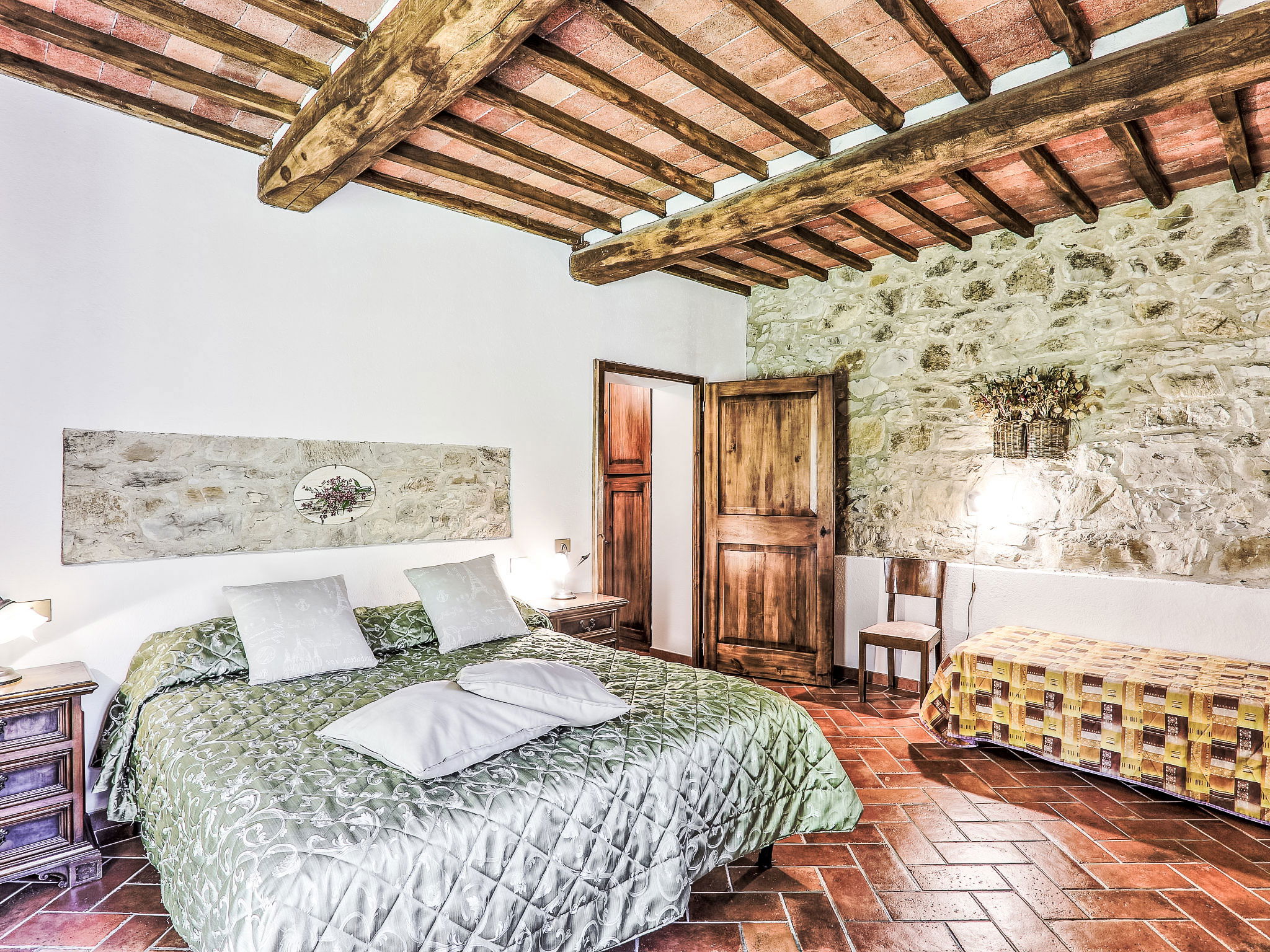 Casale il Poggino, located in a hilly position in the heart of the Chianti Classico, consists of two units, the farmhouse which is divided into three apartments (for 12 people) communicating with each other from the outside and the annex (for 04 people). Country house "Casale Il Poggino", 400 m a.s.l.. 2 houses in the residence. 5.8 km from the centre of Castellina in Chianti, 26 km from the centre of Siena, 42 km from the centre of Firenze, in a secluded, quiet, sunny position on top of a hill, in the countryside. Private: garden 1 ha (fenced), swimming pool fenced (12 x 6 m, depth 120 - 240 cm, seasonal availability: 01.Apr. - 31.Oct.). Outdoor shower, table tennis, pergola, garden furniture, barbecue. In the complex: fitness room, storage room for bicycles, heating to be paid on the spot, heating available only from 01.Nov. - 07.Apr., bicycle rental. Available: bicycles (4). Cook on request (extra). Motor access to the house (1.5 km via unmade road). Roofed, parking on the premises. Grocery 5.8 km, supermarket 5.8 km, restaurant 5.8 km, bus stop 3.5 km, thermal baths "Rapolano Terme" 50 km. Nearby attractions: San Donato in Poggio 16 km, Radda in Chianti 16 km, Monteriggioni 18 km, Gaiole in Chianti 19 km, Greve in Chianti 25 km, San Gimignano 47 km. Residence with electric gates. Video surveillance in the outdoor area.
