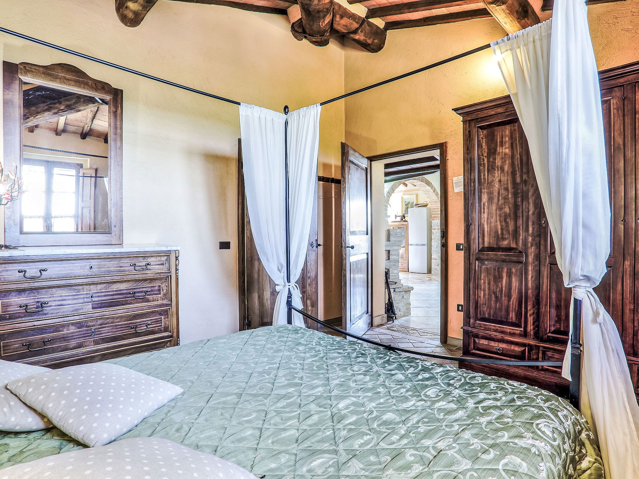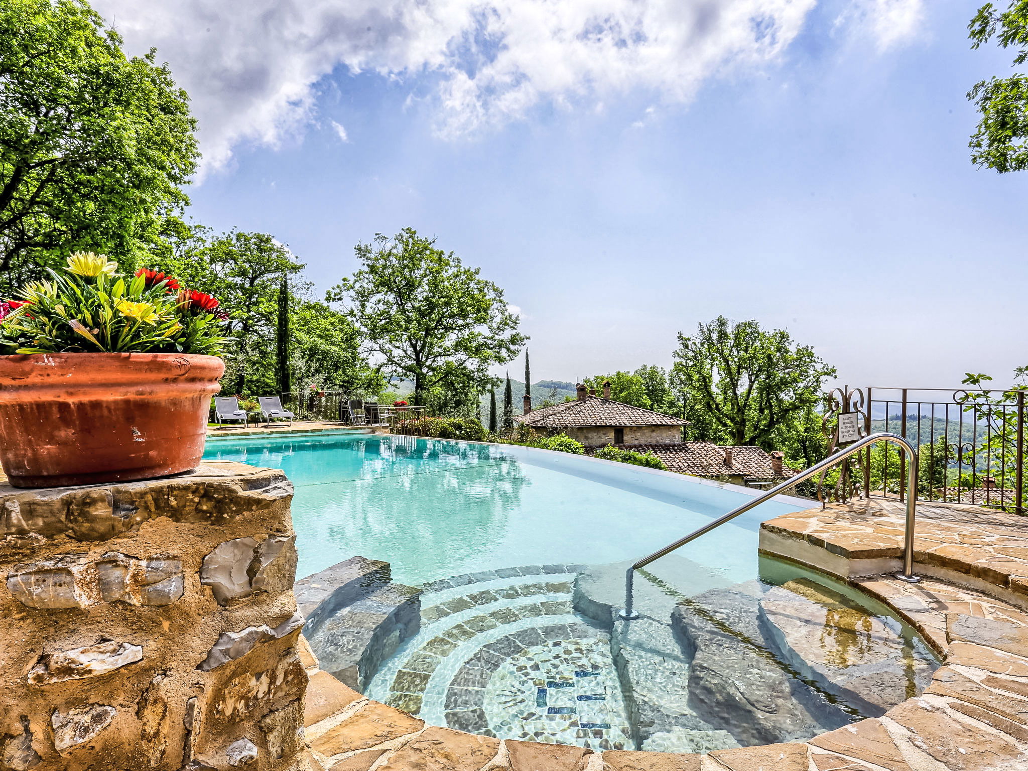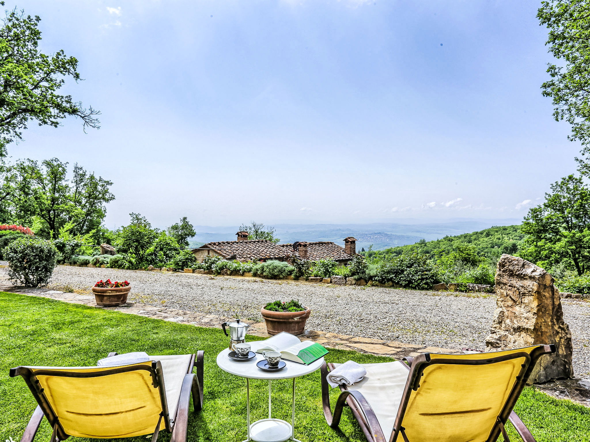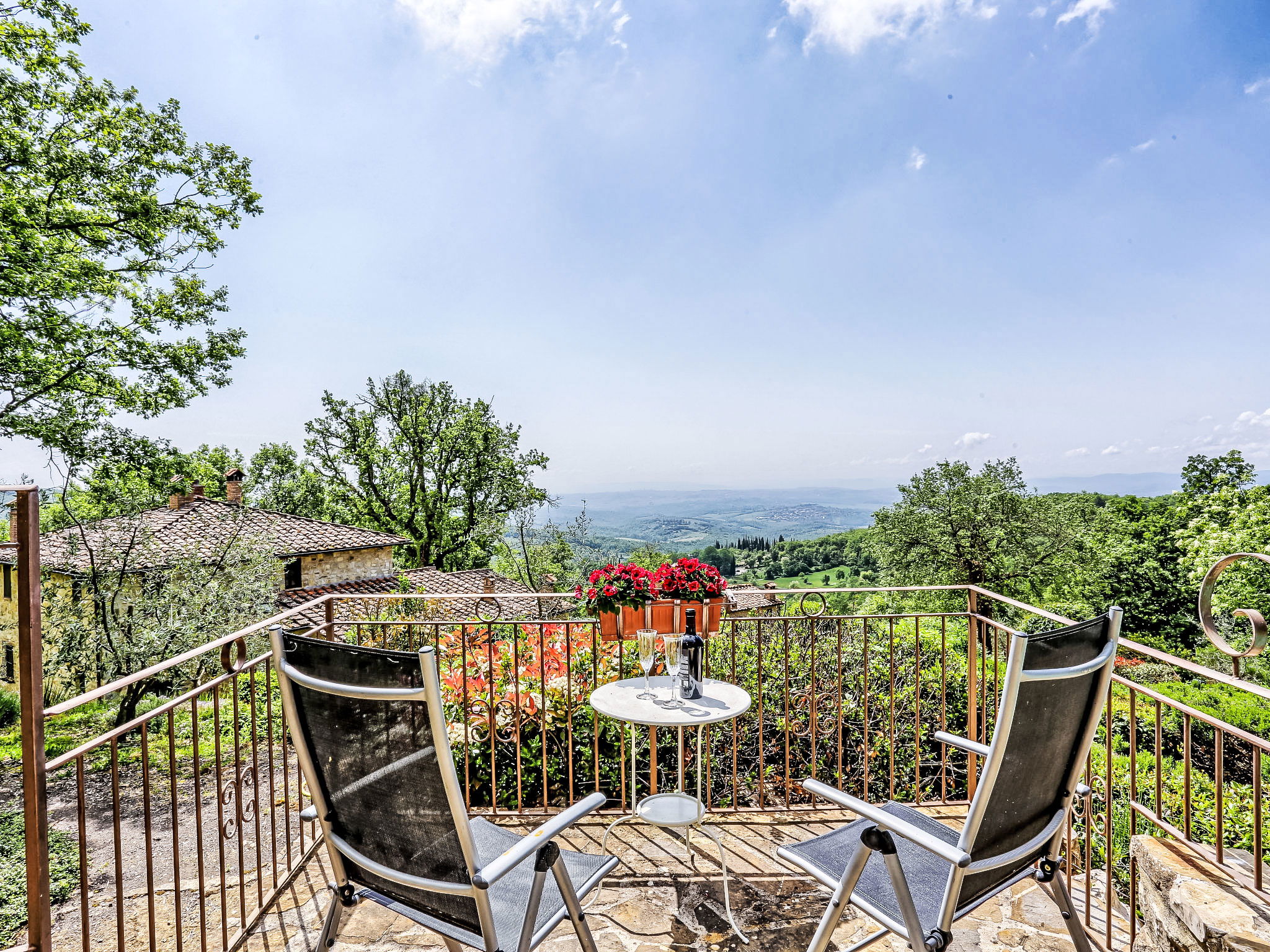 Casale il Poggino, located in a hilly position in the heart of the Chianti Classico, consists of two units, the farmhouse which is divided into three apartments (for 12 people) communicating with each other from the outside and the annex (for 04 people). Country house "Casale Il Poggino", 400 m a.s.l.. 2 houses in the residence. 5.8 km from the centre of Castellina in Chianti, 26 km from the centre of Siena, 42 km from the centre of Firenze, in a secluded, quiet, sunny position on top of a hill, in the countryside. Private: garden 1 ha (fenced), swimming pool fenced (12 x 6 m, depth 120 - 240 cm, seasonal availability: 01.Apr. - 31.Oct.). Outdoor shower, table tennis, pergola, garden furniture, barbecue. In the complex: fitness room, storage room for bicycles, heating to be paid on the spot, heating available only from 01.Nov. - 07.Apr., bicycle rental. Available: bicycles (4). Cook on request (extra). Motor access to the house (1.5 km via unmade road). Roofed, parking on the premises. Grocery 5.8 km, supermarket 5.8 km, restaurant 5.8 km, bus stop 3.5 km, thermal baths "Rapolano Terme" 50 km. Nearby attractions: San Donato in Poggio 16 km, Radda in Chianti 16 km, Monteriggioni 18 km, Gaiole in Chianti 19 km, Greve in Chianti 25 km, San Gimignano 47 km. Residence with electric gates. Video surveillance in the outdoor area.